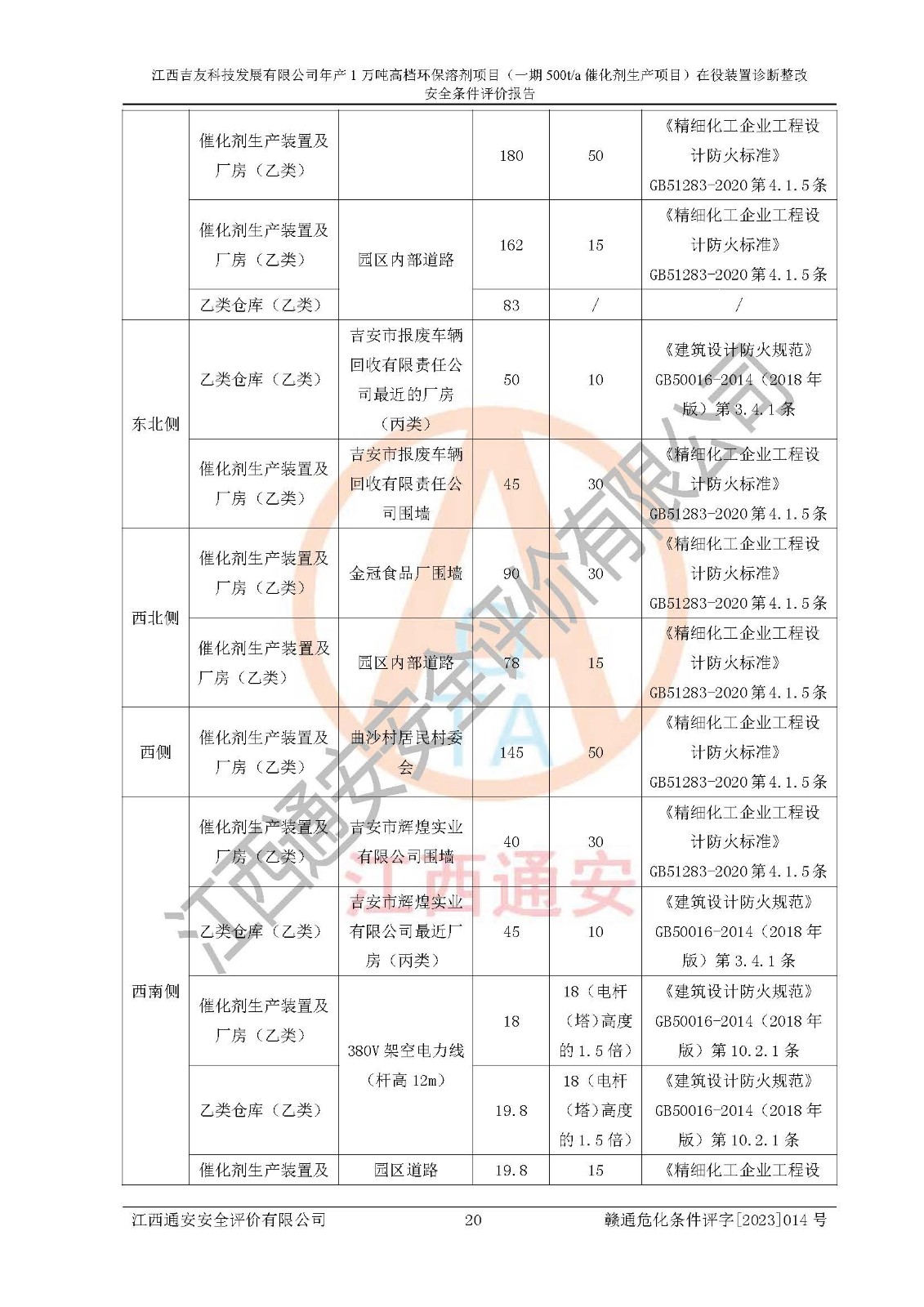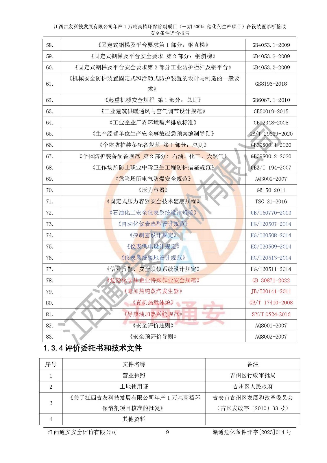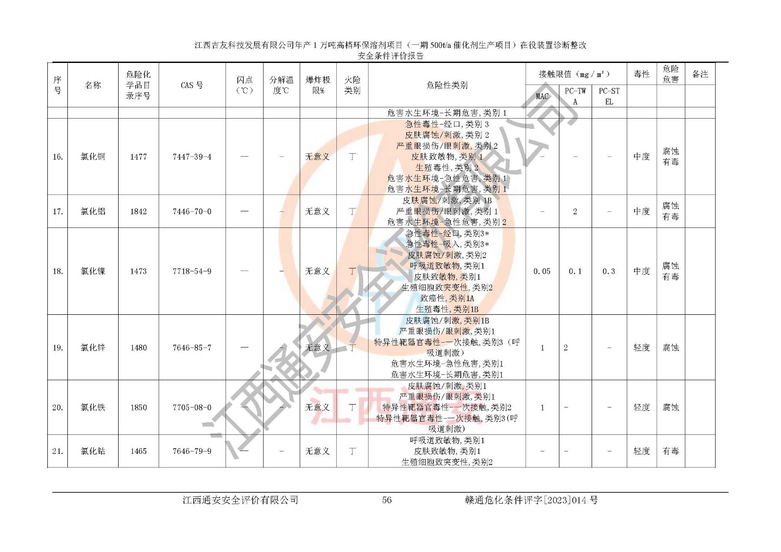 评价报告名称 | 江西吉友科技发展有限公司年产1万吨高档**溶剂项目(一期500t/a催化剂生产项目)在役装置诊断整改安全条件评价报告 | |||