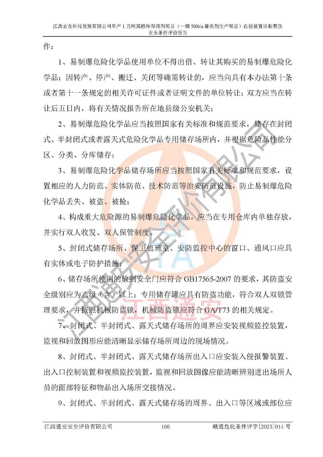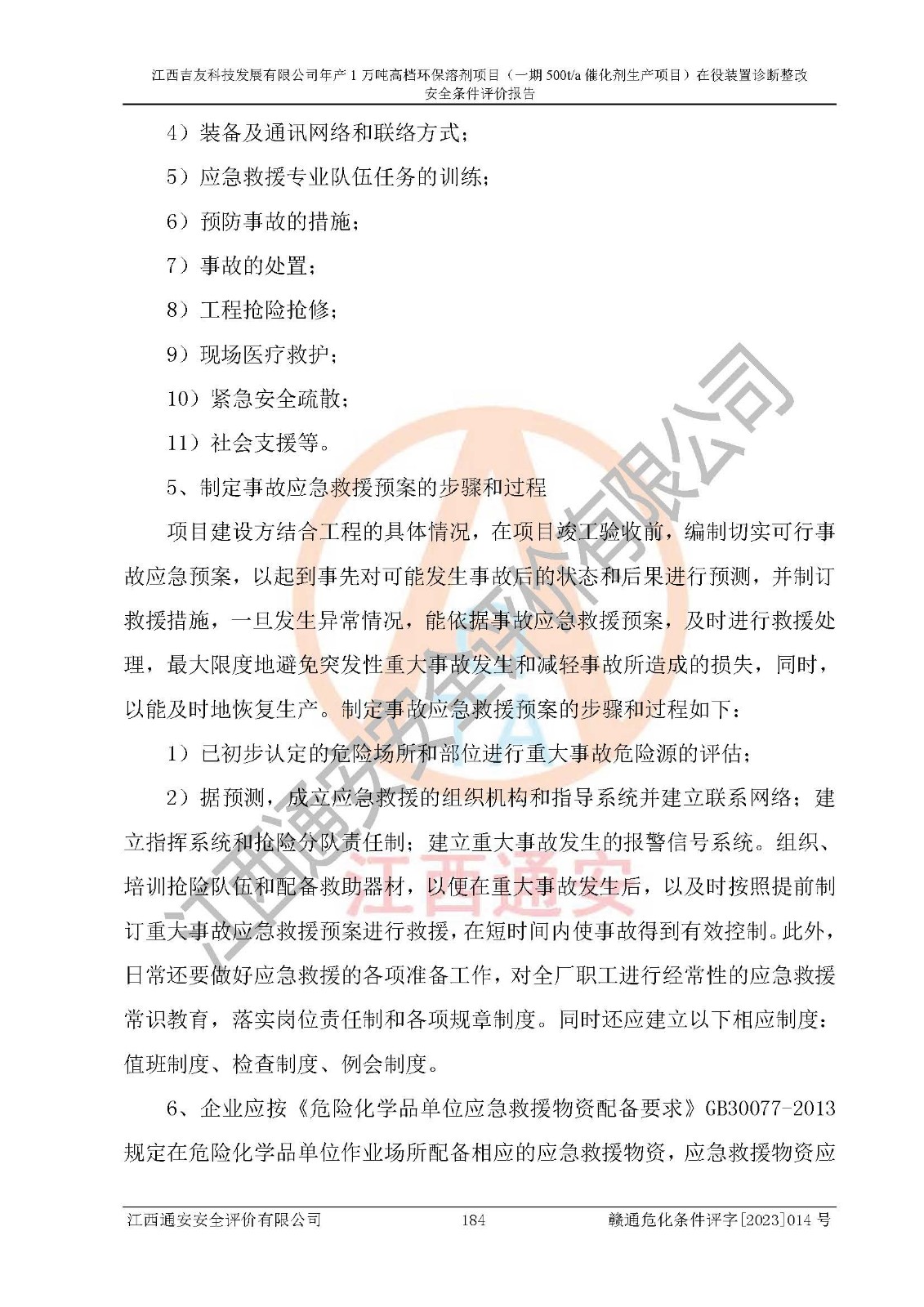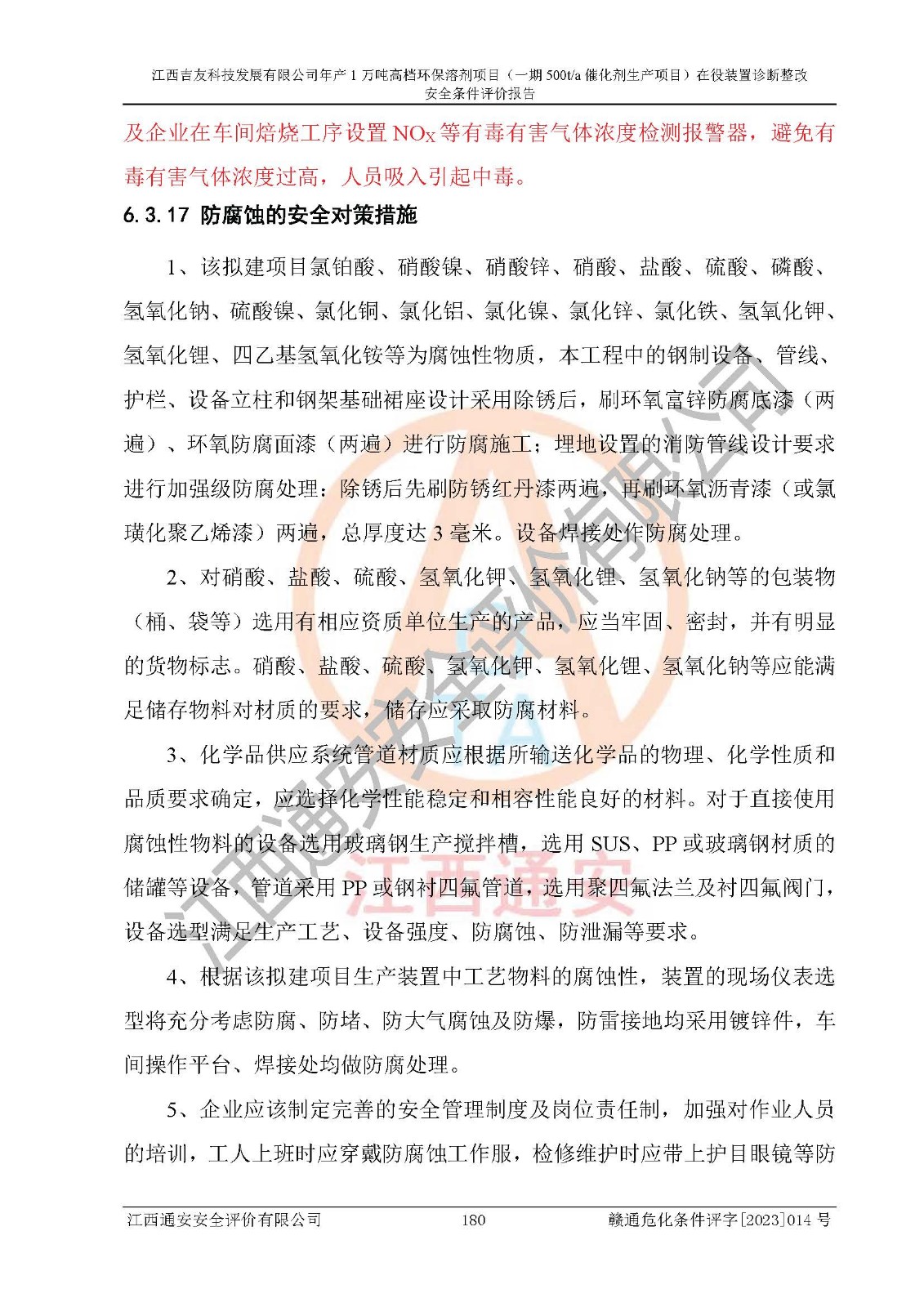 评价报告名称 | 江西吉友科技发展有限公司年产1万吨高档**溶剂项目(一期500t/a催化剂生产项目)在役装置诊断整改安全条件评价报告 | |||