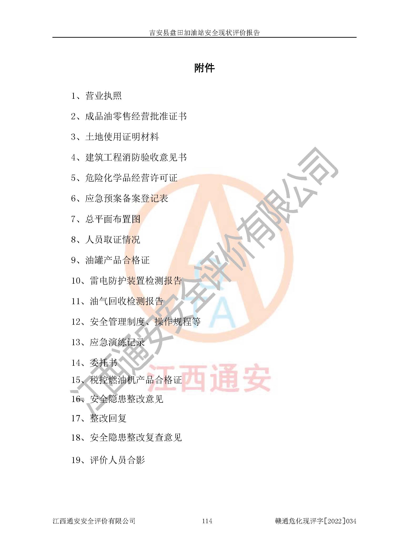 评价报告名称 | 吉安县盘田加油站安全现状评价报告 | |||