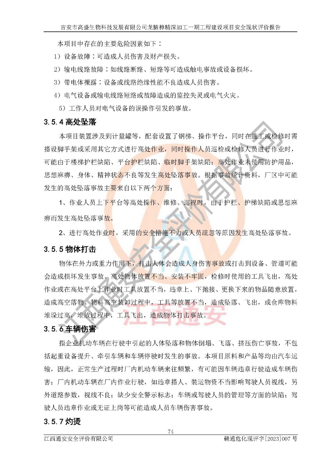 评价报告名称 | 吉安市高盛生物科技发展有限公司龙脑樟精深加工一期工程建设项目安全现状评价报告 | ||||