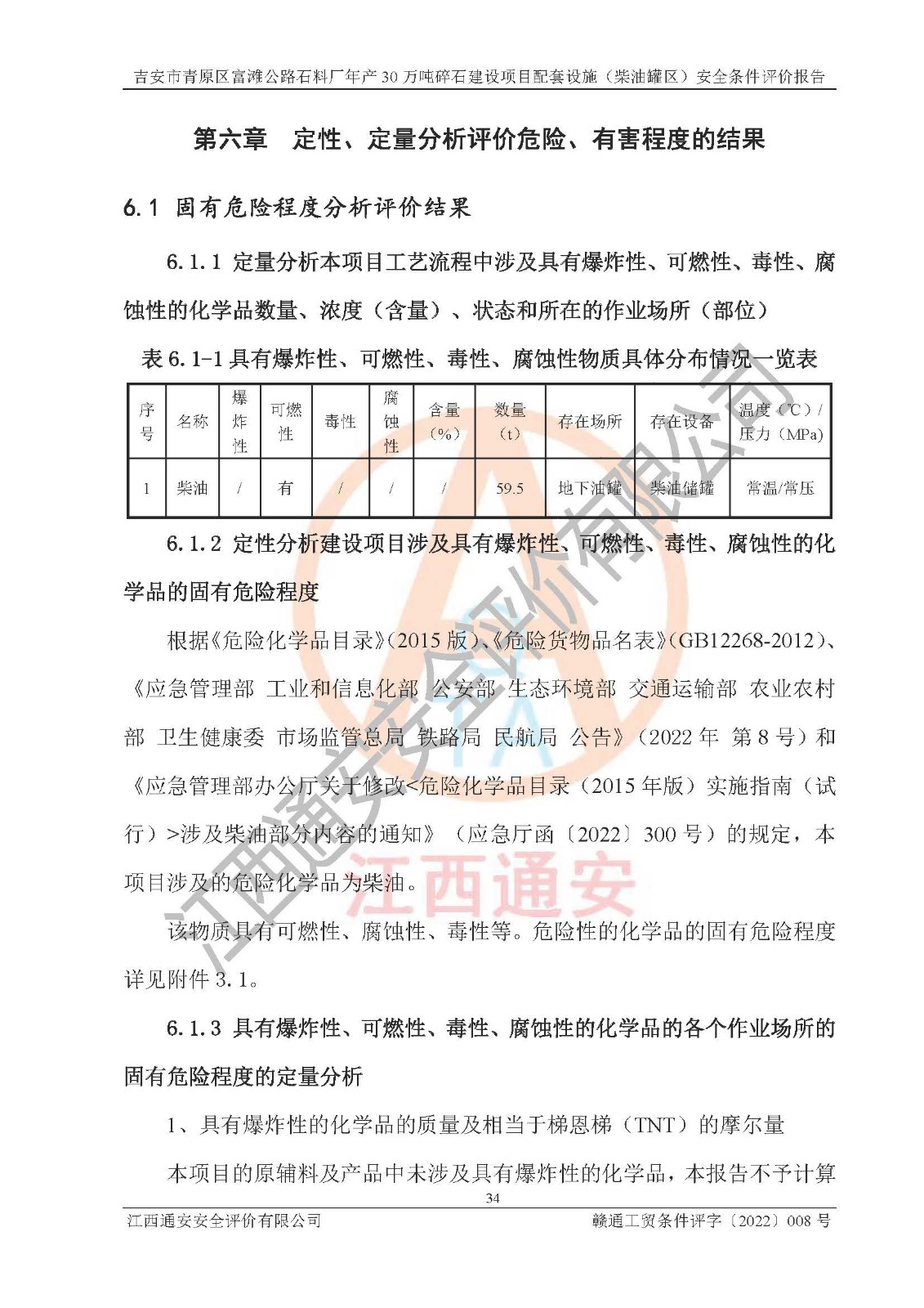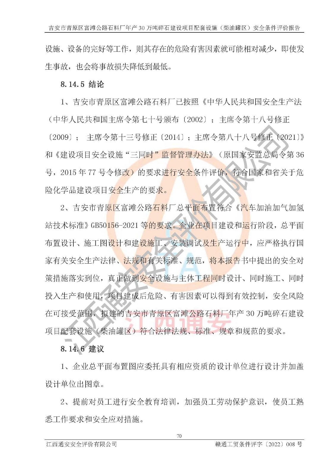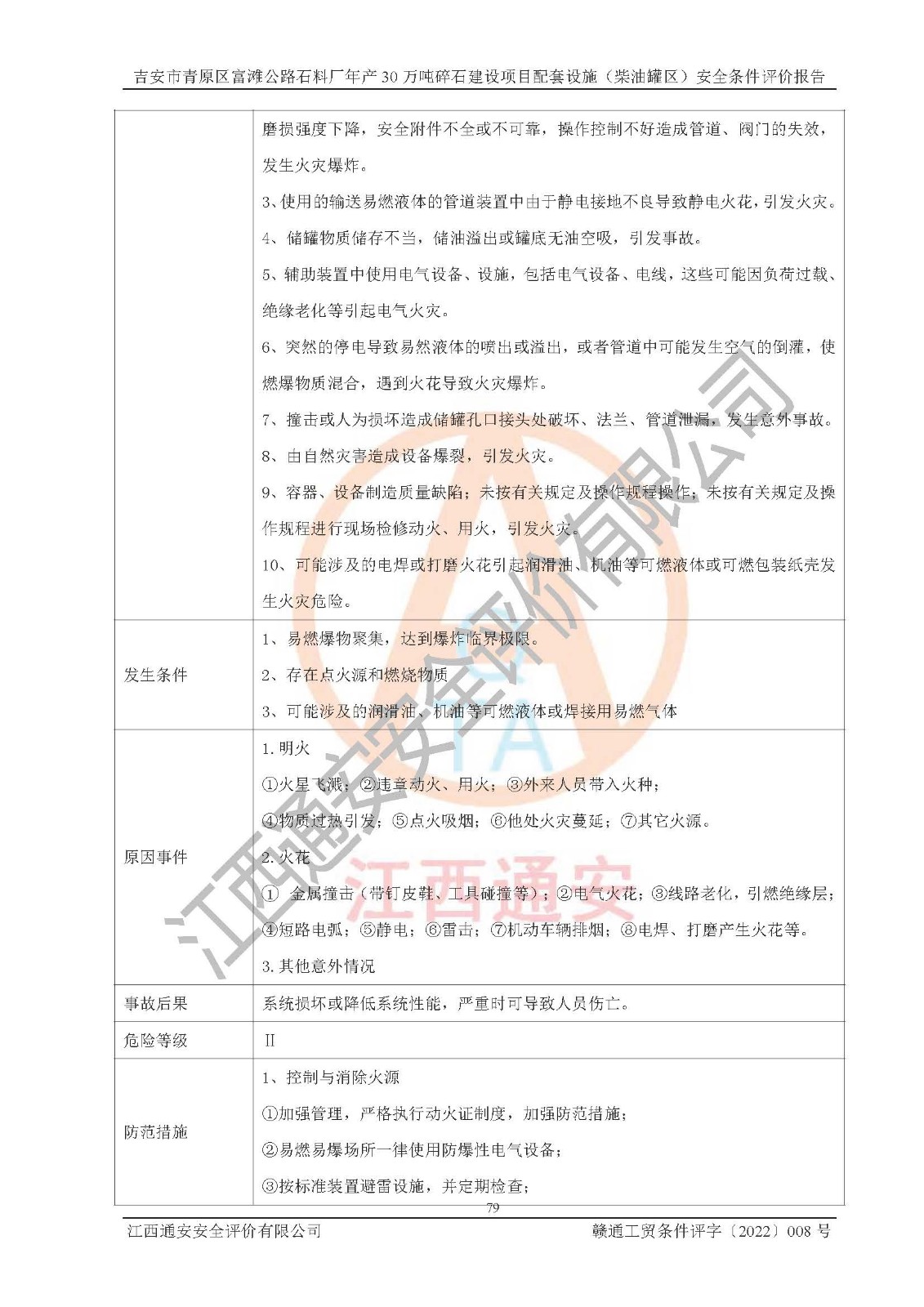 评价报告名称 | 吉安市青原区富滩公路石料厂年产30万吨碎石建设项目配套设施(柴油罐区)安全条件评价报告 | |||