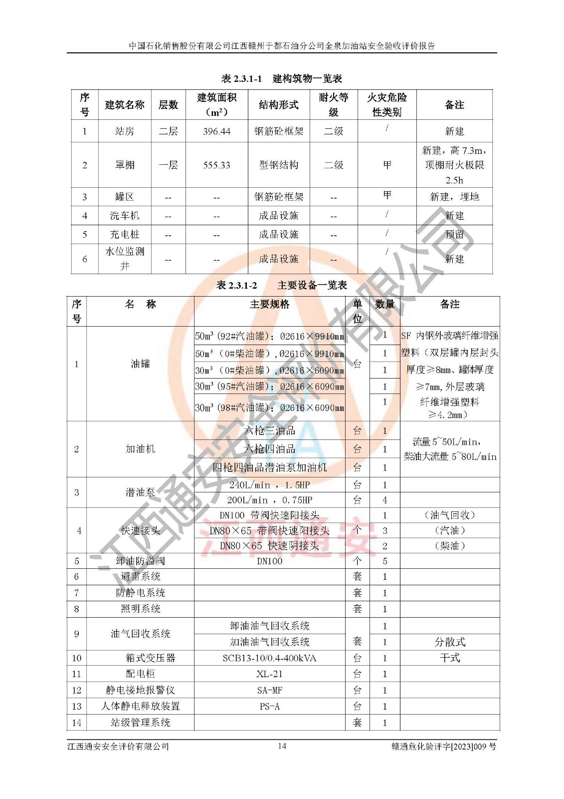 项目名称 | 中国石化销售股份有限公司江西赣州于都石油分公司金泉加油站迁建项目的安全验收评价报告 | ||||
