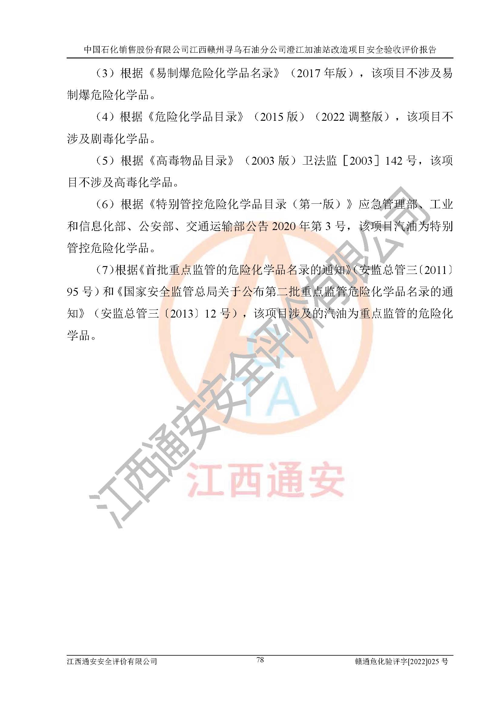 项目名称 | 中国石化销售股份有限公司江西赣州寻乌石油分公司澄江加油站改造项目安全验收评价报告 | ||||