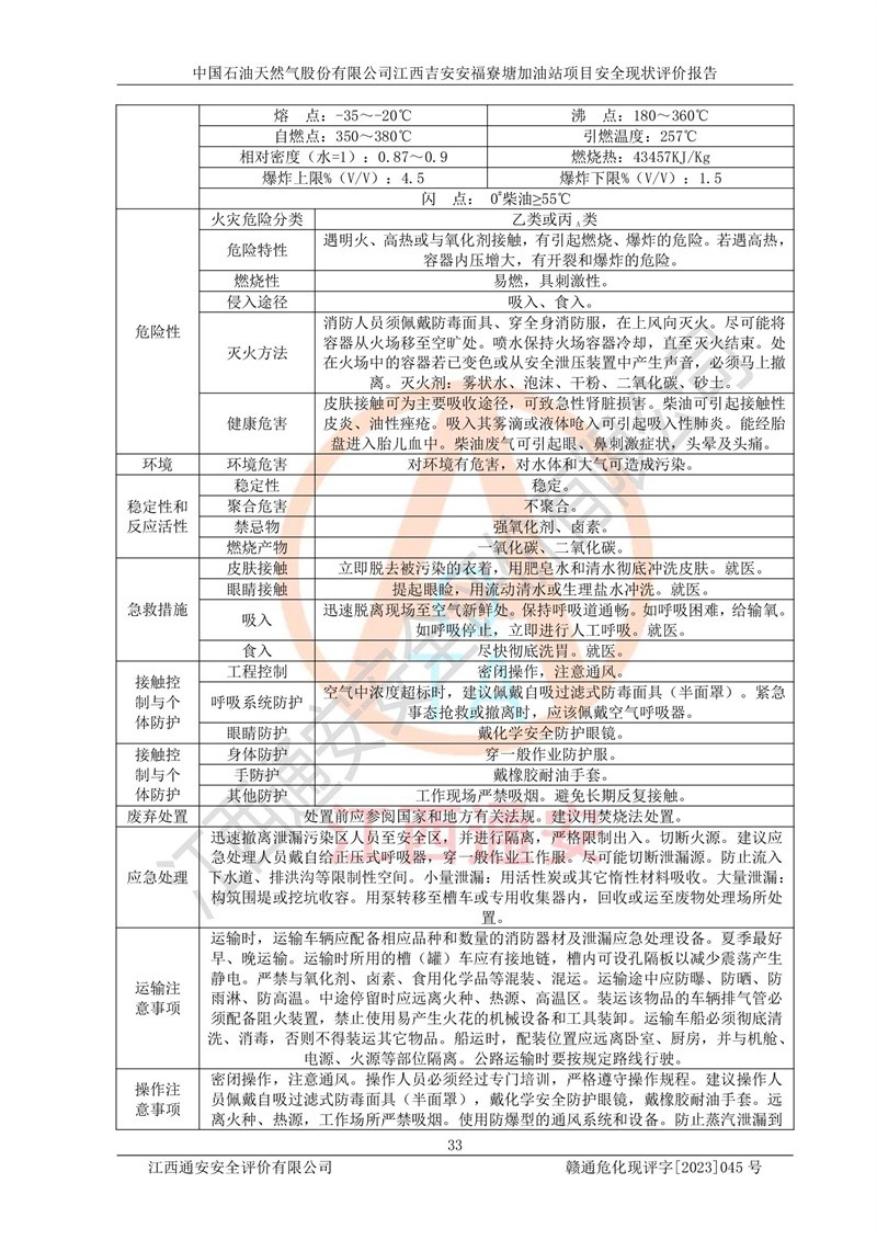 中国石油天然气股份有限公司江西吉安安福寮塘加油站是一家从事成品油批发、成品油零售经营的企业。该加油站成立于2011年5月4日,并获得安福县市场监督管理局颁发的营业执照,营业执照统一社会信用代码为:91360829573618262D,加油站类型为股份有限公司分公司(上市,国有控股),负责人为鄢**,经营范围:许可项目:成品油批发,成品油零售,住宿服务,餐饮服务,食品销售,烟草制品零售,***零售,农药零售,药品零售(依法须经批准的项目,经相关部门批准后在许可**期内方可开展经营活动,具体经营项目和许可期限以相关部门批准文件或许可证件为准)一般项目:润滑油销售,日用陶瓷制品销售,汽车销售,新能源汽车整车销售,新能源汽车换电设施销售,新能源汽车电附件销售,互联网销售(除销售需要许可的商品),汽车装饰用品销售,日用品销售单用途商业预付卡代理销售,日用化学产品销售,劳动保护用品销售,家用电器销售,塑料制品销售,婴幼儿配方乳粉及其他婴幼儿配方食品销售,食品用洗涤剂销售,饲料添加剂销售,肥料销售,洗车服务,农副产品销售,五金产品零售,办公用品销售,第二类医疗器械销售,充电桩销售农作物种子经营(**不再分装的包装种子),广告设计代理,电子过磅服务,化妆品零售,畜牧渔业饲料销售消毒剂销售 (不含危险化学品),汽车零配件零售,电车销售,机动车修理和维护,家具销售,日用百货销售,集中式**充电站,针纺织品销售,住房租赁 (除依法须经批/准的项目处,凭营业执照依法自主开展经营活动)。经营场所:江西省吉安市安福县寮塘乡龙佳村。 中国石油天然气股份有限公司江西吉安安福寮塘加油站占地面积1200㎡,加油站中设有0#柴油双枪加油机2台,92#汽油、95#汽油四枪加油机2台;该站设有4个30m³SF双层埋地卧式储罐,其中有2个30m³SF双层埋地卧式0#柴油罐、1个92#30m³SF双层埋地卧式汽油罐,1个95#30m³SF双层埋地卧式汽油罐,油品折算总容量为90m³(柴油罐容积折半计入油罐总容积),属三级加油站,汽油卸油、加油设置了油气回收系统。 中国石油天然气股份有限公司江西吉安安福寮塘加油站于2020年11月04日经安福县应急管理局核准,换发了新的《危险化学品经营许可证》,证书编号:赣安安经(甲)[2014]000007,许可经营范围:成品油。**期2020年11月04日至2023年11月03日。 中国石油天然气股份有限公司江西吉安安福寮塘加油站2023年05月11日经吉安市商务局核准,换取了新的《成品油零售经营批准证书》,证书编号:油零售证书第吉0256号,批准从事成品油(汽油、柴油)零售业务。证书**期至2023年5月11日至2028年05月10日。 |