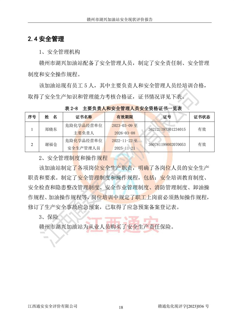 评价结论 | 赣州市湖兴加油站安全现状符合危险化学品经营安全条件。 | |||