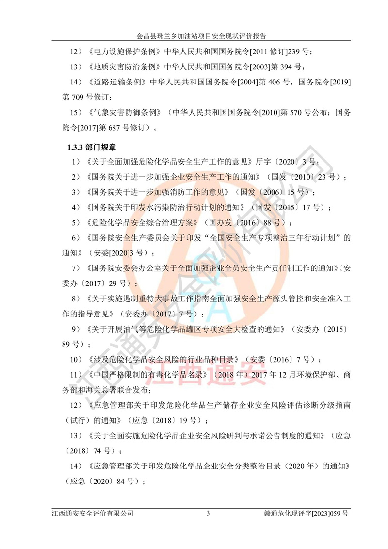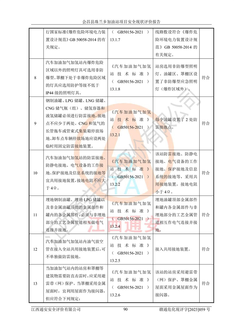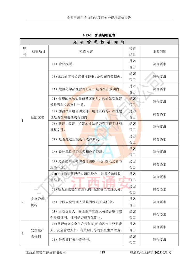 项目名称 | 会昌县珠兰乡加油站安全现状评价报告 | ||||