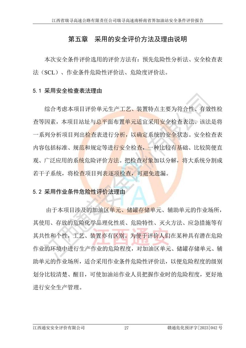 评价报告名称 | 江西省瑞寻高速公路有限责任公司 瑞寻高速南桥南省界加油站安全条件评价报告 | |||