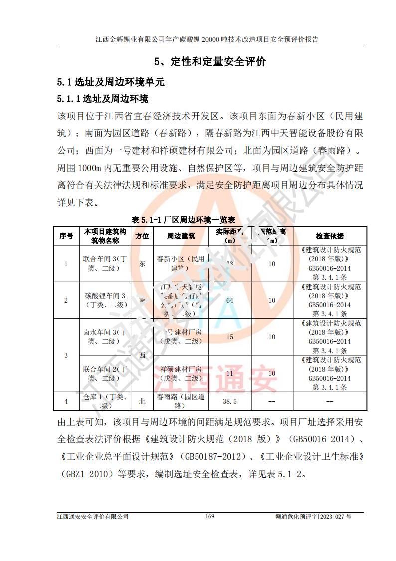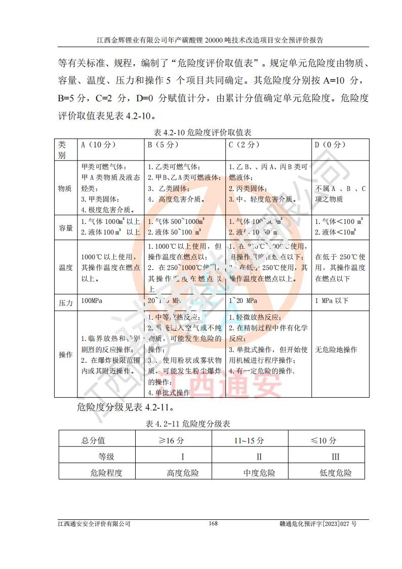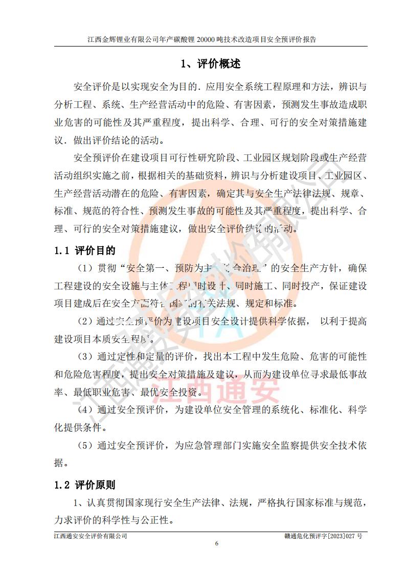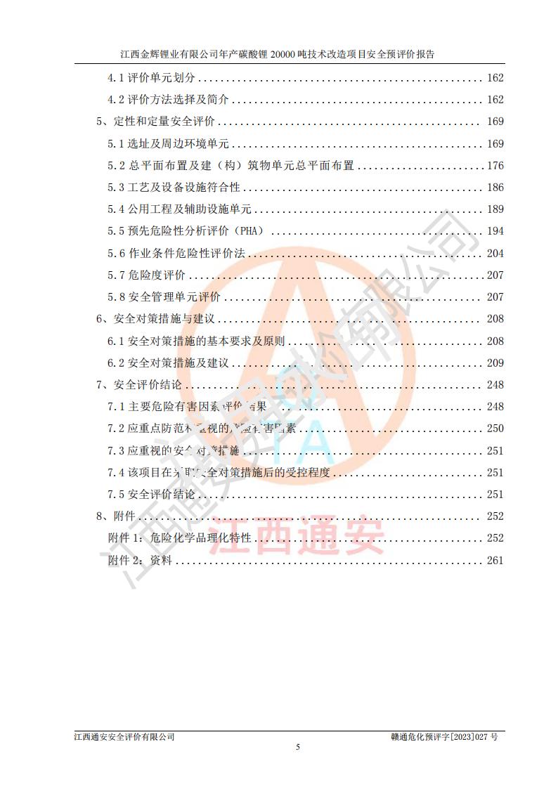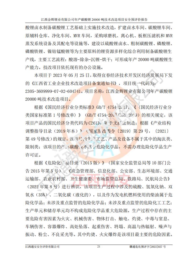 项目名称 | 江西金辉锂业有限公司年产碳酸锂20000吨技术改造项目安全预评价报告 | ||||