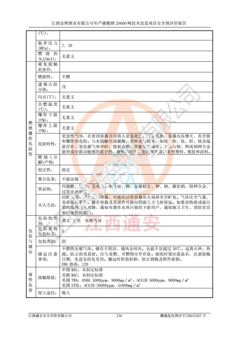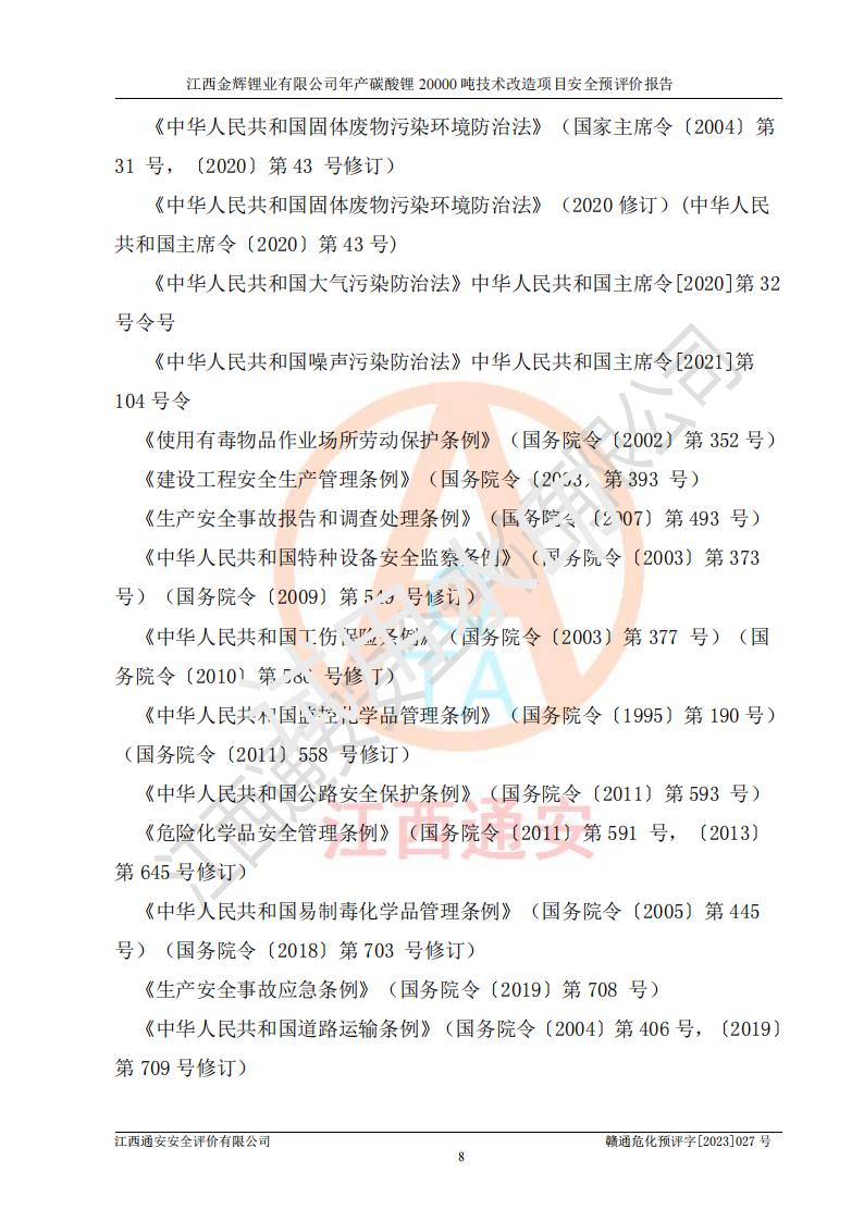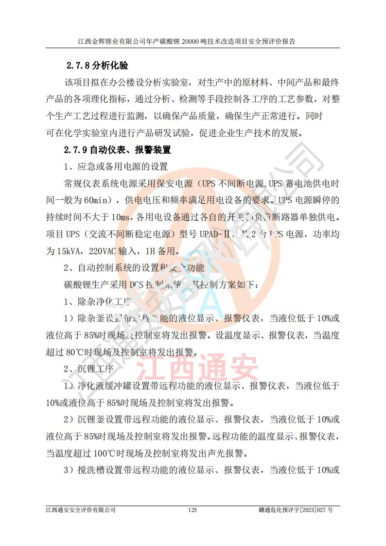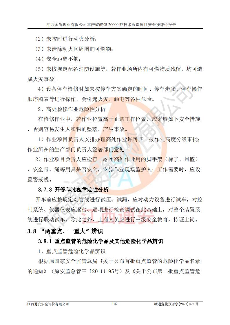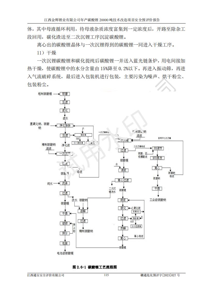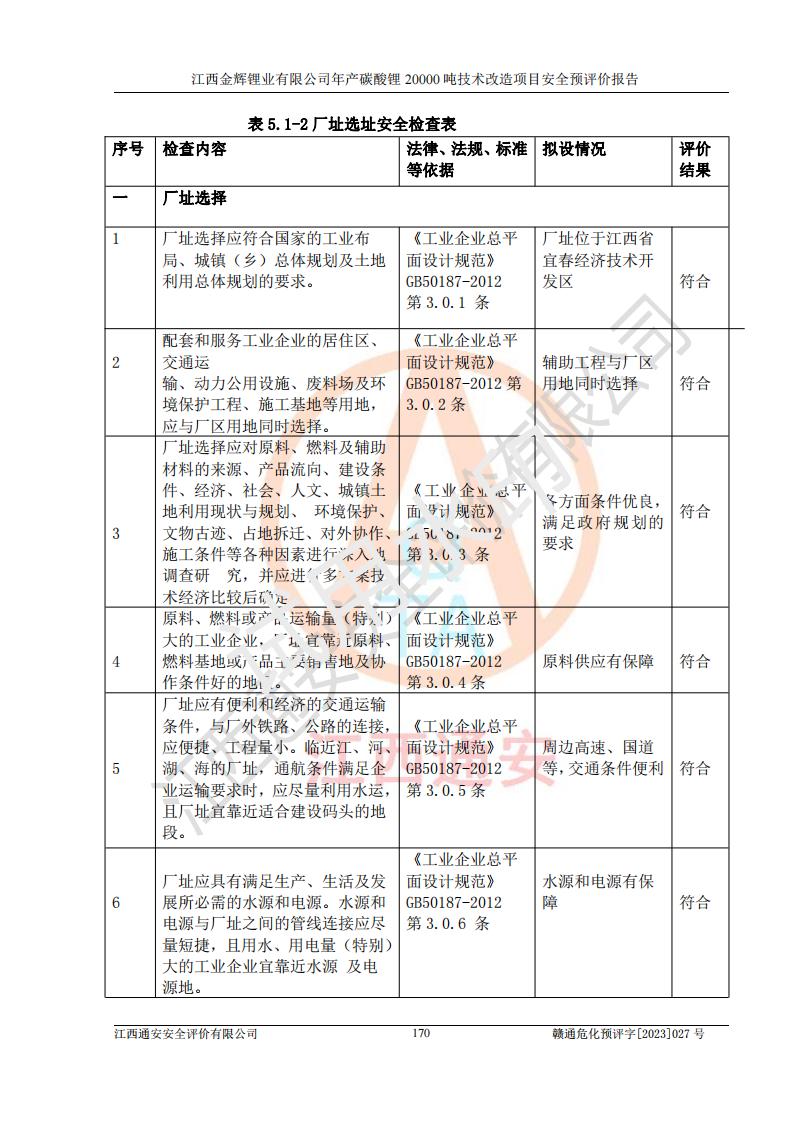 项目名称 | 江西金辉锂业有限公司年产碳酸锂20000吨技术改造项目安全预评价报告 | ||||