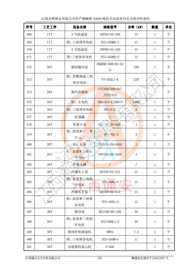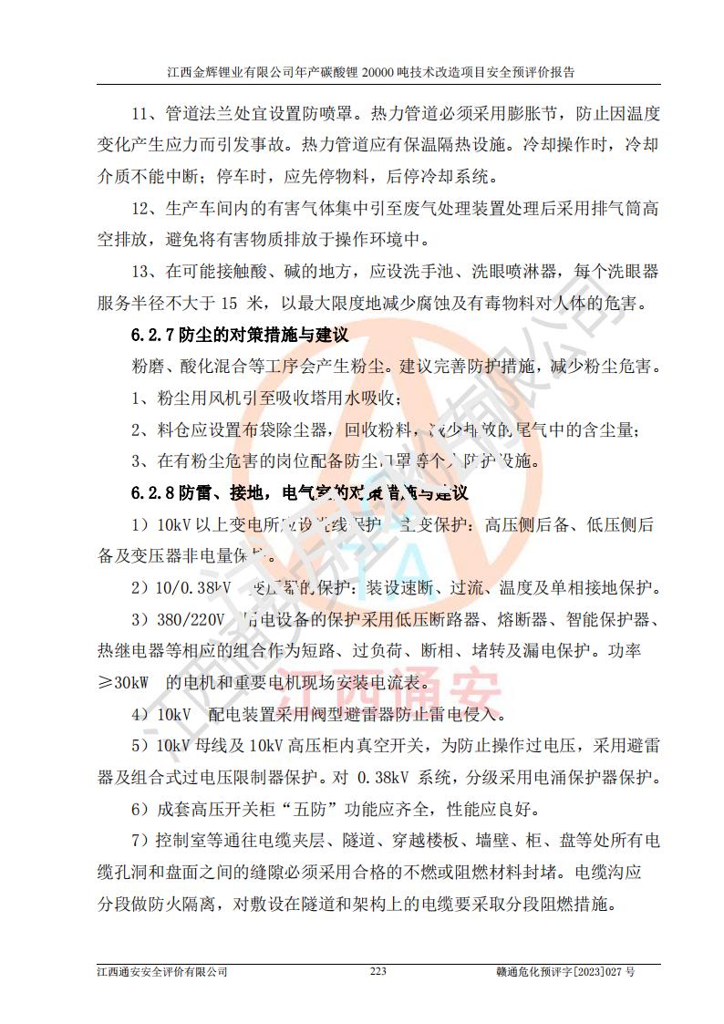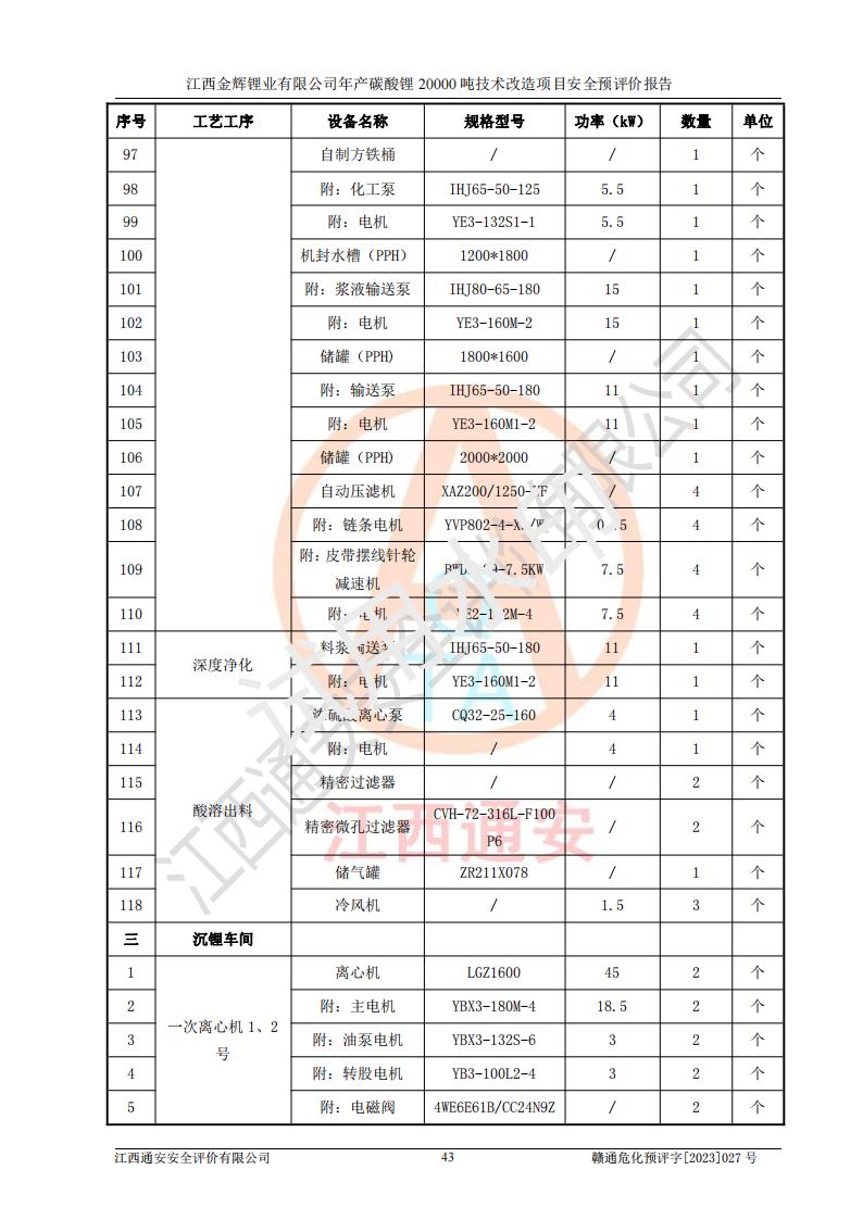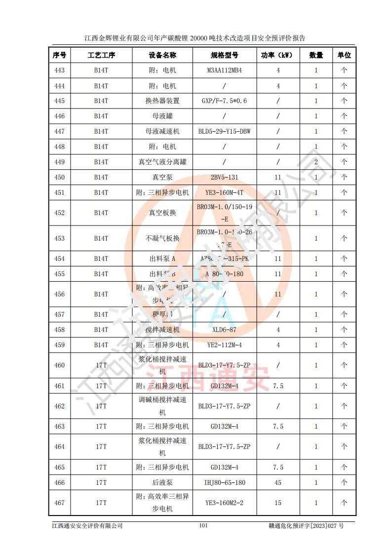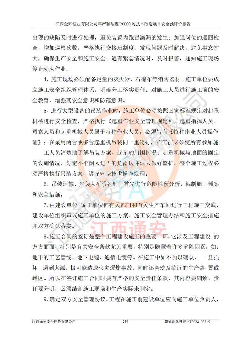 项目名称 | 江西金辉锂业有限公司年产碳酸锂20000吨技术改造项目安全预评价报告 | ||||
