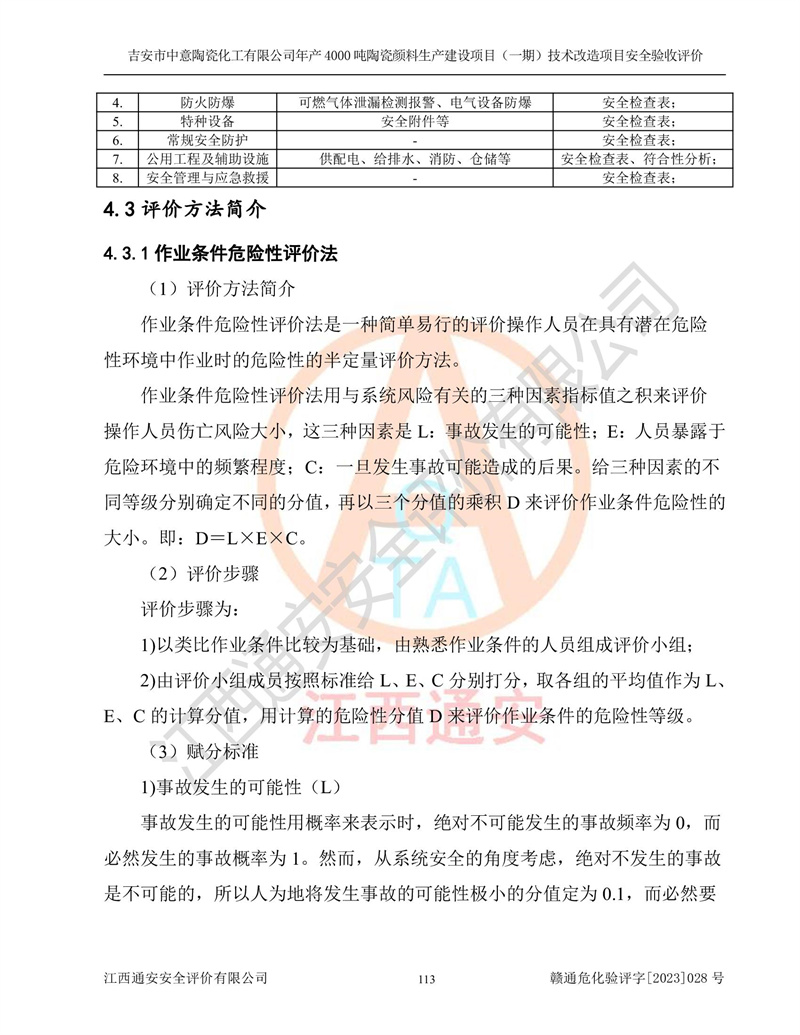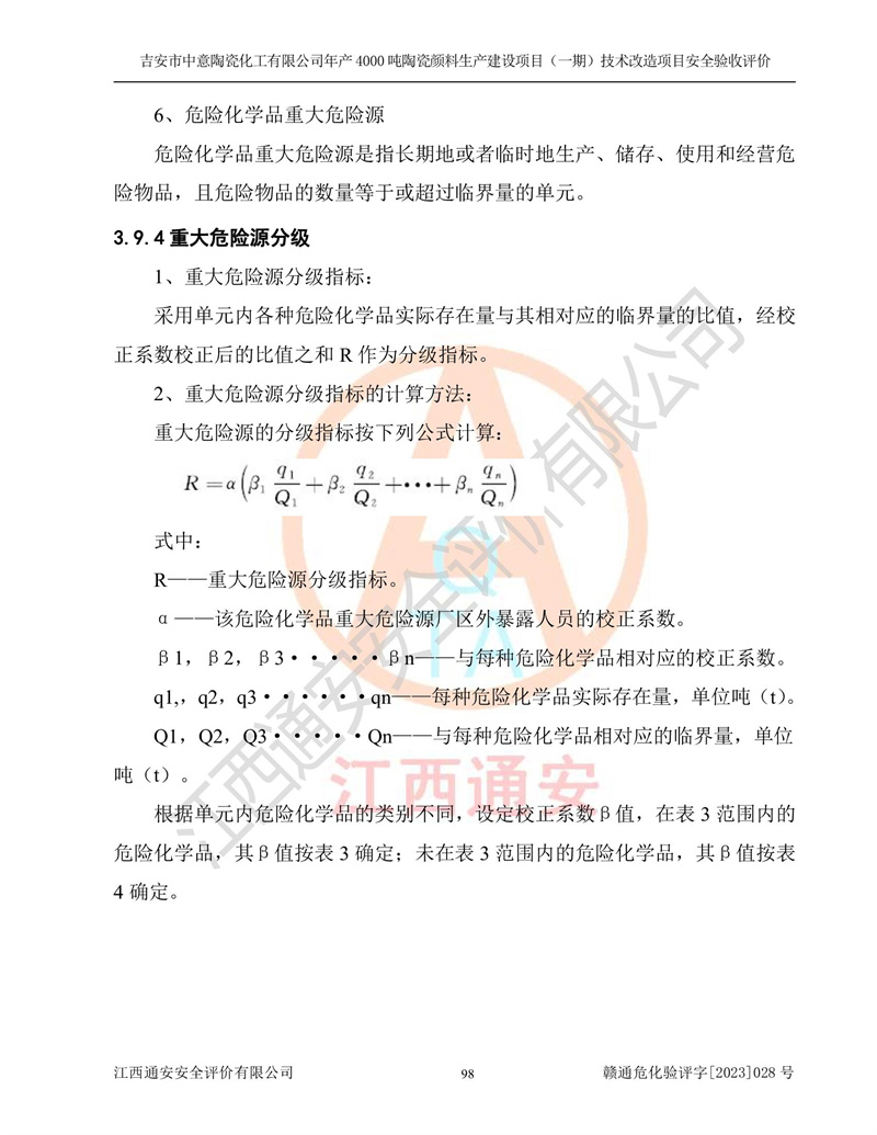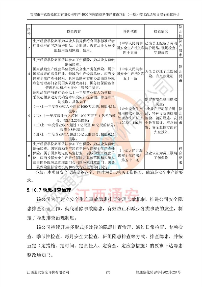 评价报告名称 | 吉安市中意陶瓷化工有限公司安全验收评价报告 | |||