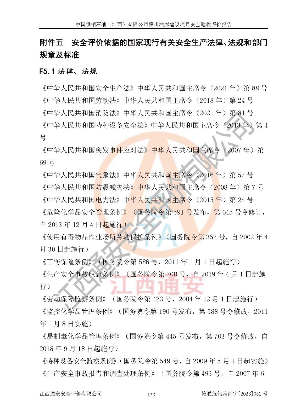 评价结论 | 中国供销石油(江西)有限公司赣州油库建设项目现场情况与设计图纸一致,DCS系统设计符合要求、运行正常,安全设施及安全管理符合**及有关部门关于安全生产法律、法规、标准的要求,该项目试生产以来,工艺设备运行正常,安全设施和采取的安全技术措施符合设计要求并达到预期结果,可以满足建设项目安全生产的要求,安全生产管理**,具备了安全设施竣工验收条件。 | ||||||