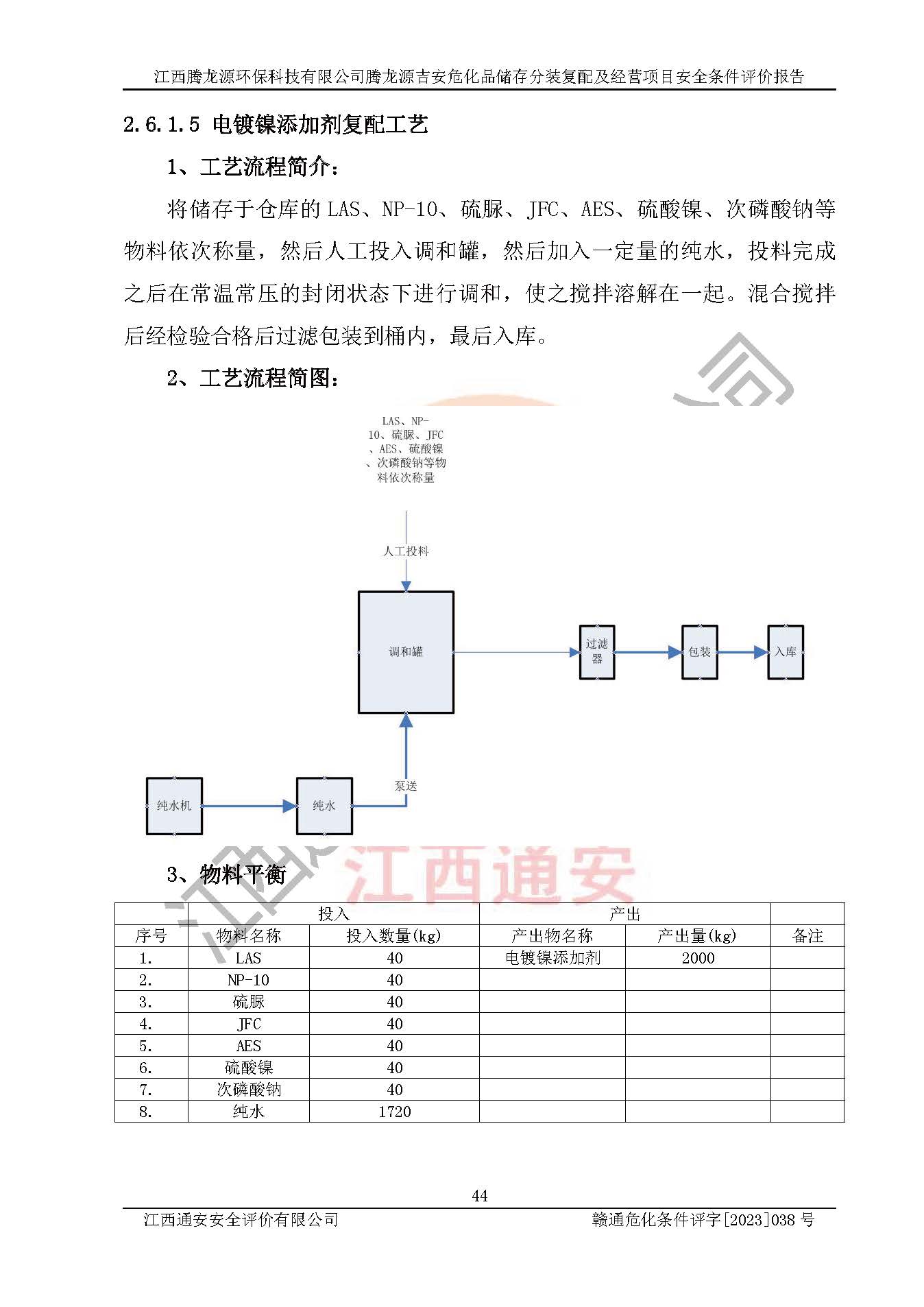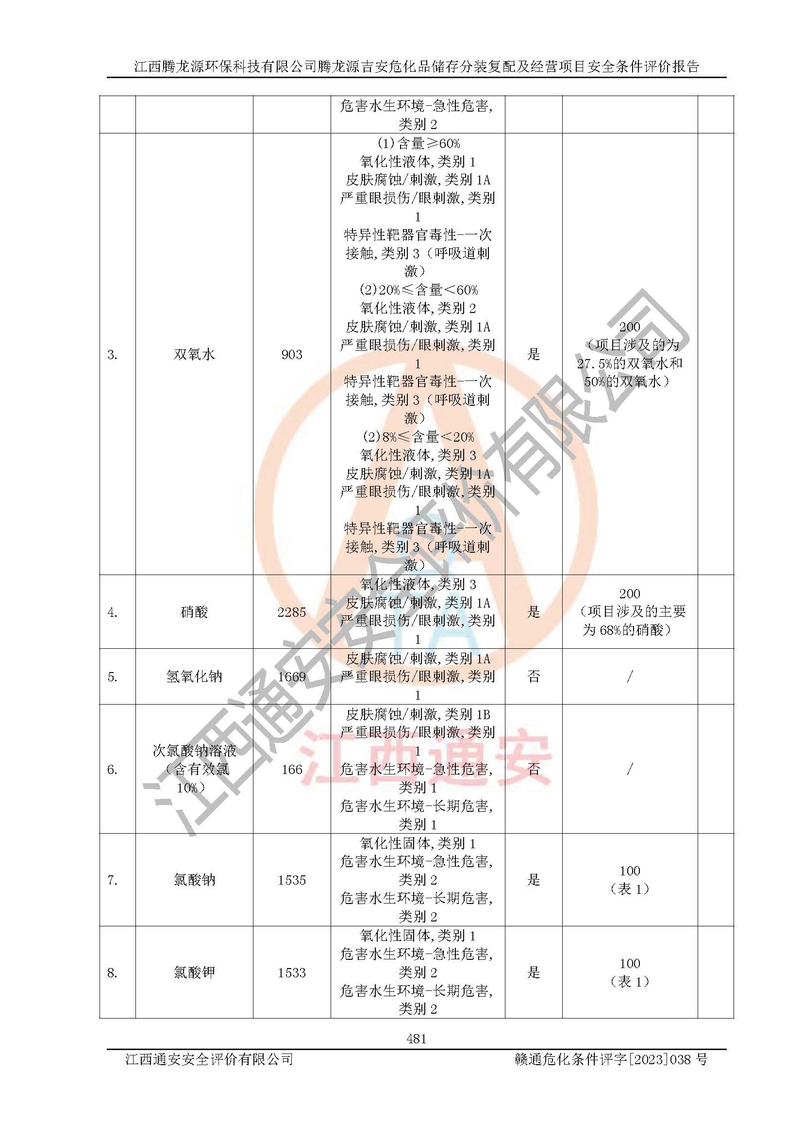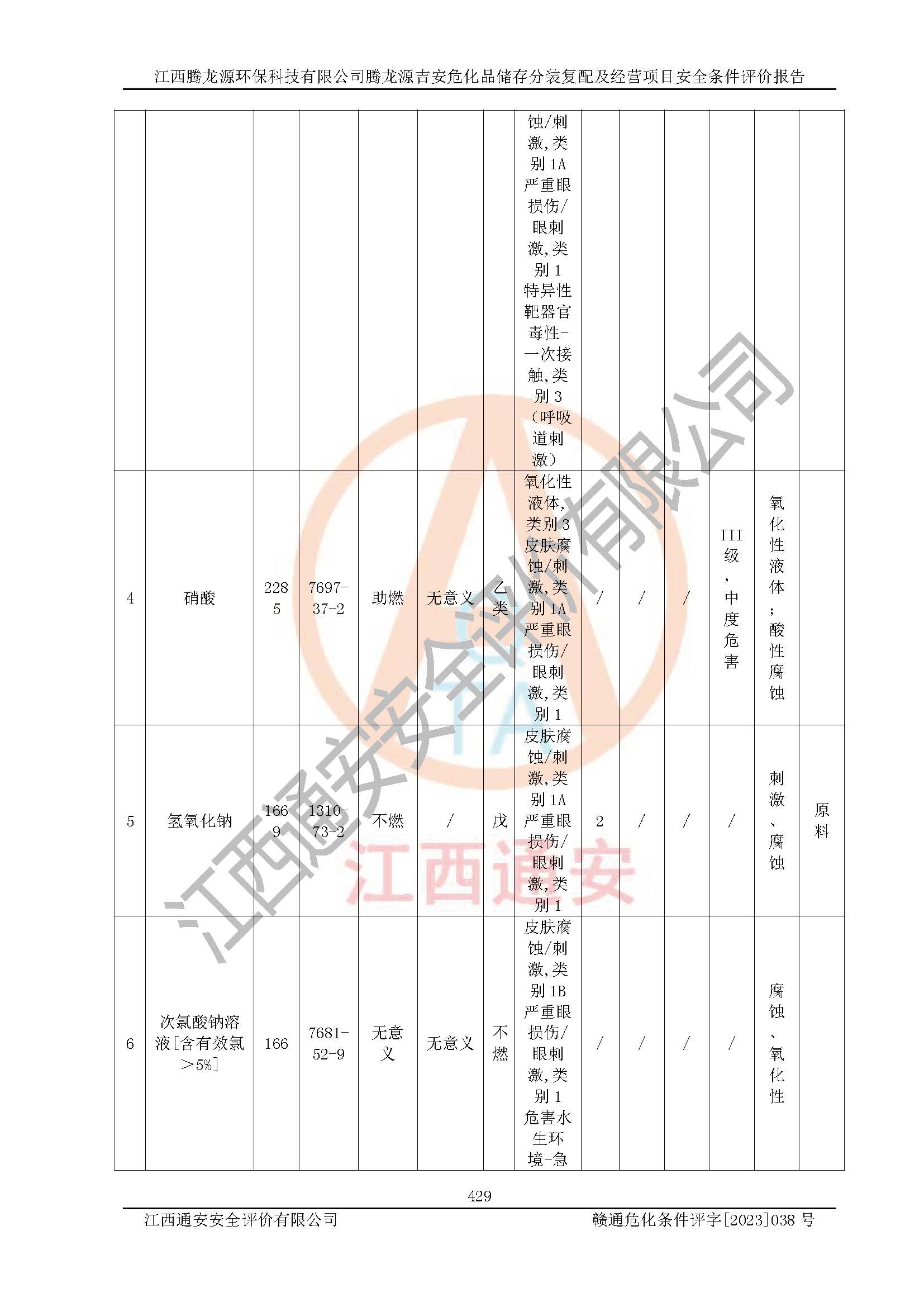 项目简介 | 江西腾龙源**科技有限公司成立于2022年6月20日,并取得吉水县市场监督管理局颁发的《营业执照》,营业执照统一社会信用代码:91360822MABQK5GB5P。公司注册住所:江西省吉安市吉水县城西工业园区二期金龙路。法定**人:吴诗明。注册资本壹仟万元整。企业性质为有限责任公司(自然人投资或控股)。营业执照许可经营范围:一般项目:化工产品销售(不含许可类化工产品)(除许可业务外,可自主依法经营法律法规非禁止或限制的项目)。 江西腾龙源**科技有限公司2023年2月24日取得吉水县发展和改革委员会颁发的《江西省企业投资项目备案通知书》,备案项目名称为:腾龙源吉安危化品储存分装复配及经营项目。项目统一代码为:2302-360822-04-01-318980。项目总投资20000万元,项目总占地面积31.34亩。 根据《危险化学品目录(2015版)》(**安监总局等十部门公告[2015]第5号)及应急管理部、工业和信息化部、公安部、生态环境部、交通运输部、农业农村部、卫生健康委、市场监管总局、铁路局、民航局决定调整《危险化学品目录(2015版)》(应急管理部、工业和信息化部、公安部、生态环境部、交通运输部、农业农村部、卫生健康委、市场监管总局、铁路局、民航局公告2022年第8号)等文件对该项目生产过程中所涉及的化学品进行辨识:项目涉及的硫酸、盐酸、双氧水、硝酸、氢氧化钠(固体和溶液)、次氯酸钠溶液、氯酸钠、氯酸钾、铬酸酐、高锰酸钠、高锰酸钾、硝酸钾、重铬酸钾、重铬酸钠、硝酸钠、亚硝酸钠、过硫酸钠、过硫酸铵、过硫酸钾、漂白粉、氯化亚砜、甲醇、乙醇、二甲苯、甲苯、**、天那水、乙酸、乙酸乙酯、甲醛溶液、三氯乙烯、正丁醇、异丙醇、石油醚、醋酸酐、甲基乙基酮(丁酮)、三氯甲烷、乙醚、氨水(20%)、甲酸、二氯甲烷、**苯、乙酸丁酯、氢氟酸、磷酸、硫化钠(无水)、氢氧化钾、氨基磺酸、三氯化铁、九水硝酸铁、氯化锌、硫脲、硼酸、硫酸镍、氯化镍、氟化氢铵、氟化氢钾、氟化氢钠、偏硅酸钠、九水偏硅酸钠、氟硅酸钠、亚硫酸氢钠、氟化钠、氟化钾、六次甲基四胺、结晶氯化铝、碳酸二乙酯、碳酸二甲酯、酸性清洗剂、退镀剂、开油水、洗网水、污水杀菌剂(复配的次氯酸钠溶液)、电解液等属于危险化学品。 江西腾龙源**科技有限公司腾龙源吉安危化品储存分装复配及经营项目只进行物理混合复配、分装等作业,不涉及化学反应过程。因此该公司危化品仓储经营活动需要办理《危险化学品经营许可证》。 根据《中华人民共和国监控化学品管理条例》(中华人民共和国***令**90号,经中华人民共和国***令第588号修改)及《各类监控化学品名录》(中华人民共和国工业和信息化部令第52号;2020年)、《列入第三类监控化学品的新增品种清单》**石油和化学工业局令**号等规定进行辨识:项目涉及的氯化亚砜属于第三类监控化学品。 根据《易制毒化学品管理条例》(***令第445号,经***令第653号、***第666号、***第703号修改)及附表规定、中华人民共和国公安部 中华人民共和国商务部、**卫生和计划生育委员会、中华人民共和国海关总署、**安全生产监督管理总局、**食品药品监督管理总局《关于将4-苯胺基-N-苯乙基哌啶、N-苯乙基-4-哌啶酮、N-甲基-1-苯基-1-氯-2-丙胺、溴素、1-苯基-1-**5种物质列入易制毒化学品管理的公告》(国办函[2017]**20号)、《***办公厅关于同意将1-苯基-2-溴-1-**和3-氧-2-苯基丁腈列入易制毒化学品品种目录的函》(国办函[2014]第40号)、《***办公厅关于同意将α-苯乙酰乙酸甲酯等6种物质列入易制毒化学品品种目录的函》(国办函〔2021〕58号)等进行辨识:项目涉及的硫酸、盐酸、高锰酸钾、甲苯、**、甲基乙基酮等属于第三类易制毒化学品;醋酸酐、三氯甲烷、乙醚等属于第二类易制毒化学品。 根据《危险化学品名录[2015年版]》(**安监总局等十部门[2015]第5号)进行剧毒化学品辨识:项目不涉及剧毒化学品。 根据《高毒物品目录(2003年版)》(原卫生部卫法监发[2003]142号)对项目涉及的化学品进行高毒物品辨识:项目涉及的甲醛溶液、硫酸镍、氯化镍、氟化氢铵、氟化氢钾、氟化氢钠、氟化钠、氟化钾、铬酸酐、高锰酸钾、高锰酸钠、重铬酸钾、重铬酸钠等属于高毒物品。 根据中华人民共和国公安部《易制爆危险化学品名录》(2017年版)中规定进行辨识:项目涉及的双氧水、硝酸、氯酸钠、氯酸钾、高锰酸钾、高锰酸钠、硝酸钾、重铬酸钾、重铬酸钠、硝酸钠、六次甲基四胺等属于易制爆化学品。 根据《特别管控危险化学品目录(**版)》(应急管理部、工业和信息化部、公安部、交通运输部公告(2020年 第3号))进行辨识:项目涉及的甲醇、乙醇、氯酸钠、氯酸钾等属于特别管控危险化学品。 根据《**安全监管总局关于公布首批重点监管的危险化学品名录的通知》原安监总管三[2011] 95号、《**安全监管总局关于公布第二批重点监管危险化学品名录的通知》原安监总管三[2013] 12号进行辨识:项目涉及的氯酸钠、氯酸钾、甲醇、甲苯、乙酸乙酯、三氯甲烷、乙醚、氢氟酸等属于重点监管的危险化学品。 经辨识,江西腾龙源**科技有限公司腾龙源吉安危化品储存分装复配及经营项目生产、储存设施均不构成危险化学品重大危险源。 | |||