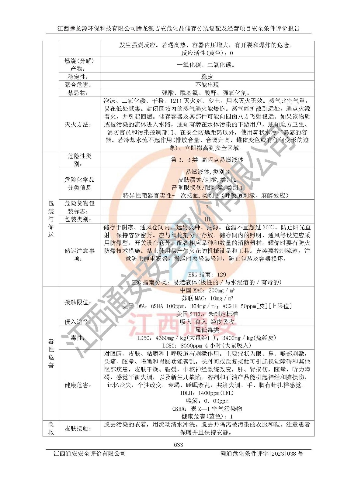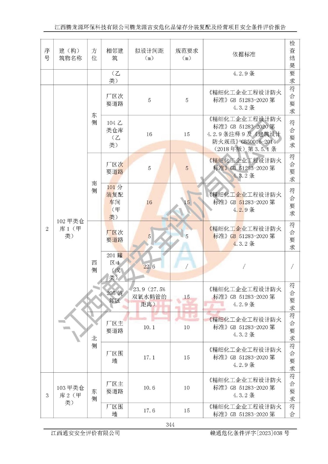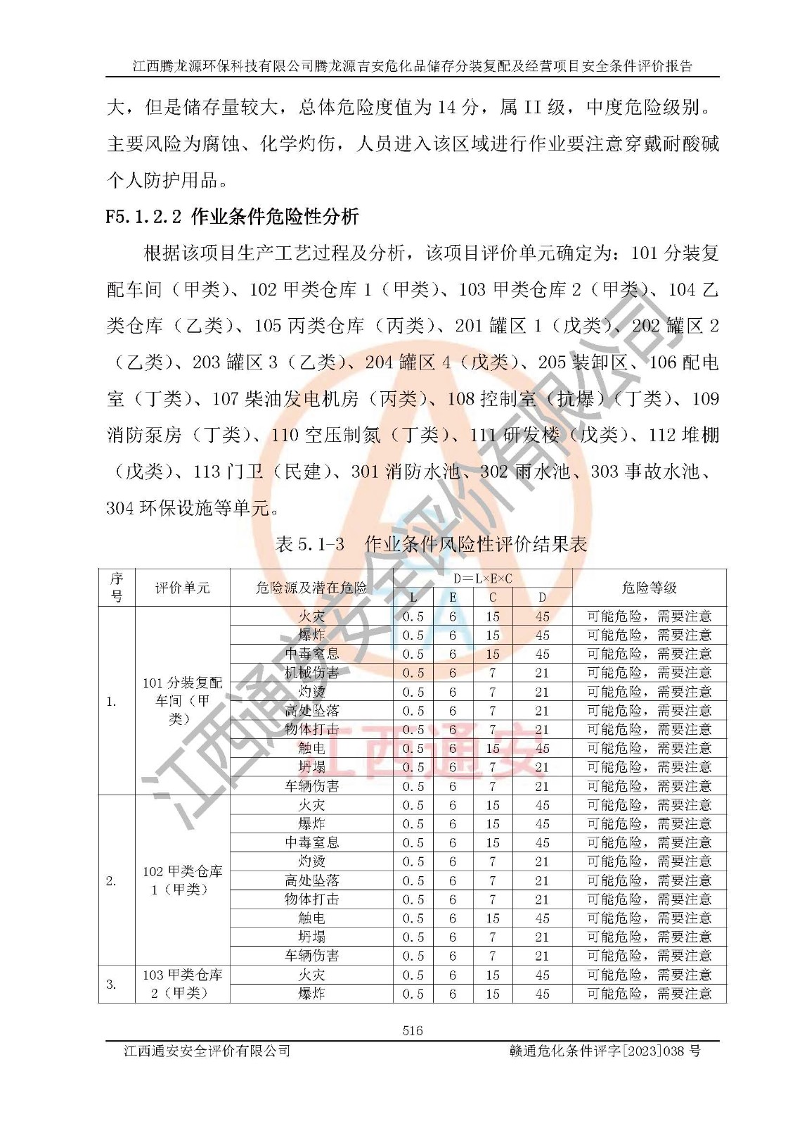 评价结论 | 本评价认为,江西腾龙源**科技有限公司腾龙源吉安危化品储存分装复配及经营项目在以后的初步设计、施工图设计和建设施工、安装调试及生产运行中,如能严格执行**有关安全生产法律、法规和有关标准、规范,认真采纳本报告书第8章提出的安全对策措施及建议,真正做到安全设施与主体工程同时设计、同时施工、同时投入生产和使用的“三同时”,工程的危险、有害因素可得到**控制,风险在可接受范围内,具有**的本质安全水平。该建设项目从安全方面分析可行。 | |||