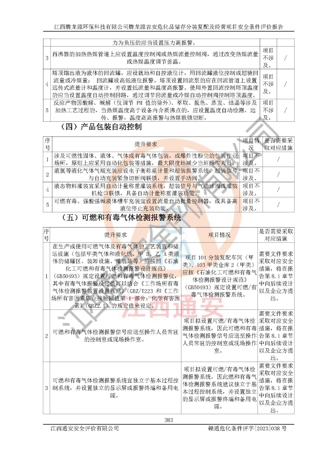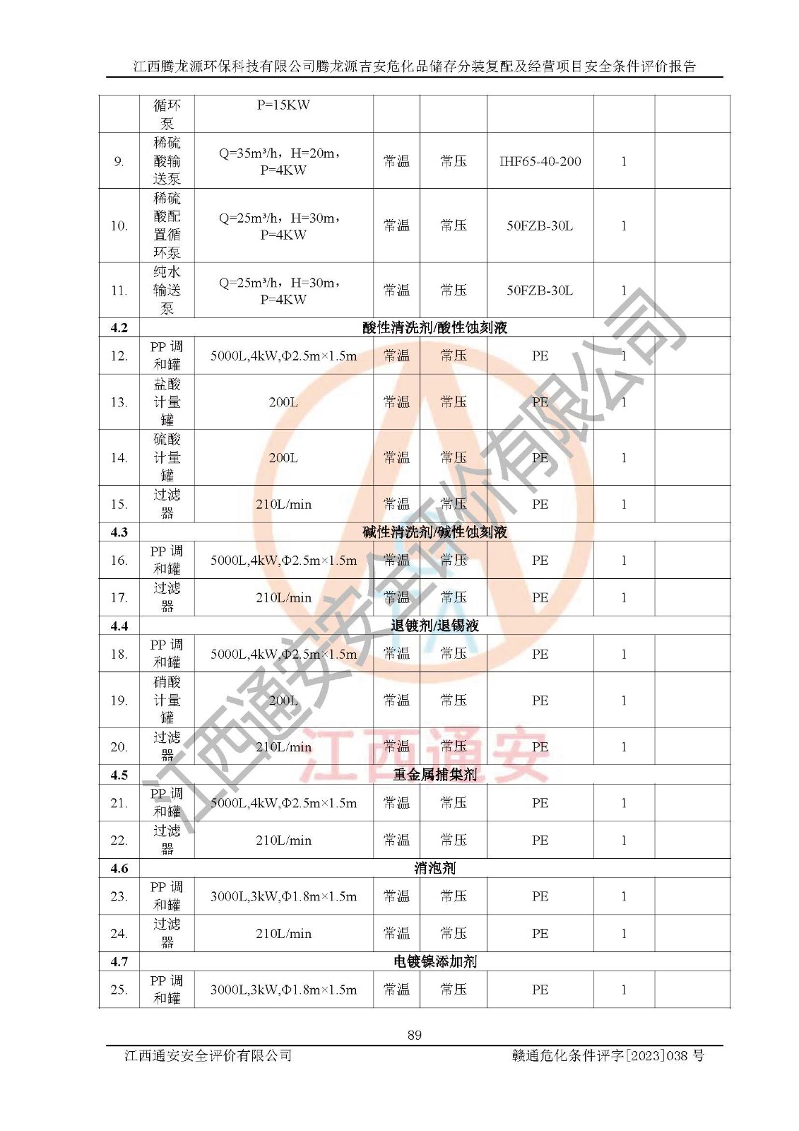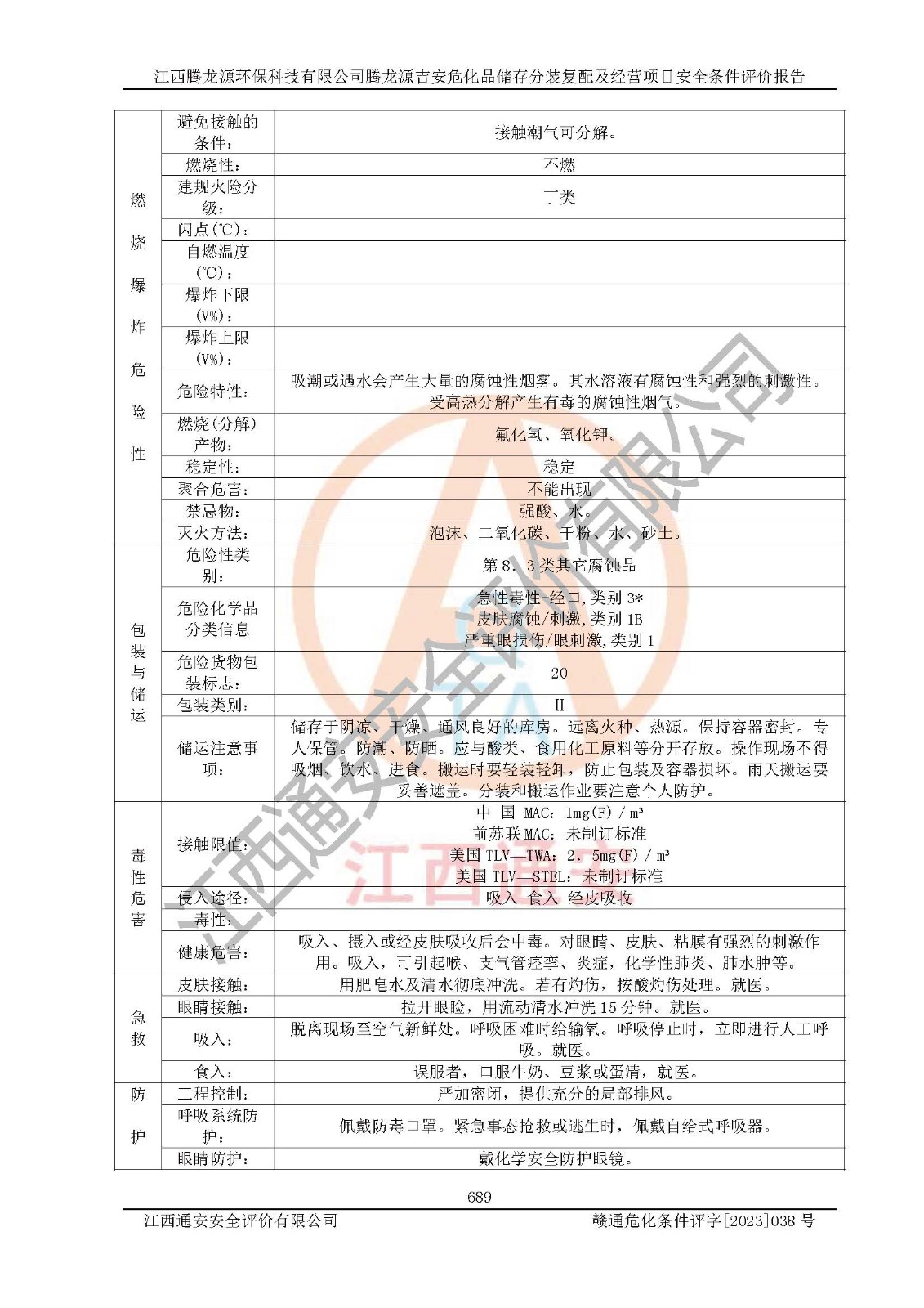 评价结论 | 本评价认为,江西腾龙源**科技有限公司腾龙源吉安危化品储存分装复配及经营项目在以后的初步设计、施工图设计和建设施工、安装调试及生产运行中,如能严格执行**有关安全生产法律、法规和有关标准、规范,认真采纳本报告书第8章提出的安全对策措施及建议,真正做到安全设施与主体工程同时设计、同时施工、同时投入生产和使用的“三同时”,工程的危险、有害因素可得到**控制,风险在可接受范围内,具有**的本质安全水平。该建设项目从安全方面分析可行。 | |||