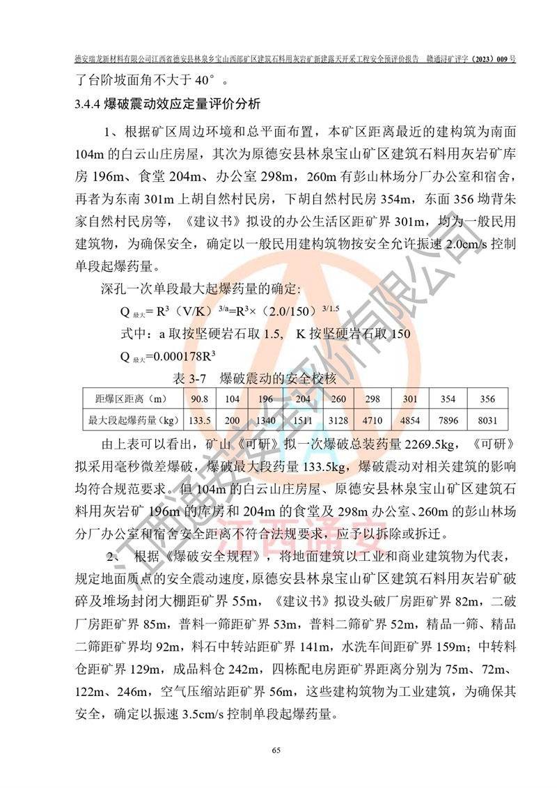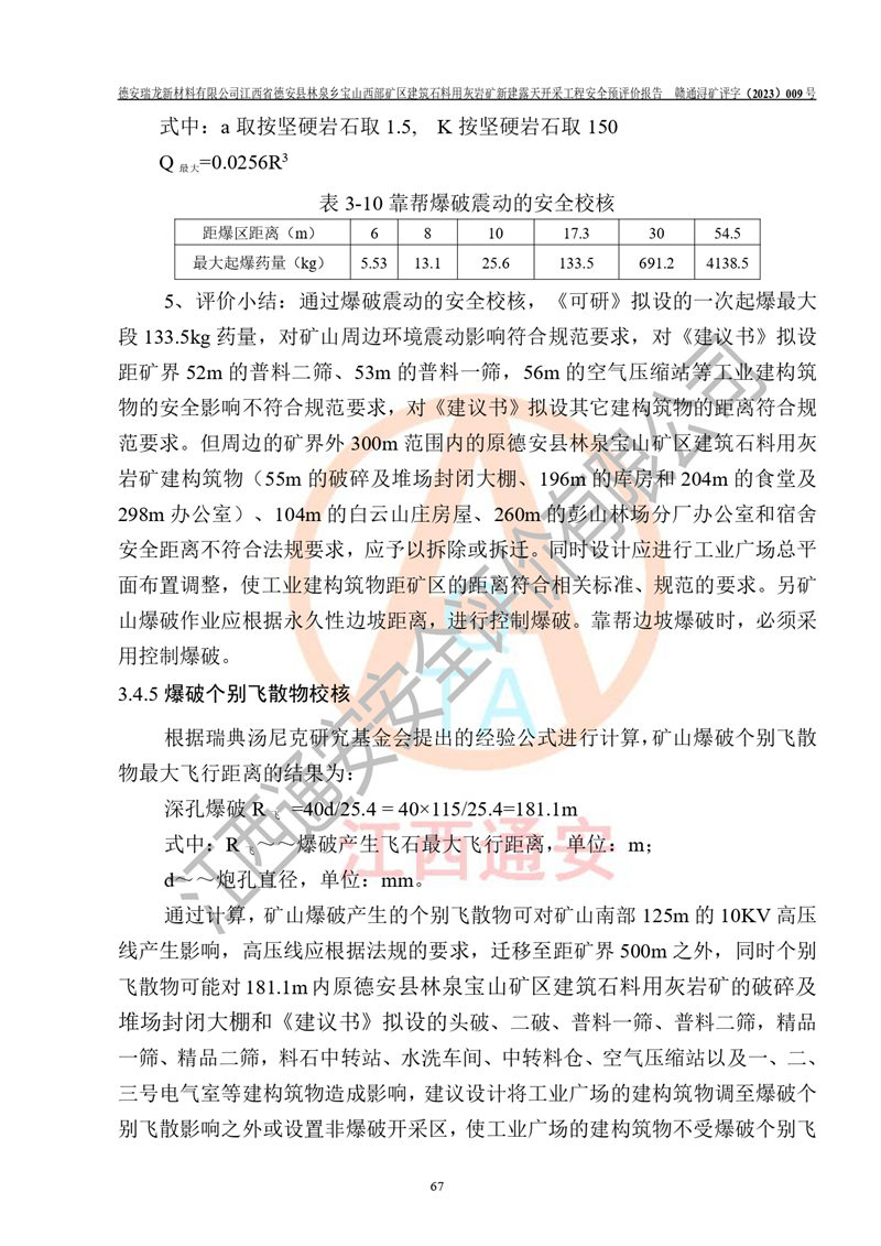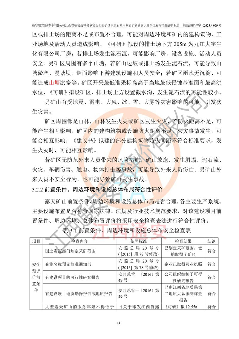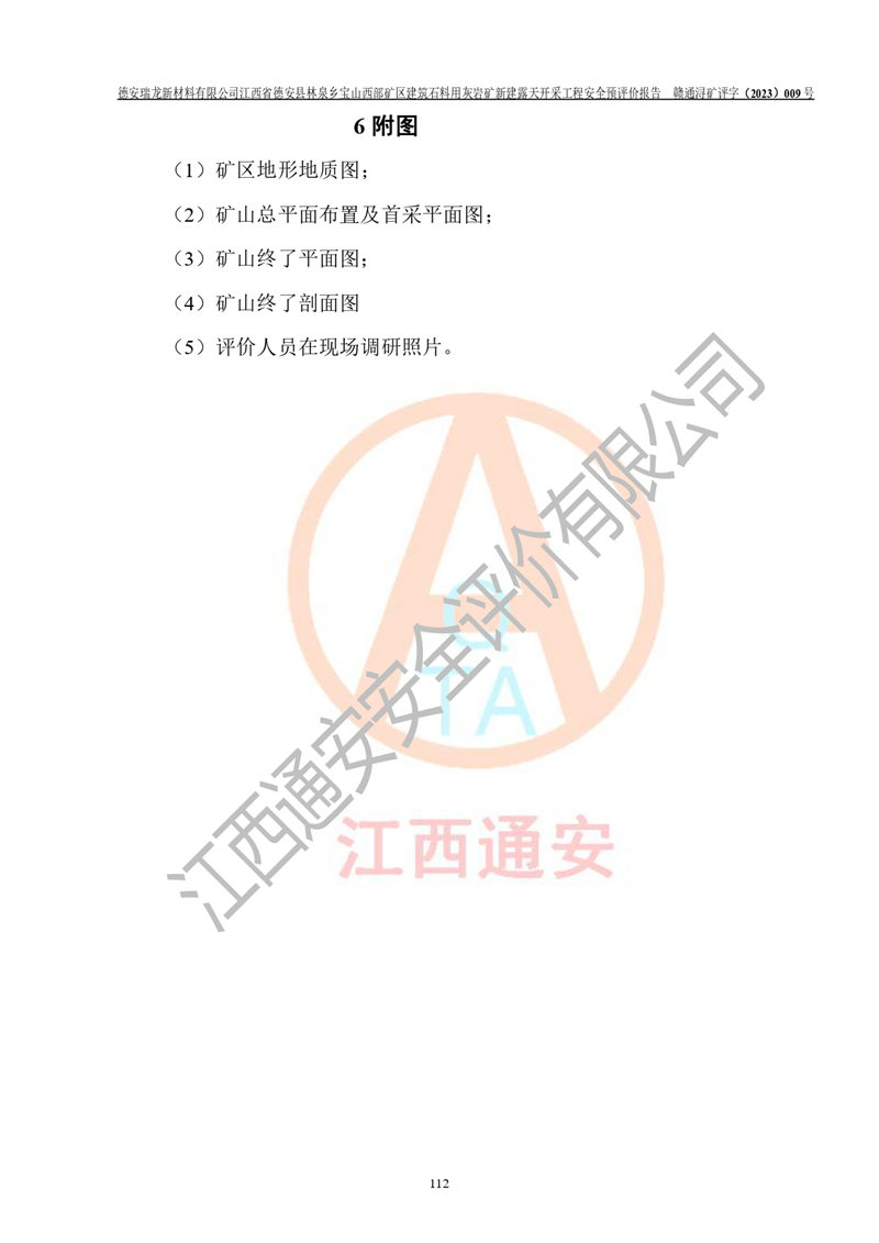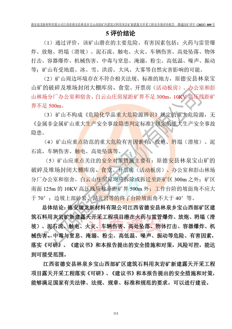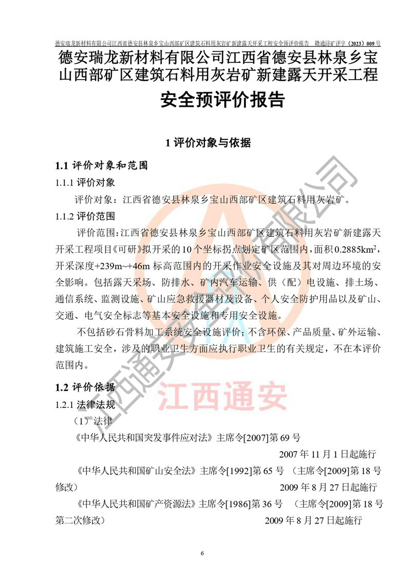 评价报告名称 | 德安瑞龙新材料有限公司江西省德安县林泉乡宝山西部矿区建筑石料用灰岩矿新建露天开采工程安全预评价报告 | |||||