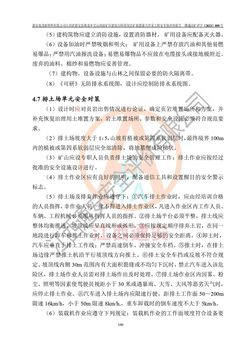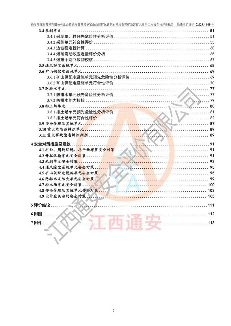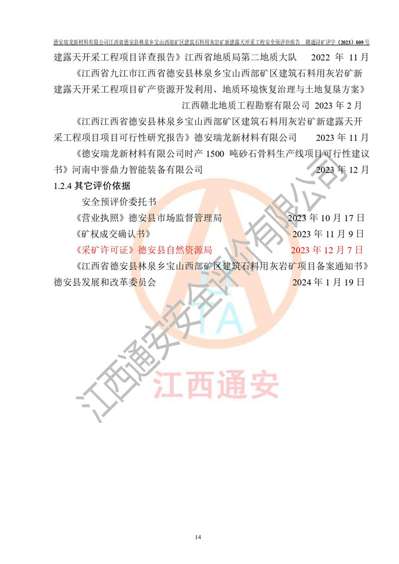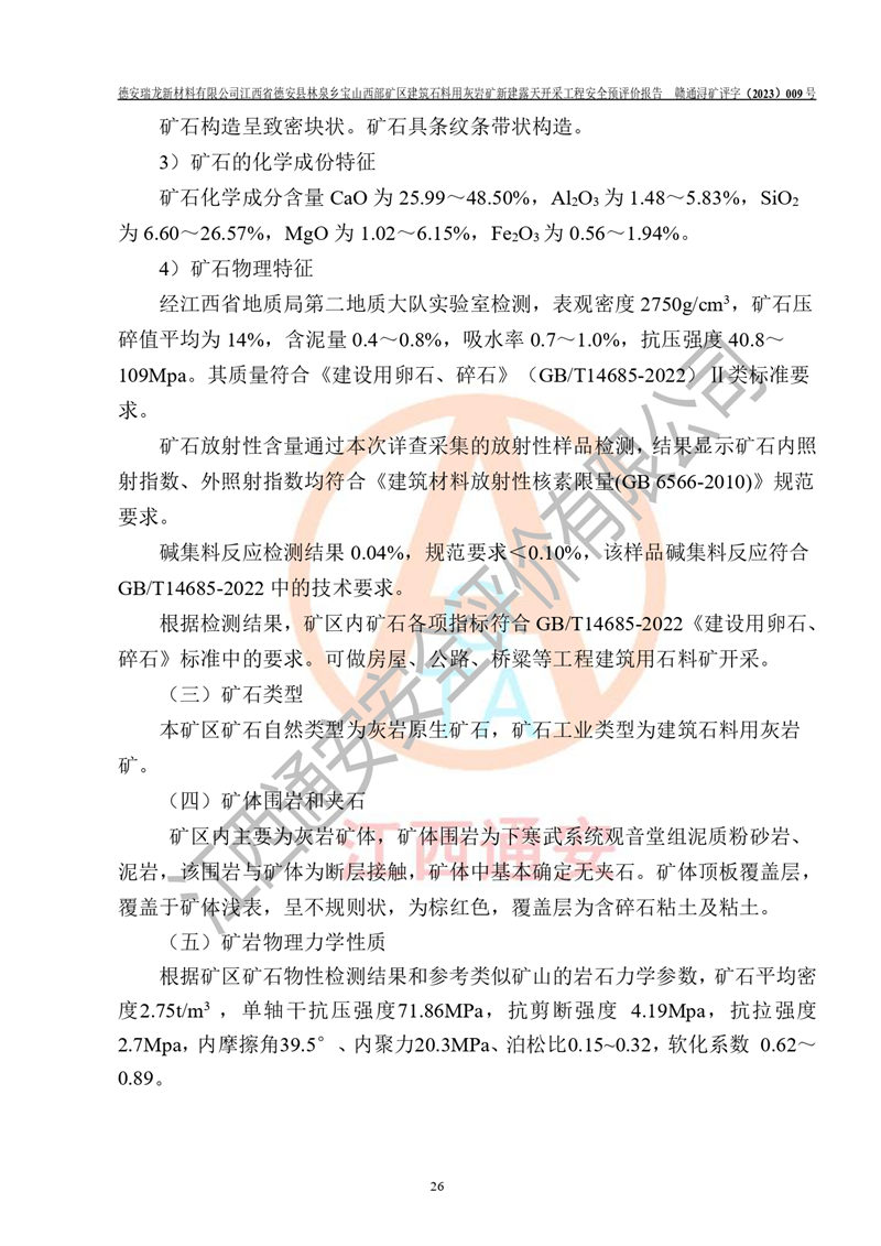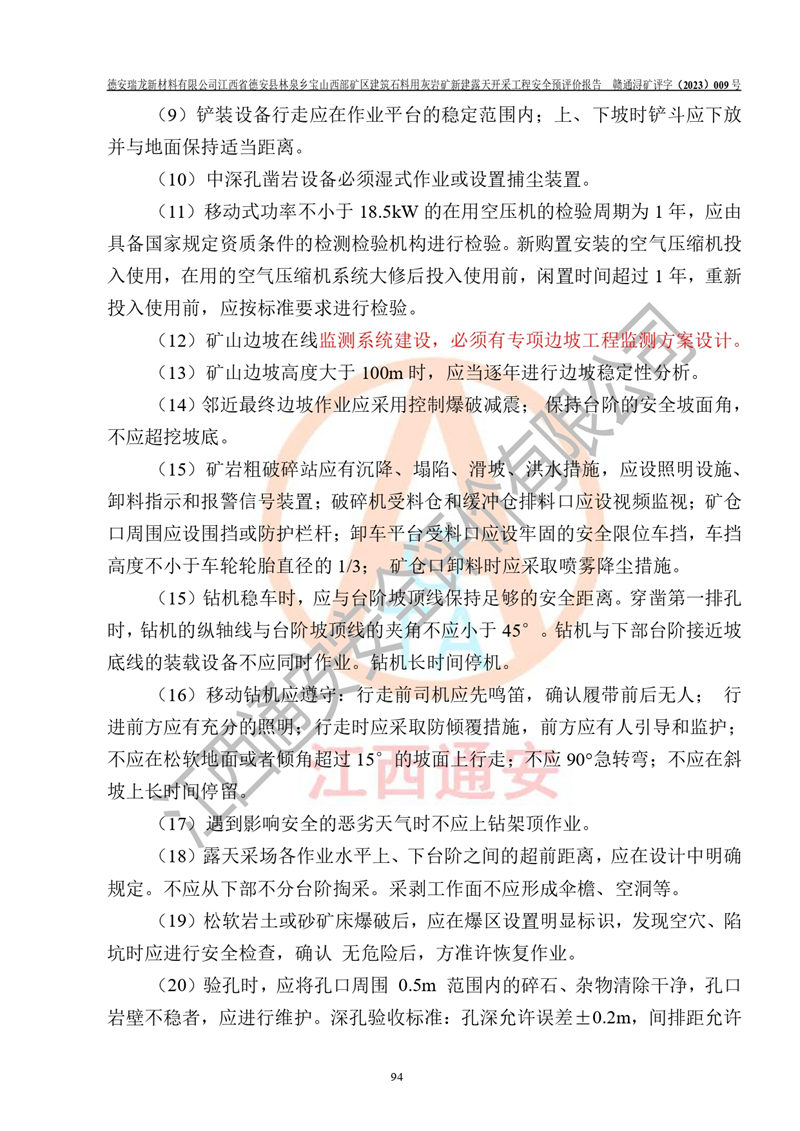 评价报告名称 | 德安瑞龙新材料有限公司江西省德安县林泉乡宝山西部矿区建筑石料用灰岩矿新建露天开采工程安全预评价报告 | |||||