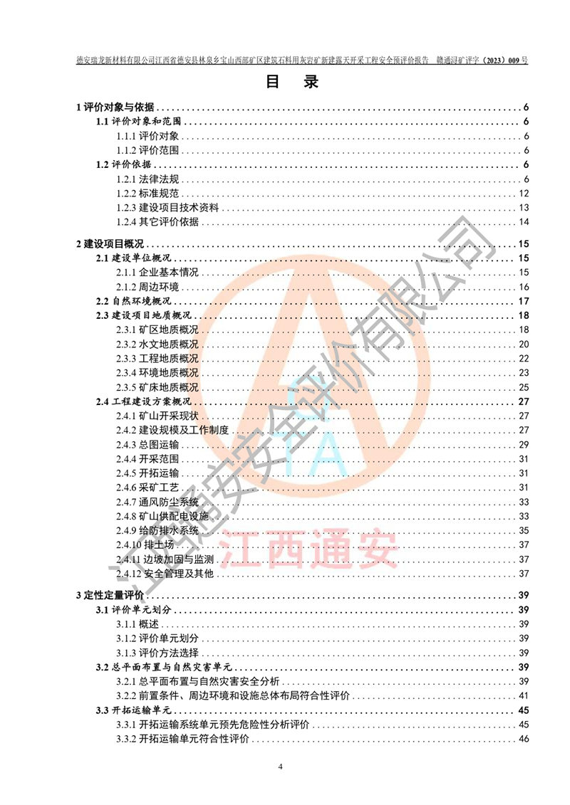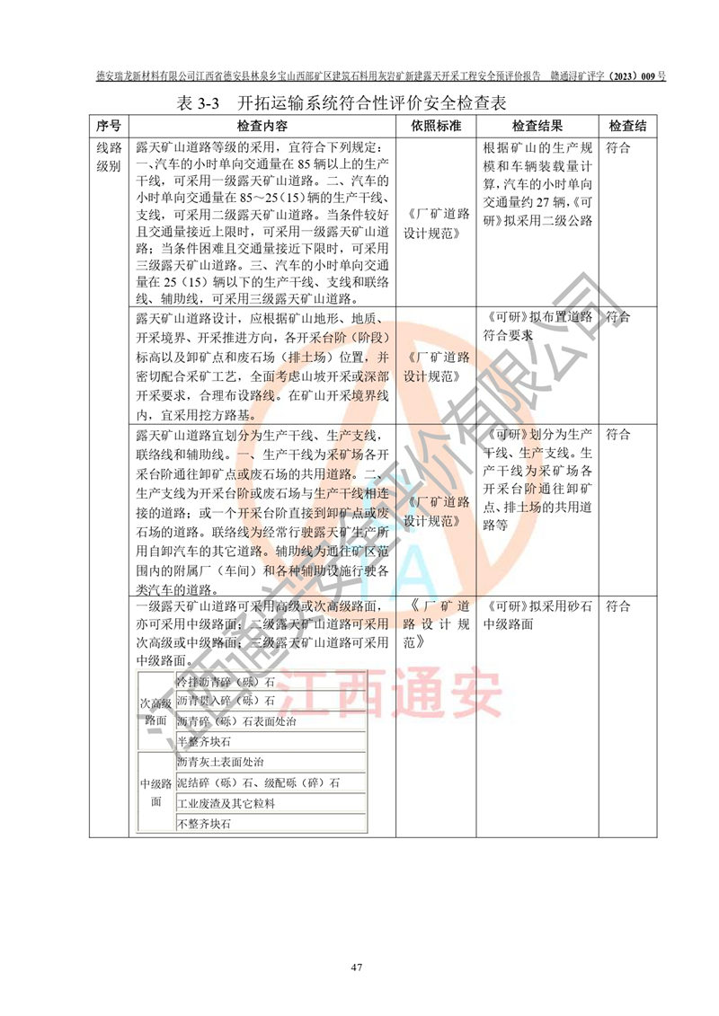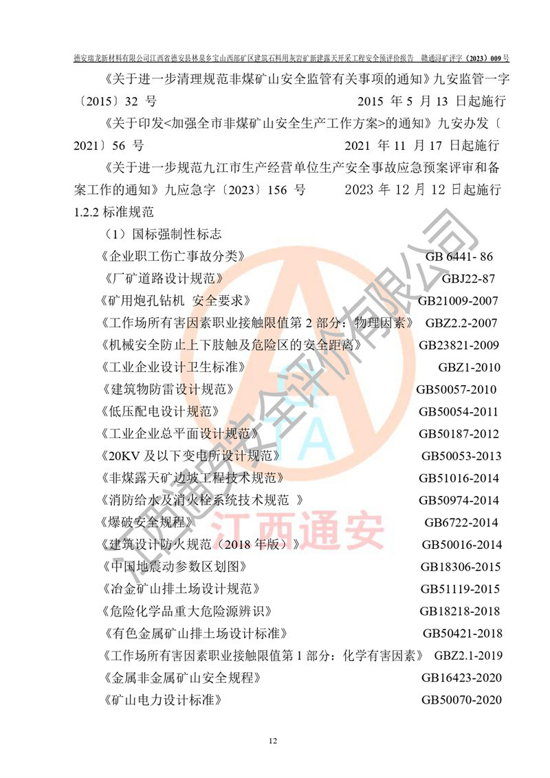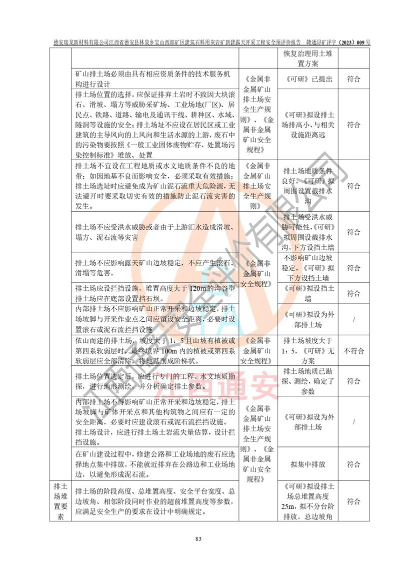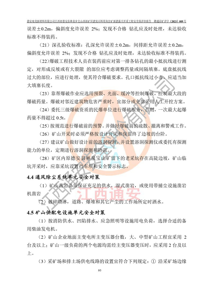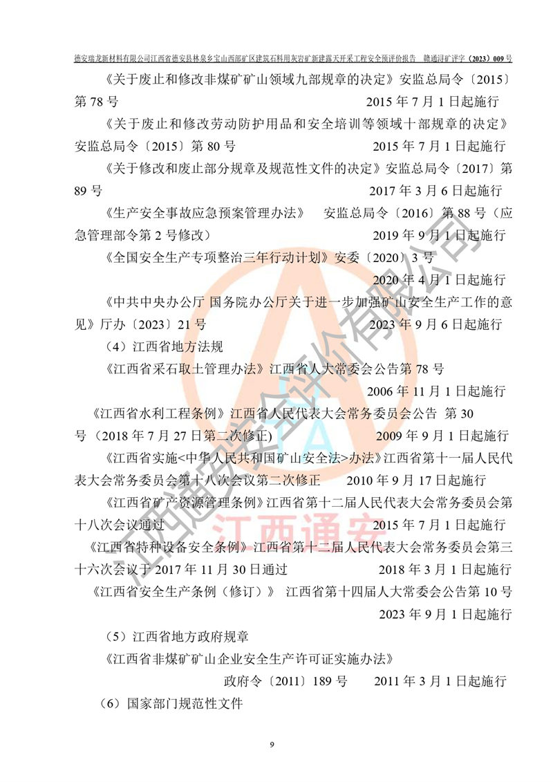 评价报告名称 | 德安瑞龙新材料有限公司江西省德安县林泉乡宝山西部矿区建筑石料用灰岩矿新建露天开采工程安全预评价报告 | |||||