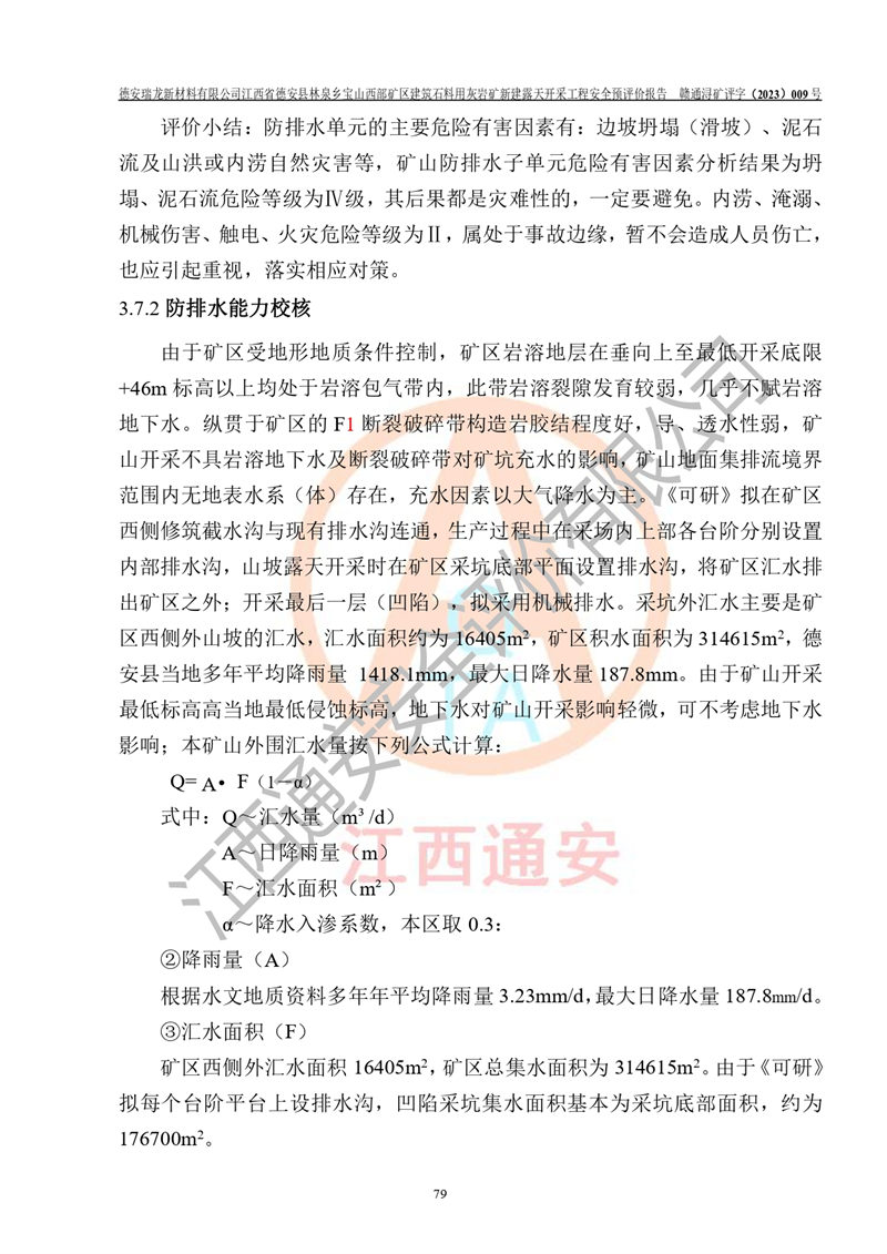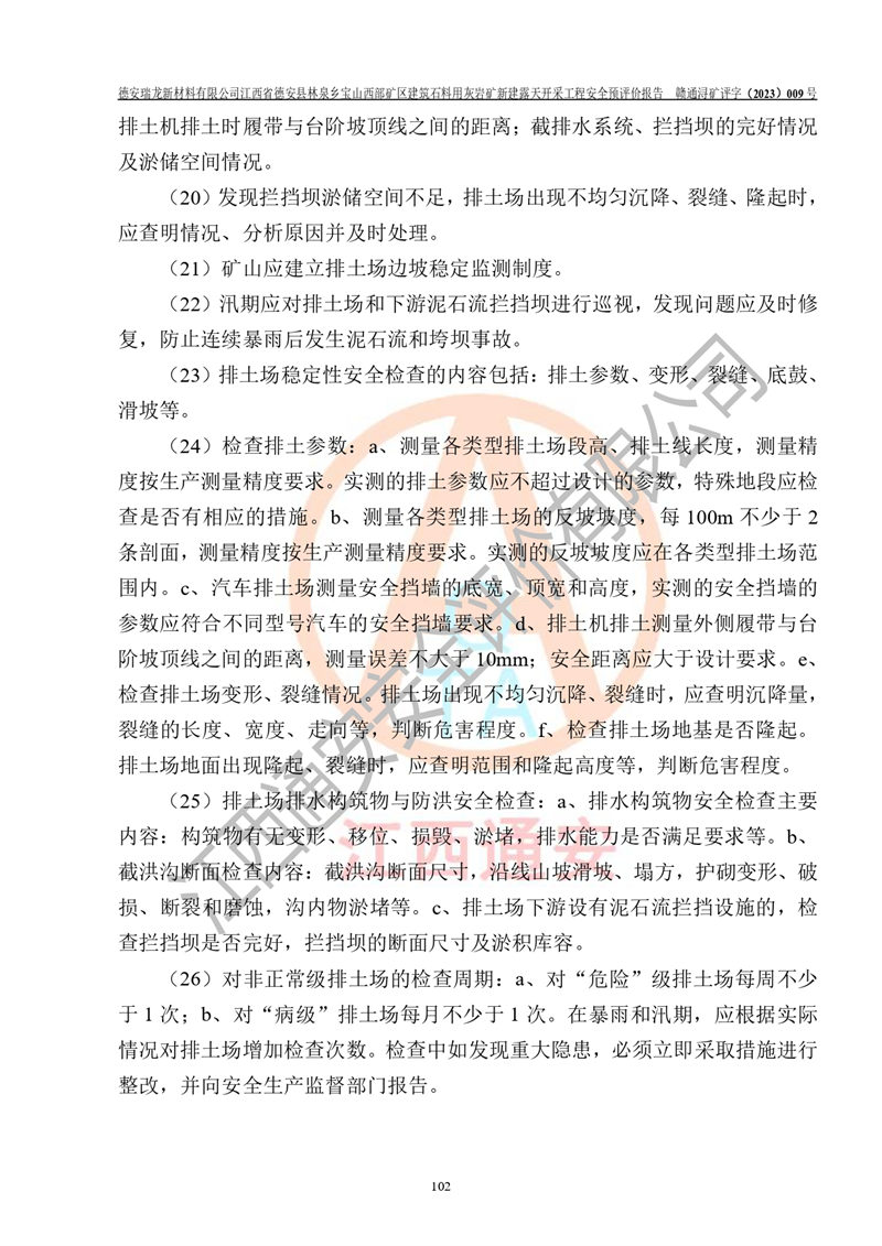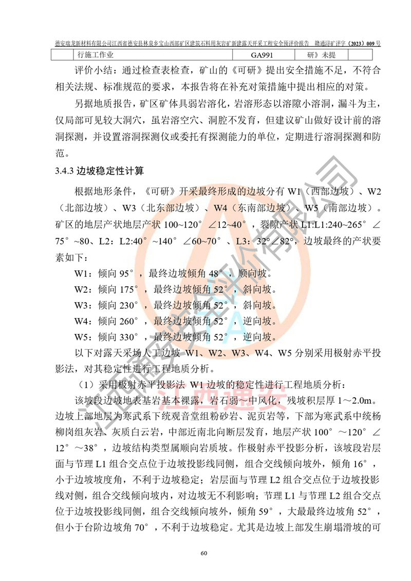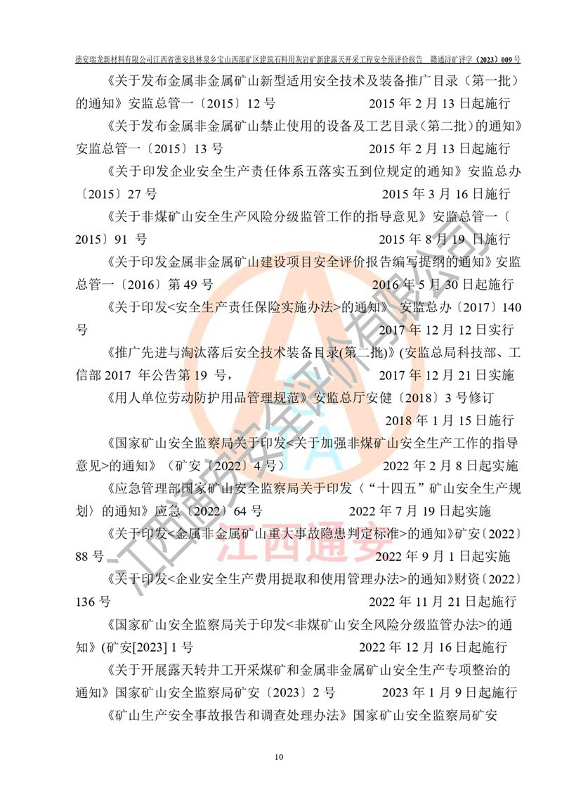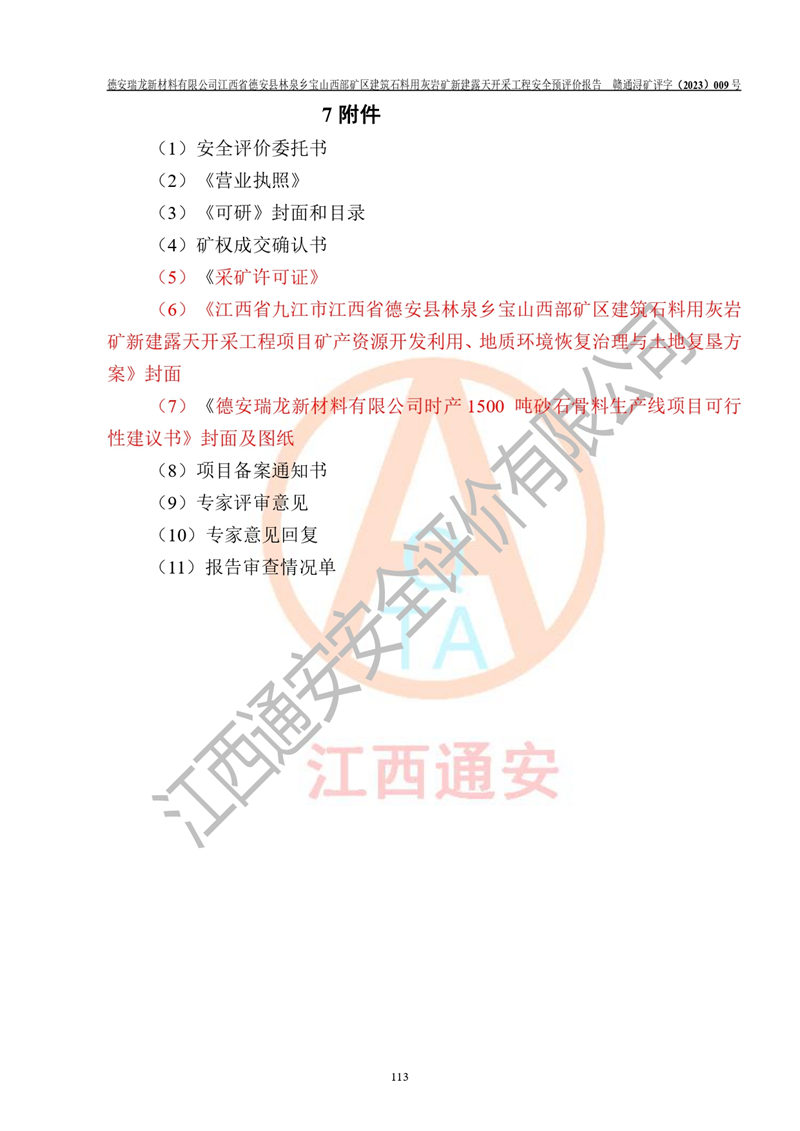 评价报告名称 | 德安瑞龙新材料有限公司江西省德安县林泉乡宝山西部矿区建筑石料用灰岩矿新建露天开采工程安全预评价报告 | |||||