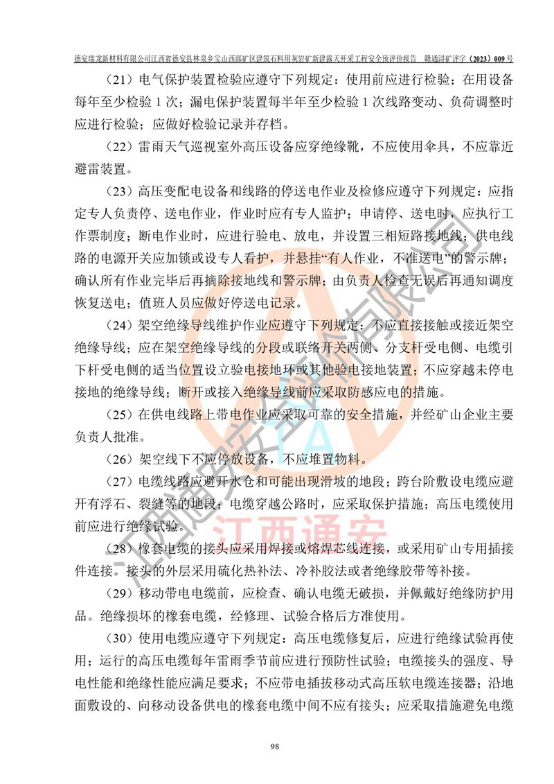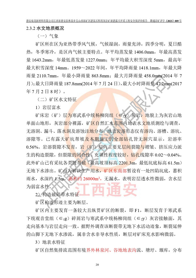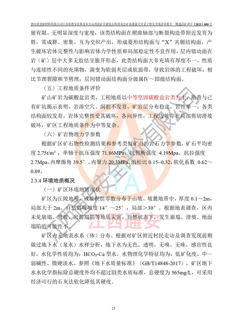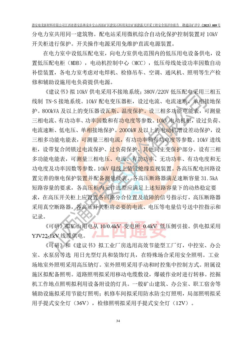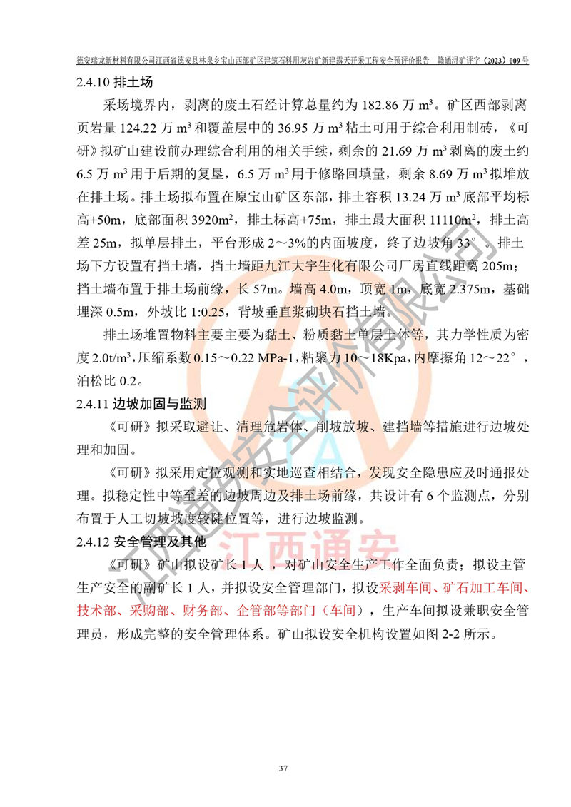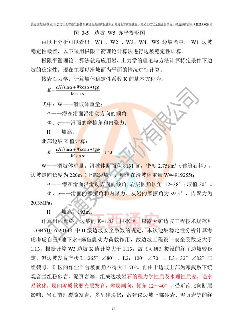 评价报告名称 | 德安瑞龙新材料有限公司江西省德安县林泉乡宝山西部矿区建筑石料用灰岩矿新建露天开采工程安全预评价报告 | |||||