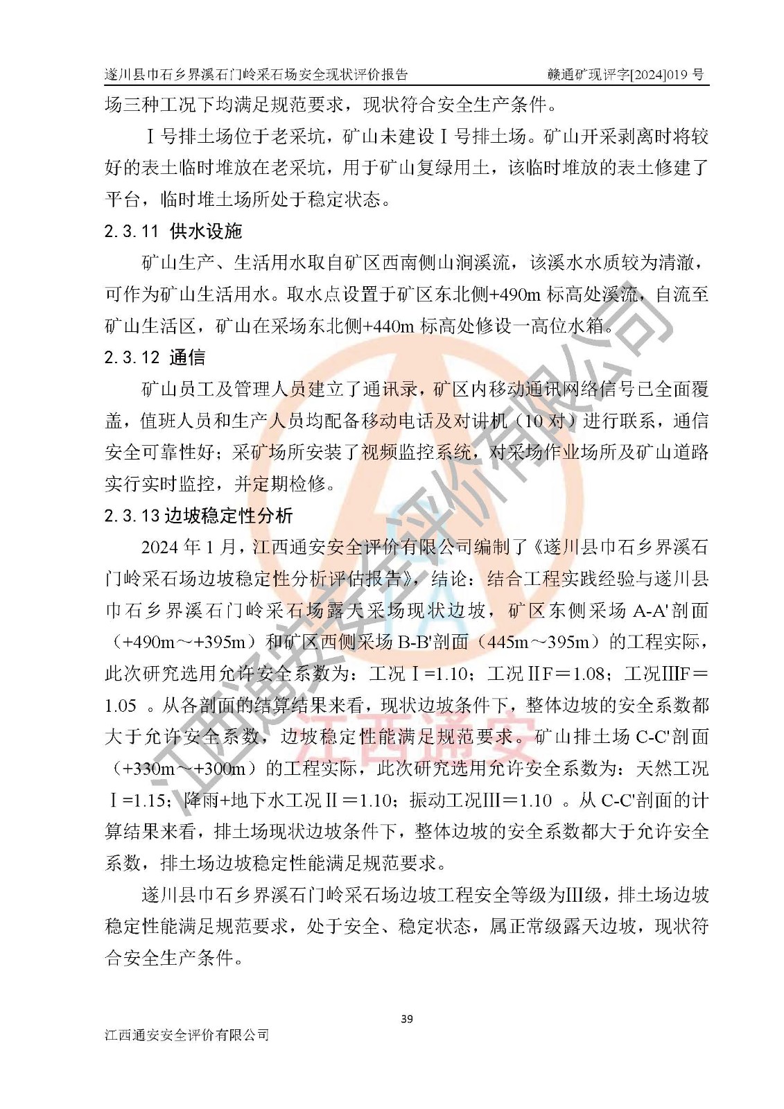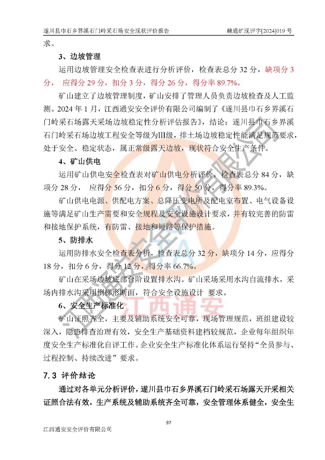 项目名称 | 遂川县巾石乡界溪石门岭采石场安全现状评价报告 | ||||