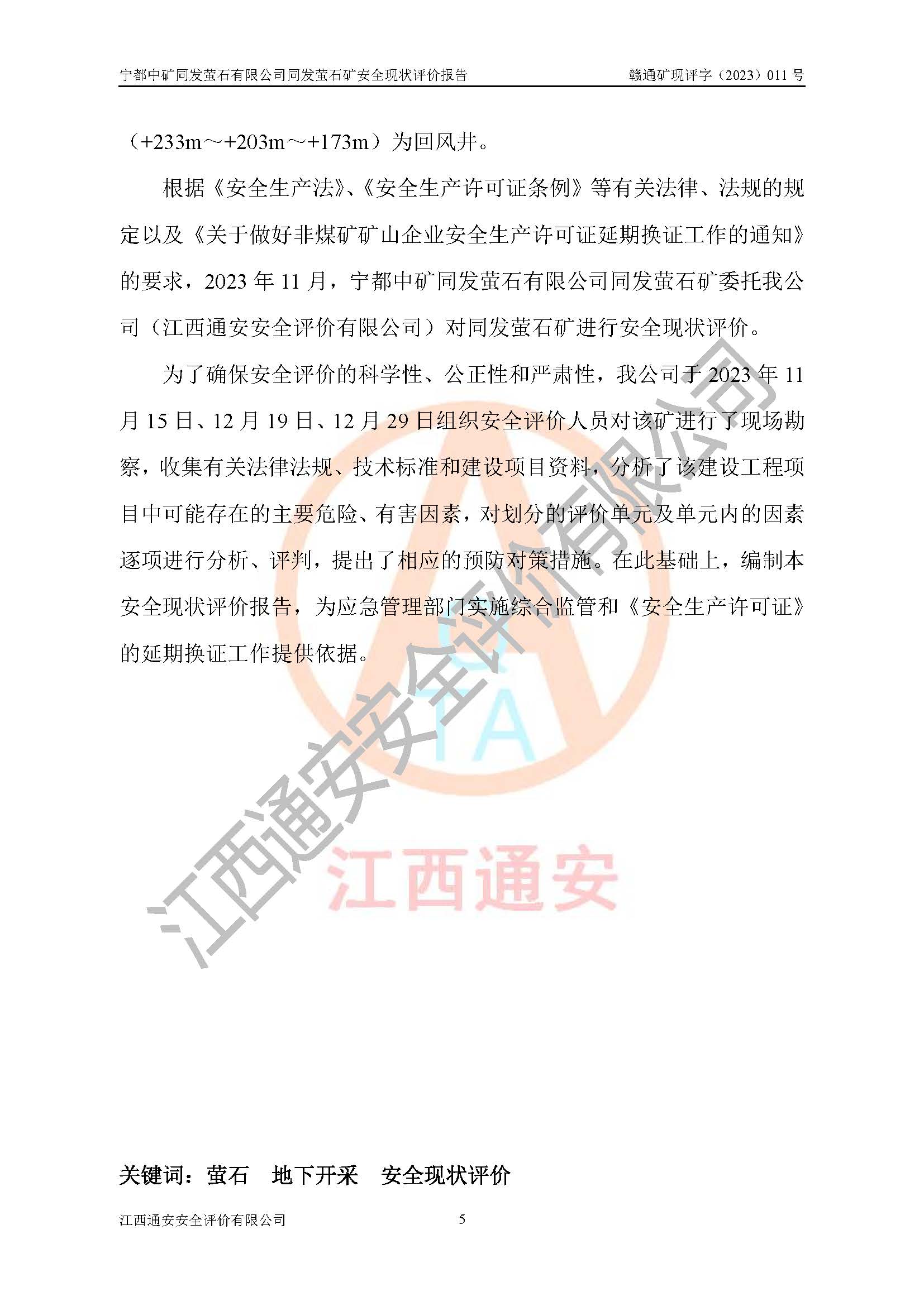 项目名称 | 宁都中矿同发萤石有限公司同发萤石矿安全现状评价报告 | ||||