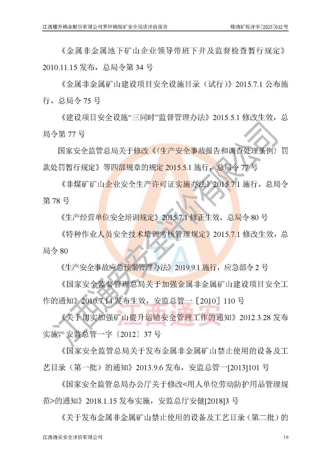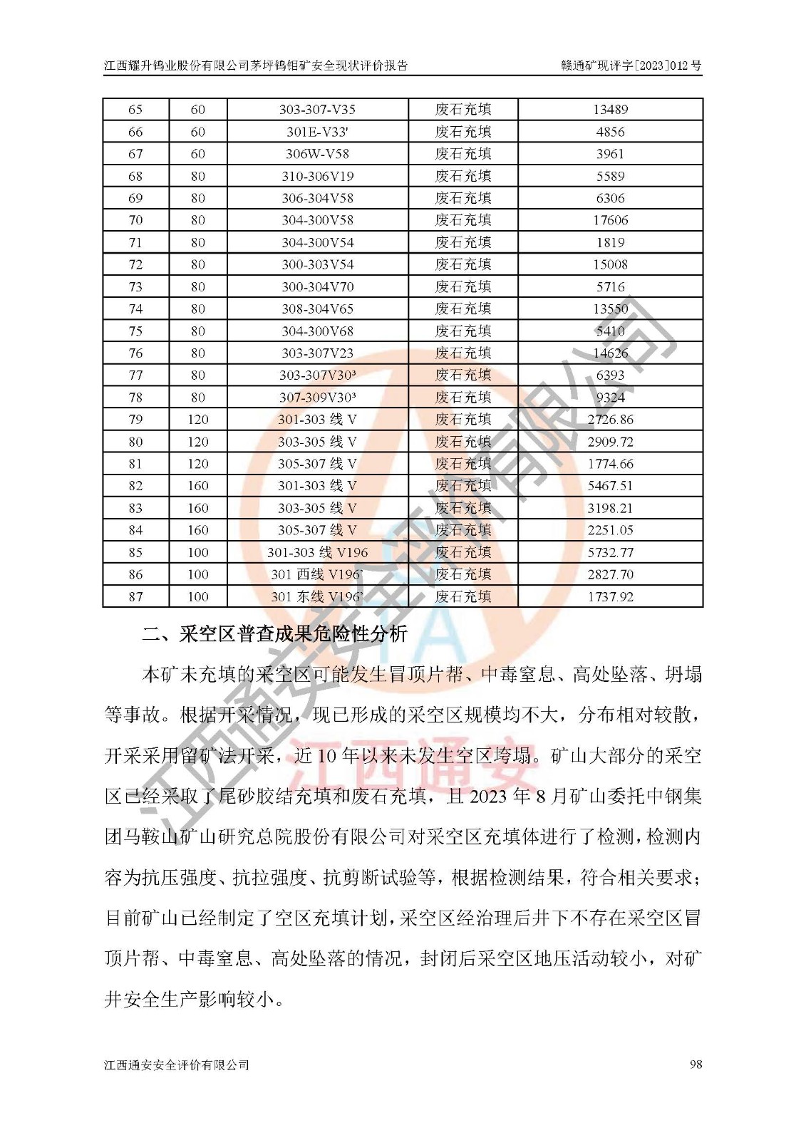 项目名称 | 江西耀升钨业股份有限公司茅坪钨钼矿安全现状评价报告 | ||||