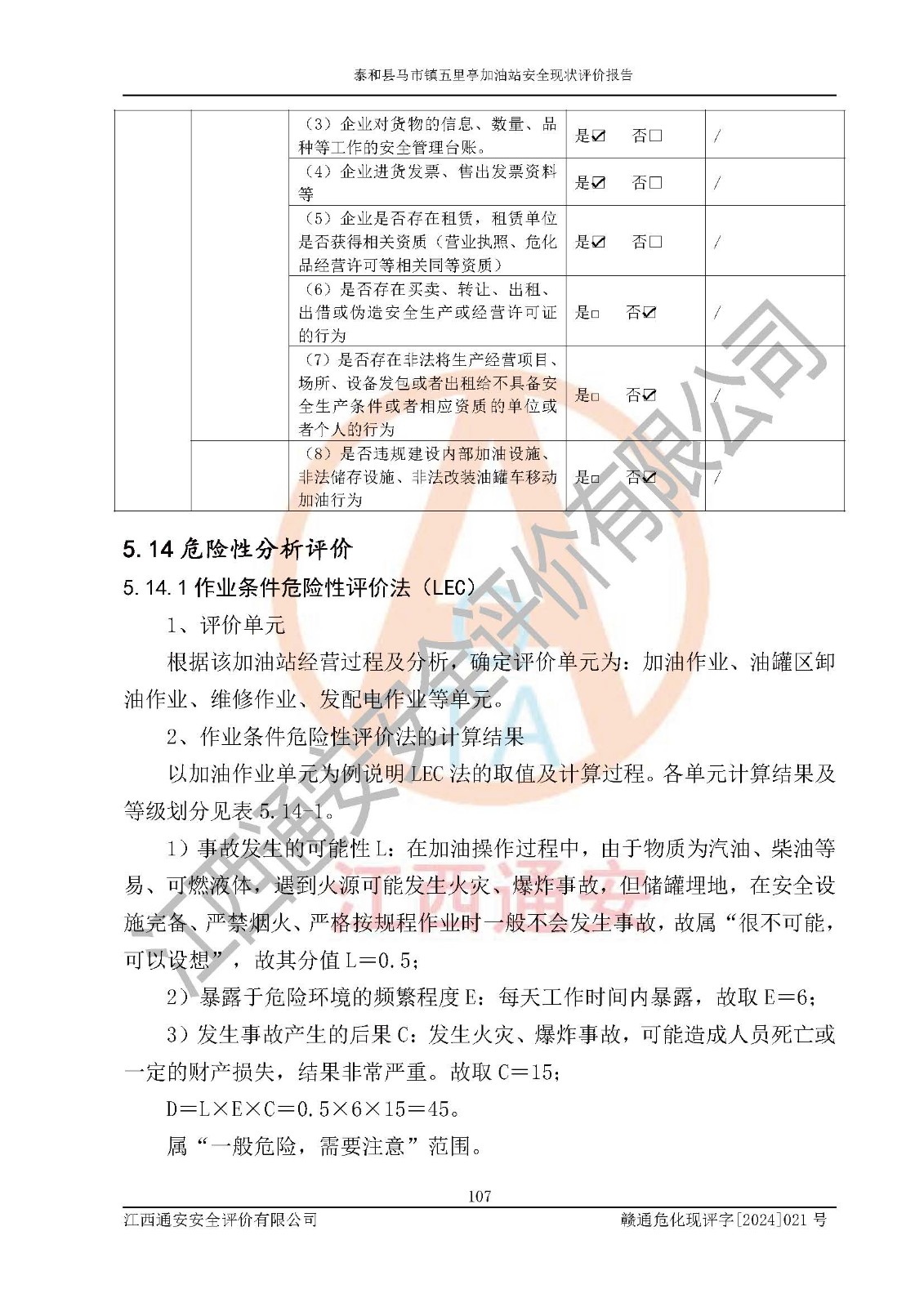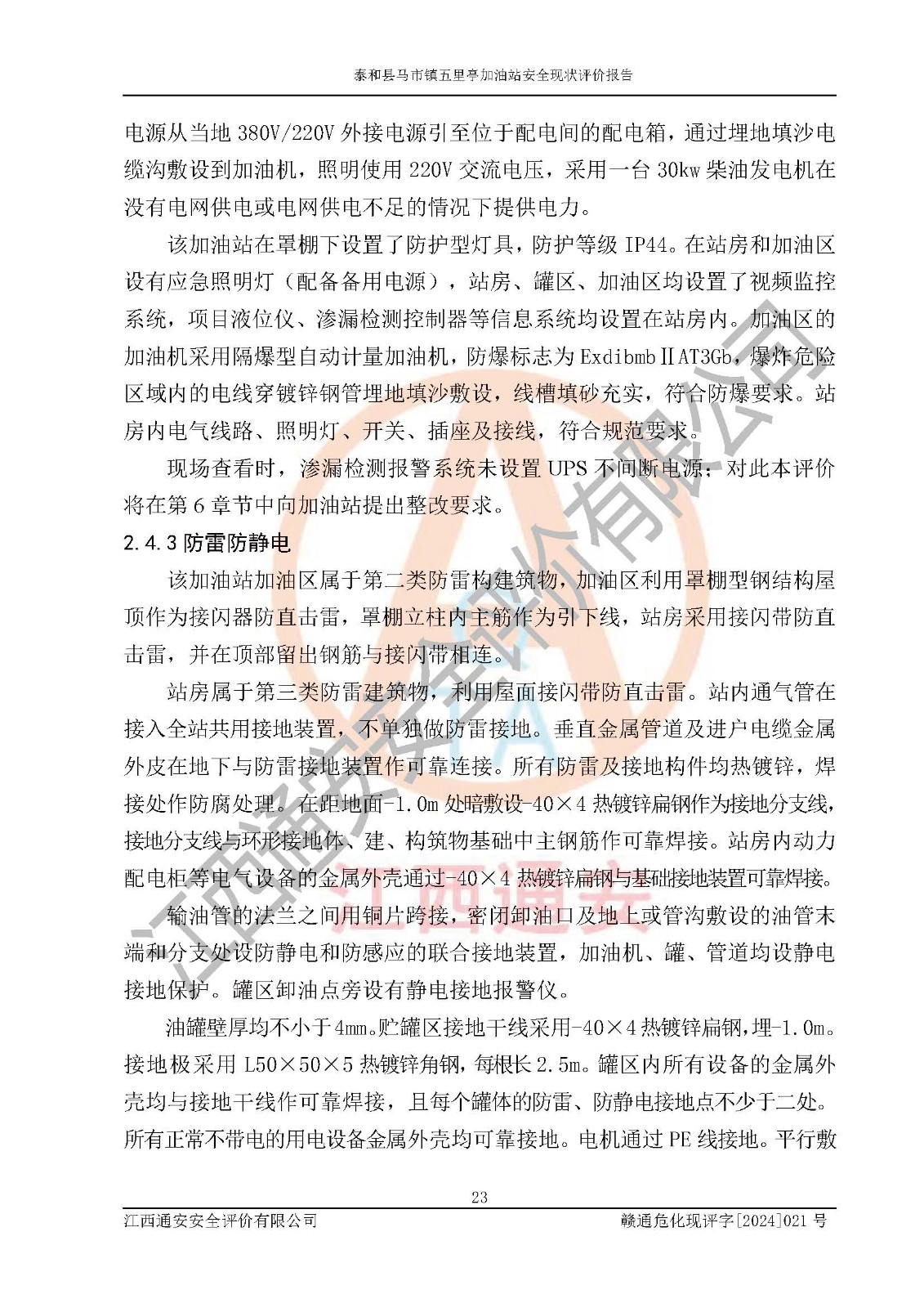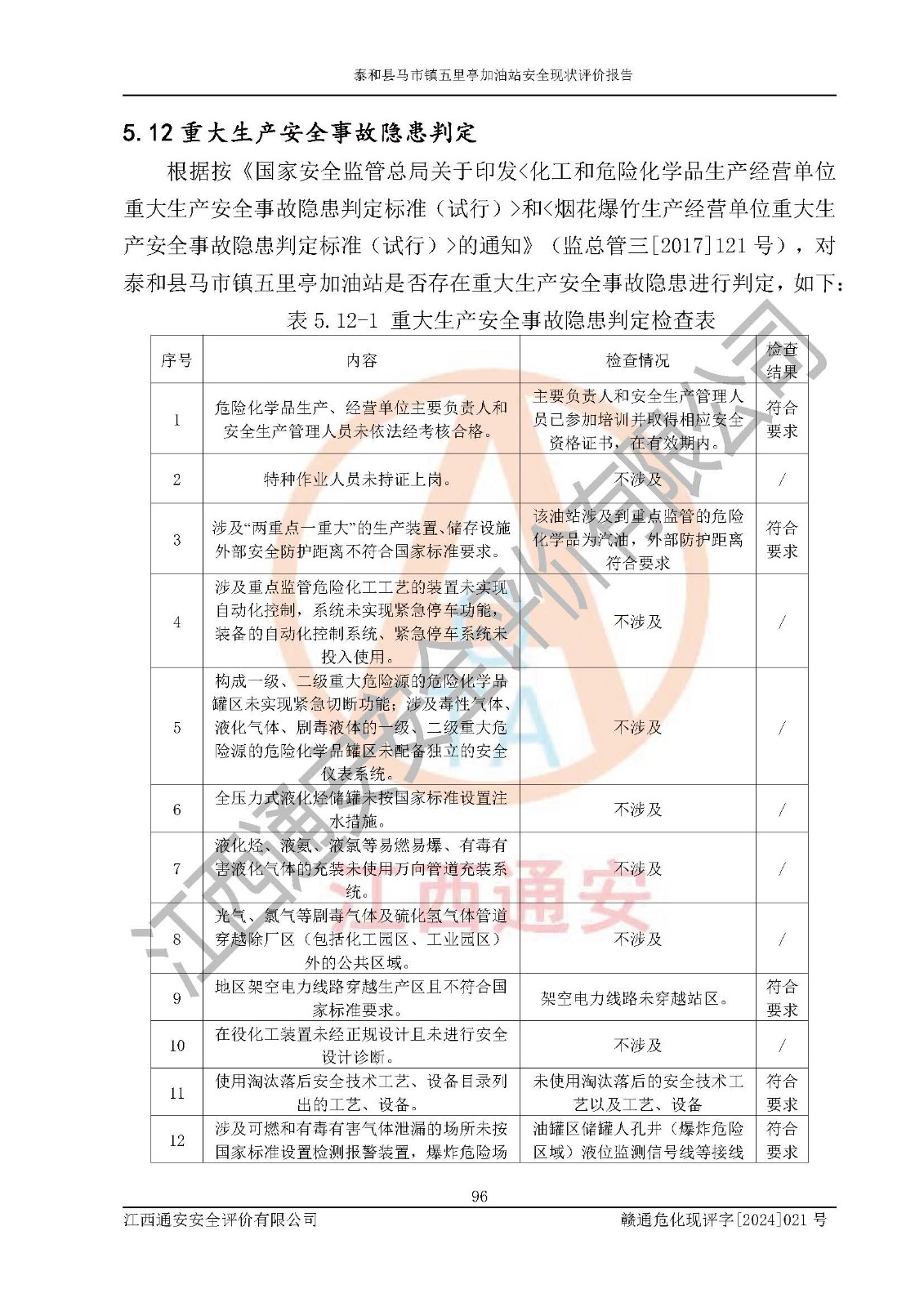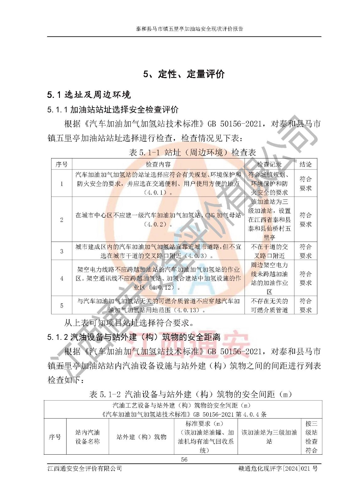 评价报告名称 | 泰和县马市镇五里亭加油站 | |||