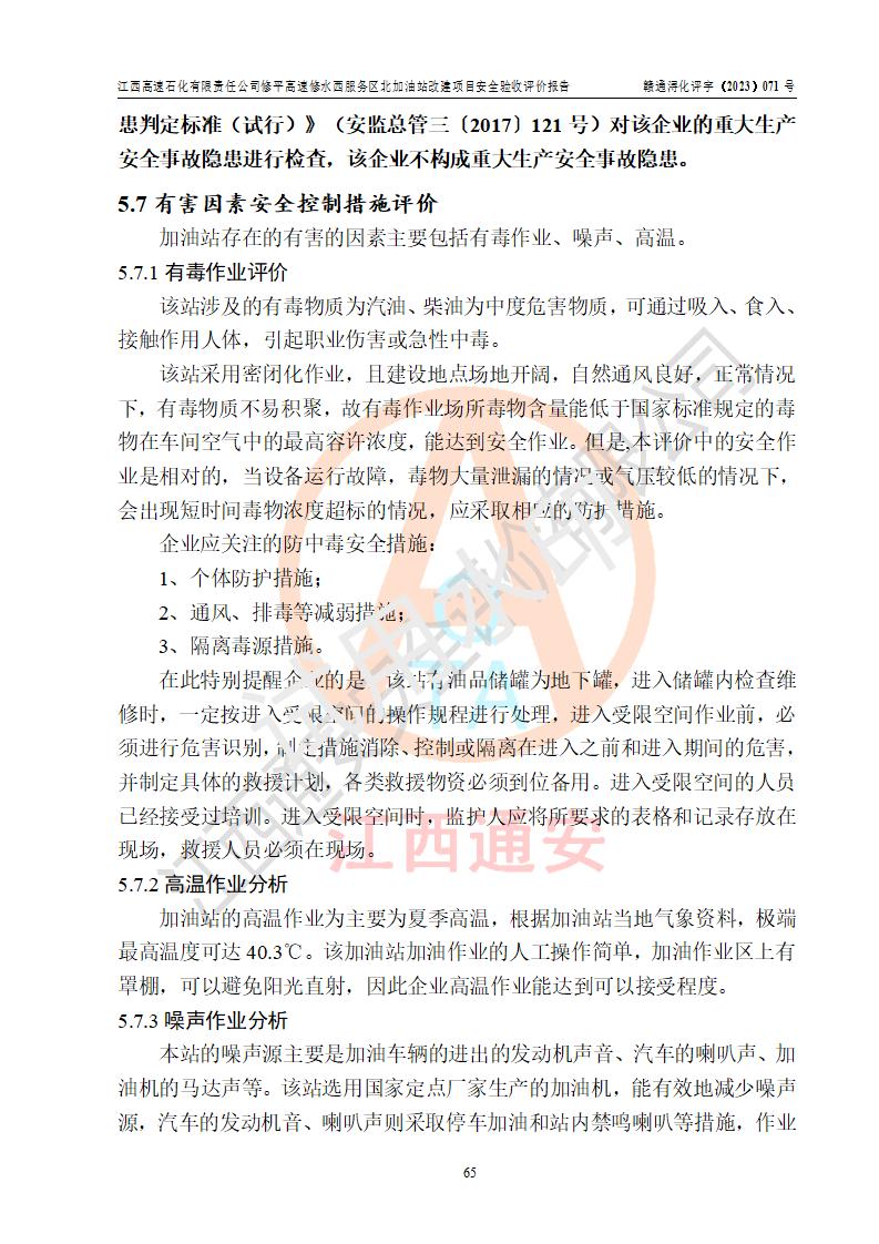 评价报告名称 | 江西高速石化有限责任公司修平高速修水西服务区北加油站安全验收评价报告 | |||