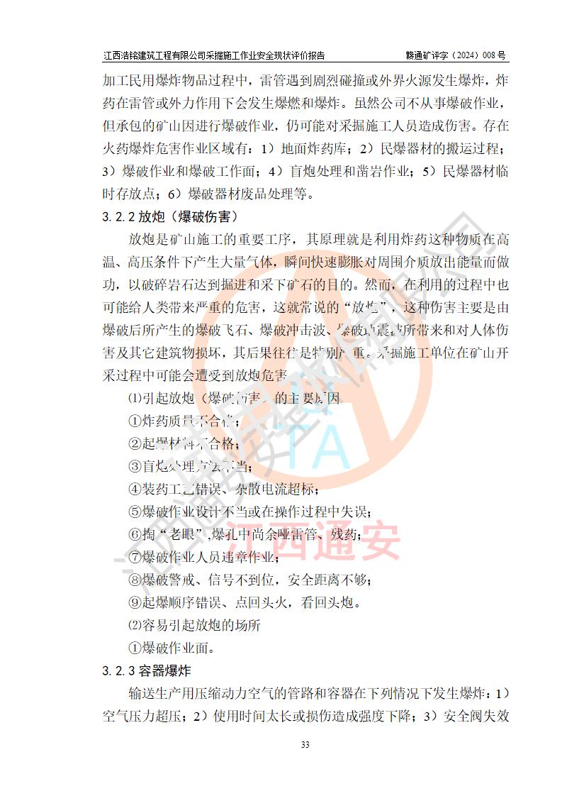 报告名称 | 江西浩铭建筑工程有限公司采掘施工作业安全现状评价报告 | |||||