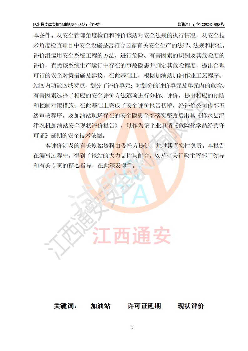 评价报告名称 | 修水县渣津农机加油站安全现状评价报告 | |||