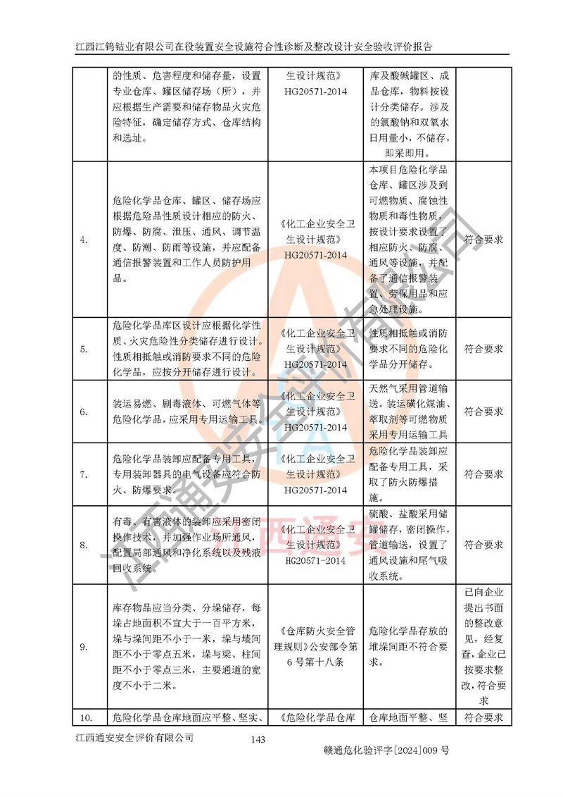项目名称 | 江西江钨钴业有限公司在役装置安全设施符合性诊断及整改设计安全验收评价 | ||||