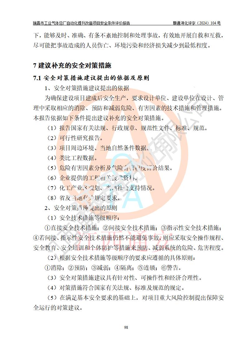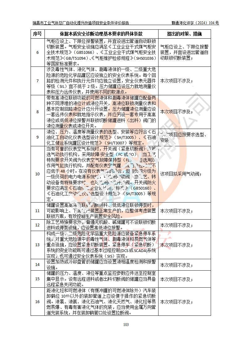 评价报告名称 | 瑞昌市工业气体总厂自动化提升改造项目安全条件评价报告 | ||||