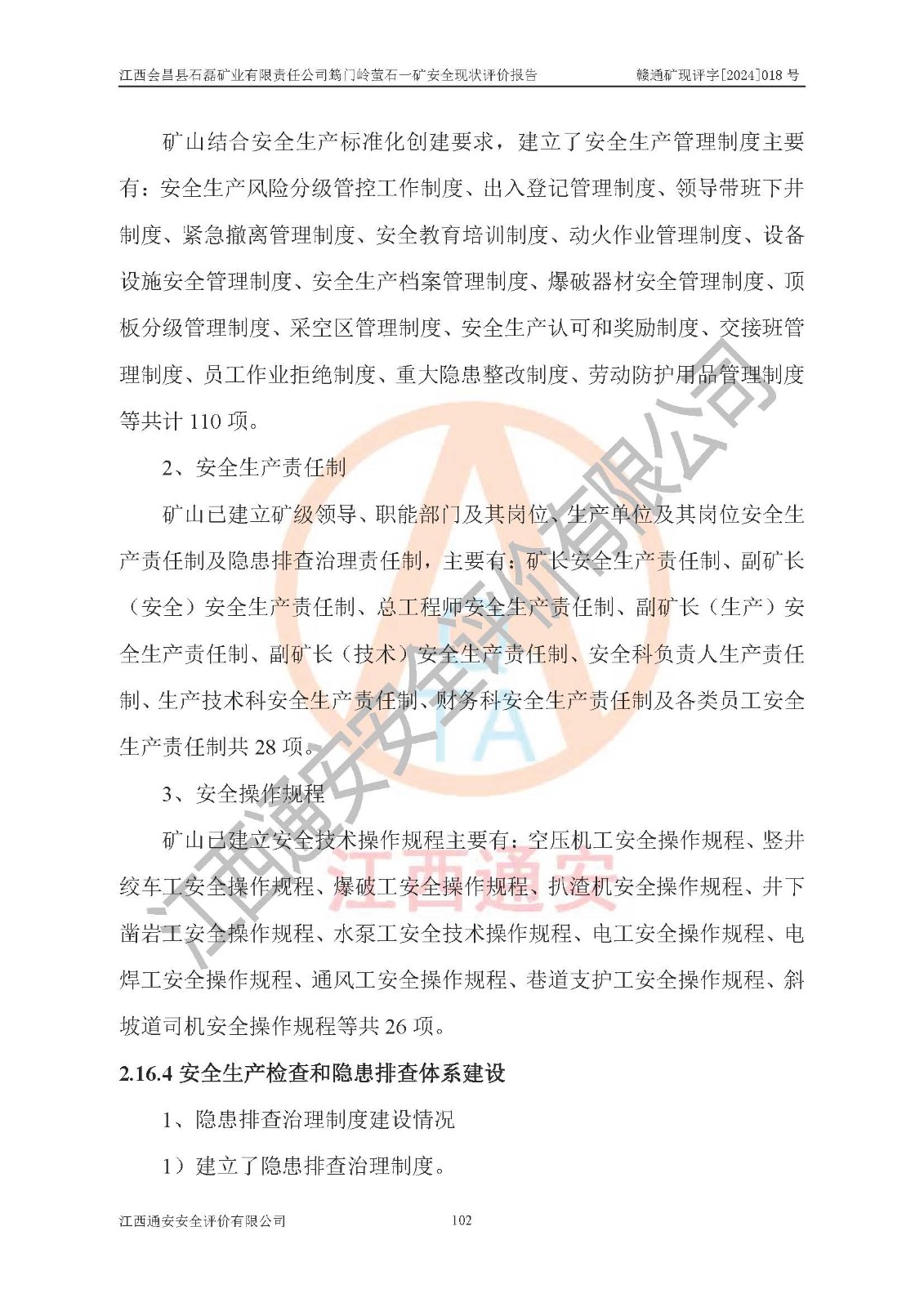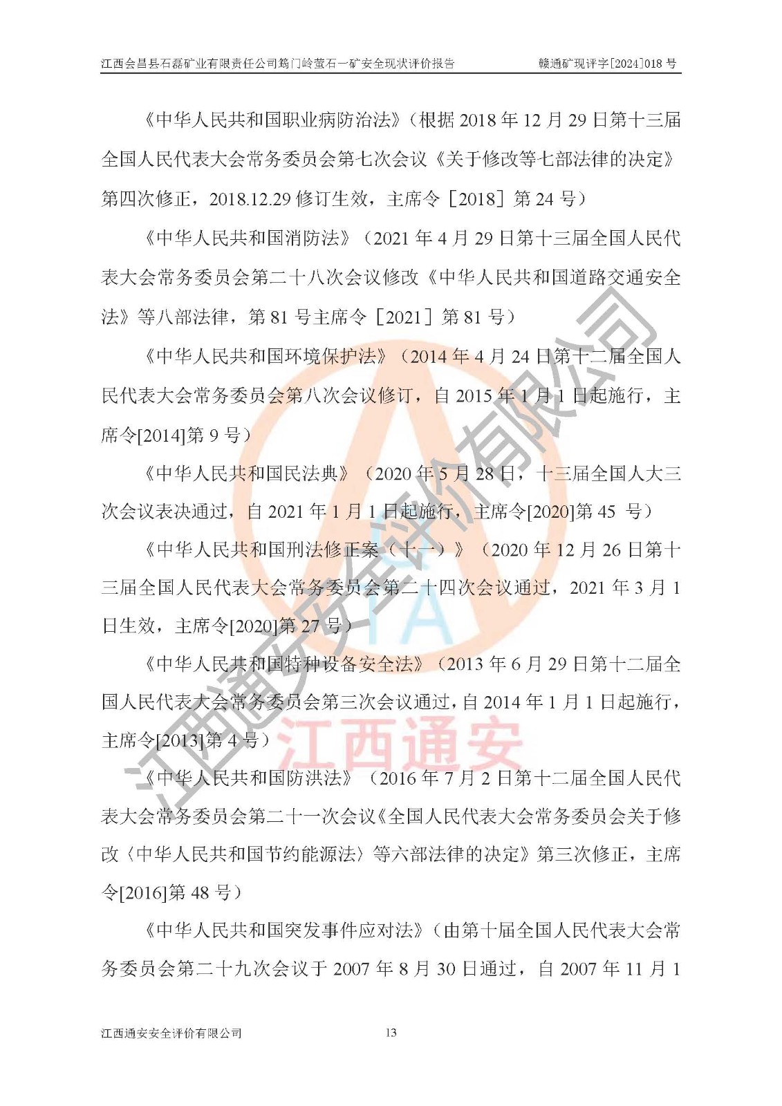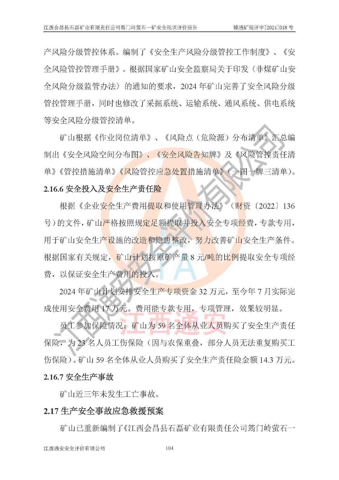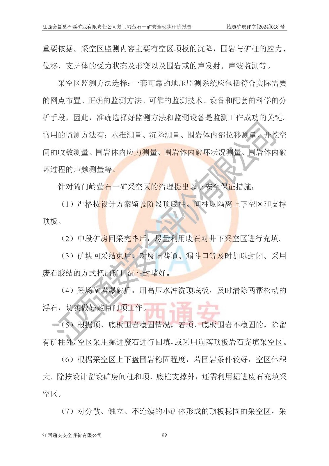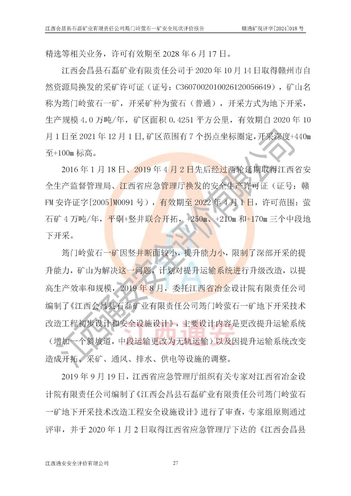 项目名称 | 江西会昌县石磊矿业有限责任公司筠门岭萤石一矿安全现状评价报告 | ||||