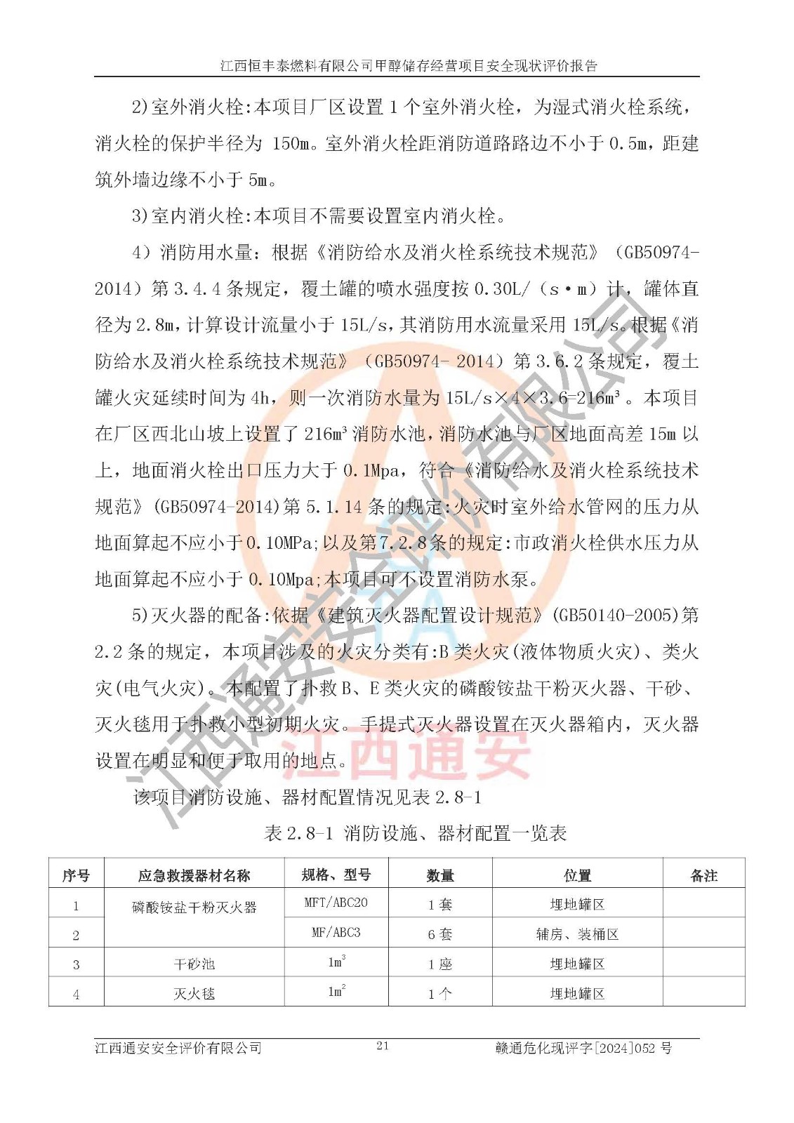 一、安全状况综合评述 通过对江西恒丰泰燃料有限公司甲醇储存经营项目的危险、有害因素辨识和定性、定量评价结果如下∶ 1、主要危险、危害因素辨识结果 项目在生产过程中存在的主要危险有:火灾爆炸、中毒窒息、触电、机械伤害、高处坠落、物体打击、**伤害、淹溺、灼烫等,存在的主要危害因素有:化学因素、物理因素(噪声、高温等)等,同时存在人为失误和管理缺陷。应重点防范的主要危险为火灾与爆炸。 2、危险化学品辨识结果 经辨识,该项目涉及的甲醇属于危险化学品,甲醇属于重点监管的危险化学品和特别管控危险化学品,项目不涉及监控化学品、易制毒化学品、易制爆危险化学品、剧毒化学品和高毒物品等危险化学品。 3、危险化学品重大危险源辨识结果 根据《危险化学品重大危险源辨识》(GB18218-2018)辨识,江西恒丰泰燃料有限公司甲醇储存经营项目不构成危险化学品重大危险源。 4、重点监管危险化工工艺辨识结果 根据《**安全监管总局关于公布首批重点监管的危险化学品名录的通知》安监总管三[2011] 95号、《**安全监管总局关于公布第二批重点监管危险化学品名录的通知》安监总管三[2013] 12号进行辨识,本项目不涉及重点监管的危险化工工艺。 5、作业条件危险性分析结果: 甲醇罐区卸车作业、装桶作业、检维修作业等单元危险程度均为“一般危险,需要注意”或“稍有危险,可以接受”级别。作业条件相对安全。 6、危险度评价结果: 甲醇储罐区属中度危险。 7、采用检查表评价法对项目外部安全条件、总图运输、危险化学品储运设施、采取的防火防爆措施、常规安全防护设施、“两重点一重大”安全措施及安全管理进行定性评价,评价结果如下: (1)该项目选址符合城乡总体规划和安全要求,甲醇经营和储存场所与库外建构筑物的距离符合有关标准、规范的要求。外部安全距离内无GB36894-2018中第3.1条所列的防护目标。 (2)总图布置分区明确,布局合理,满足规范要求。 (3)该项目无**明令淘汰的工艺,设备、设施与工艺条件、内部介质相适应,储罐的附件经整改后符合安全设施设计和规范的要求。 (4)该项目消防安全设施设置符合规范要求。 (5)该项目电气安全设施能满足安全要求,按要求设置了防雷接地设施,并经检测合格。防火防爆设施、液位监测措施、甲醇防泄漏设施、电气防爆措施等安全防护设施符合**法律法规、标准规范的要求。 (6)该项目公用工程能够满足安全经营的基本需要,符合安全经营的条件。 (7)该项目不涉及重大生产安全事故隐患,安全生产条件符合要求。 (8)公司成立了安全生产**小组,配备了安全管理人员,制定了安全管理制度、操作规程和事故应急预案,公司的安全管理机构工作有力,安全经营管理处于正常有序开展范围。 四、评价结论 江西恒丰泰燃料有限公司甲醇储存经营项目的安全设施及安全管理符合法律、法规、标准的要求,安全风险是受控制的,其风险程度是可以接受的,满足项目危险化学品储存和经营的安全条件。 |