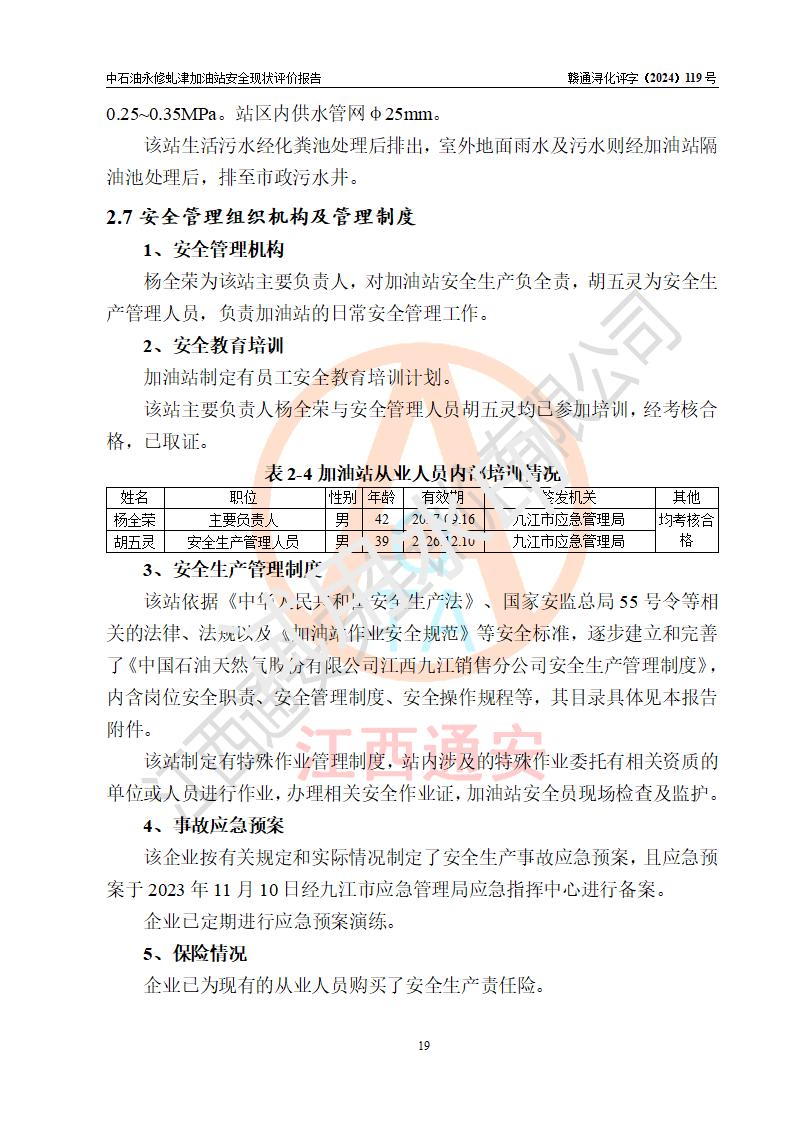 评价报告名称 | 中国石油天然气股份有限公司江西九江永修县虬津加油站安全现状评价报告 | |||