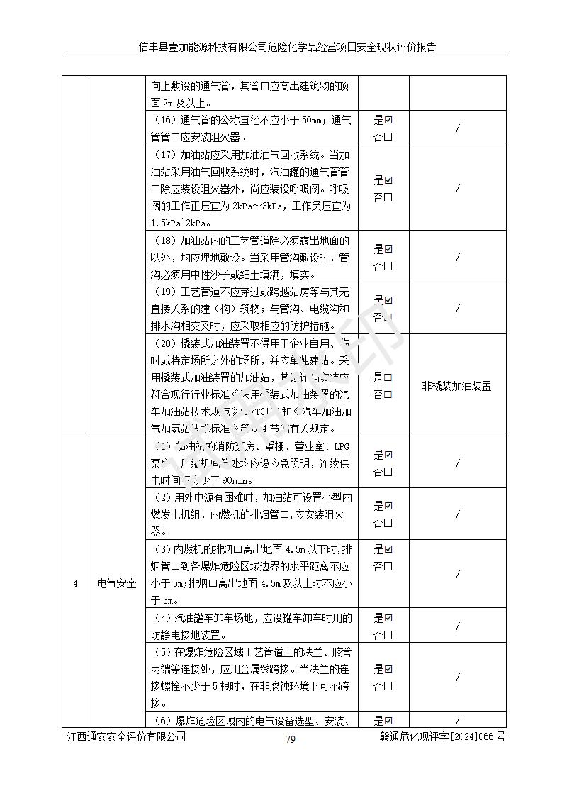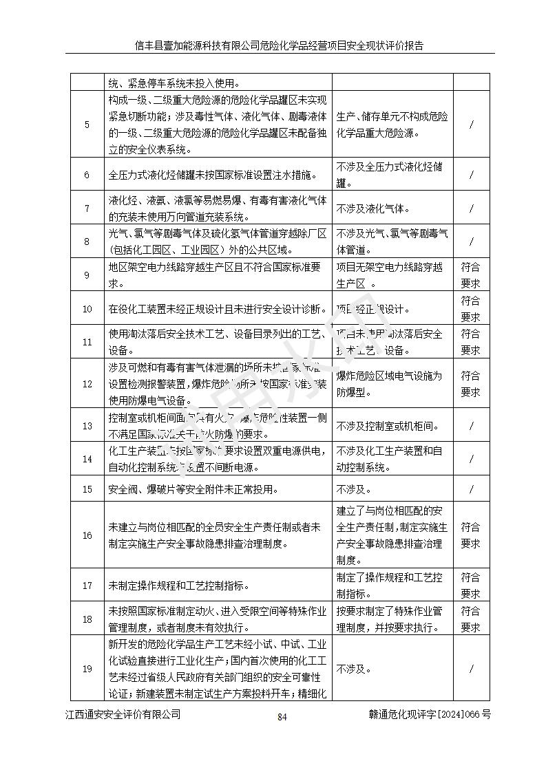 评价结论 | 信丰县壹加能源科技有限公司危险化学品经营项目安全现状符合危险化学品经营安全条件。 | |||