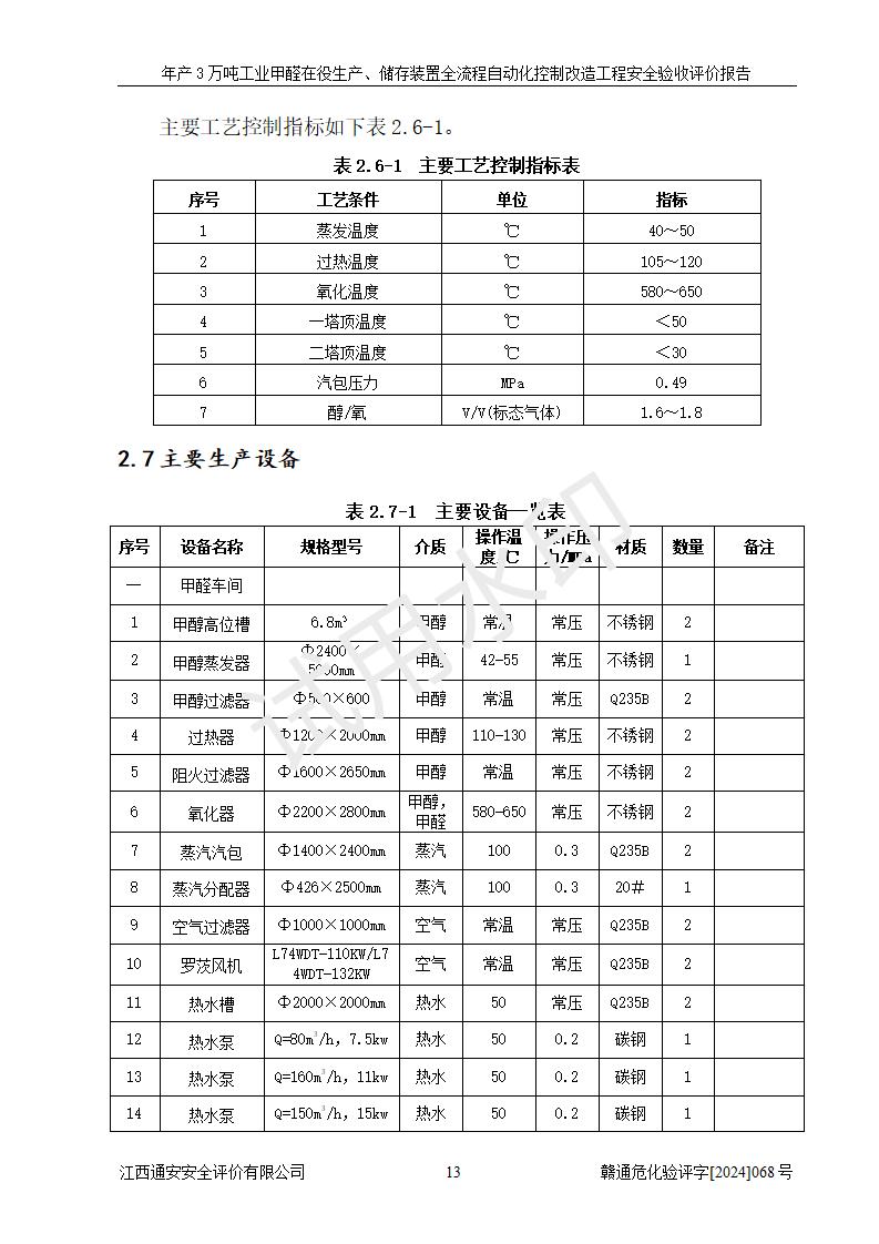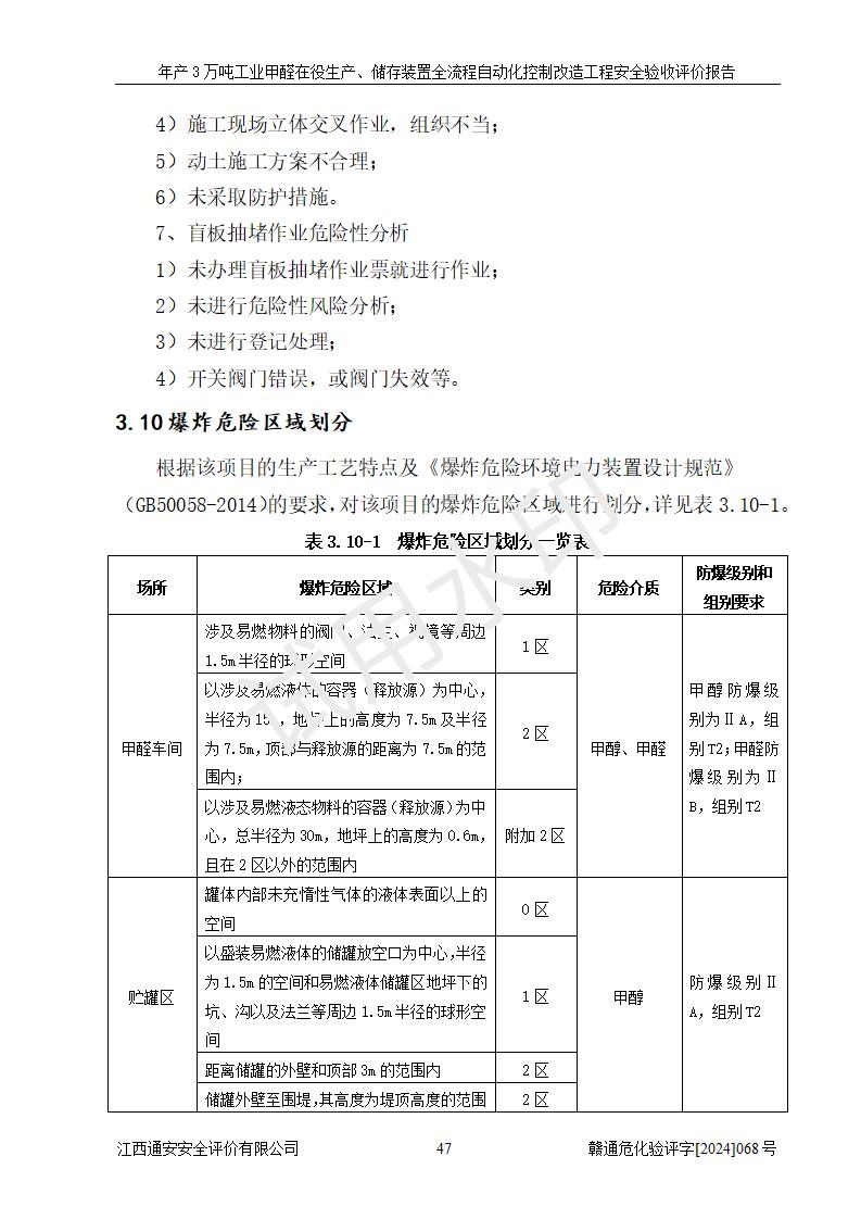 评价报告名称 | 信丰县东新合成材料有限公司年产3万吨工业甲醛在役生产、储存装置全流程自动化控制改造工程安全验收评价报告 | ||||||