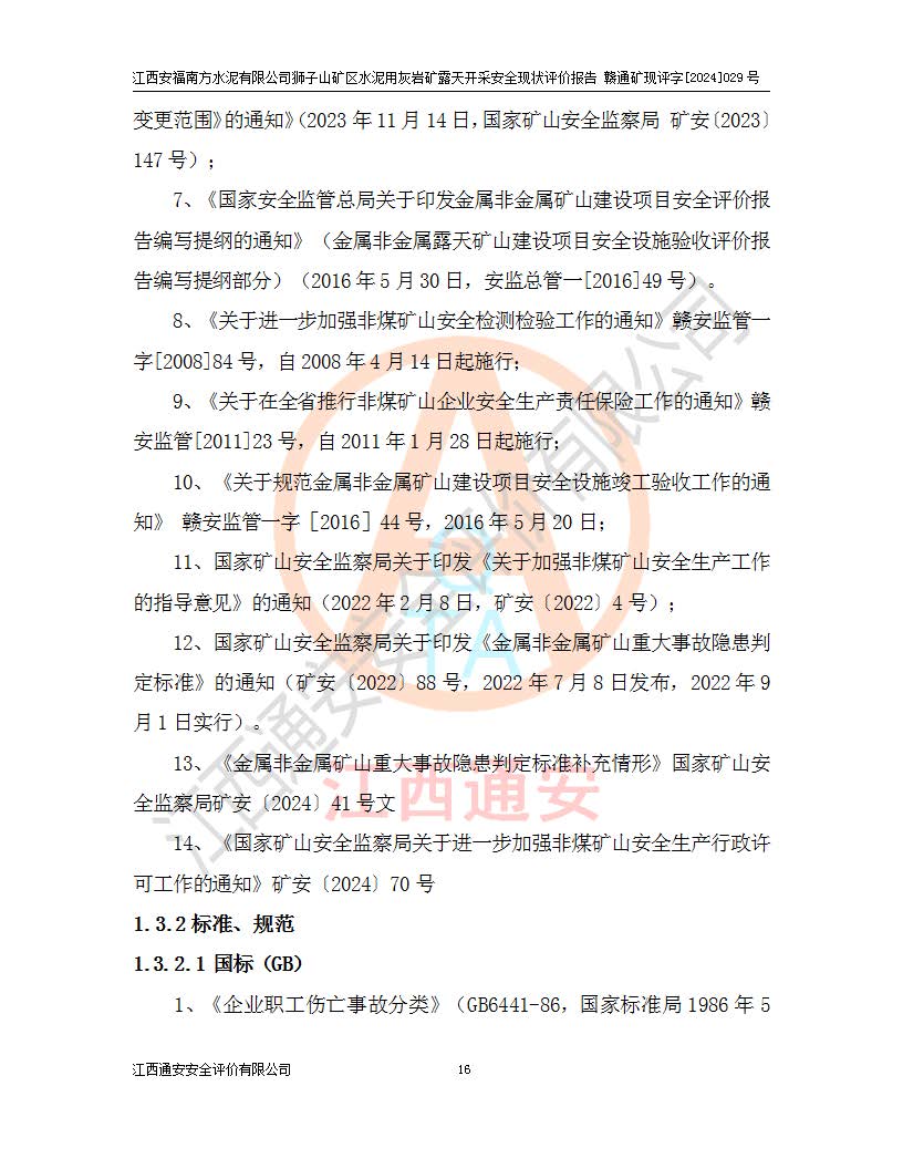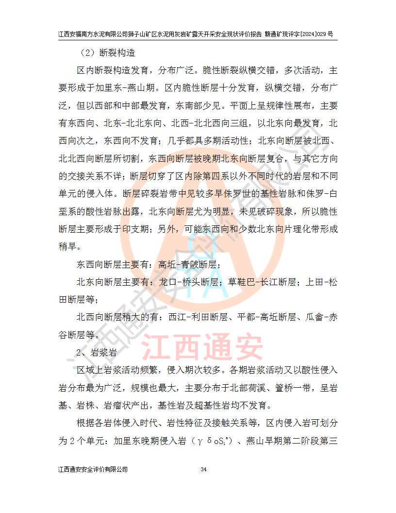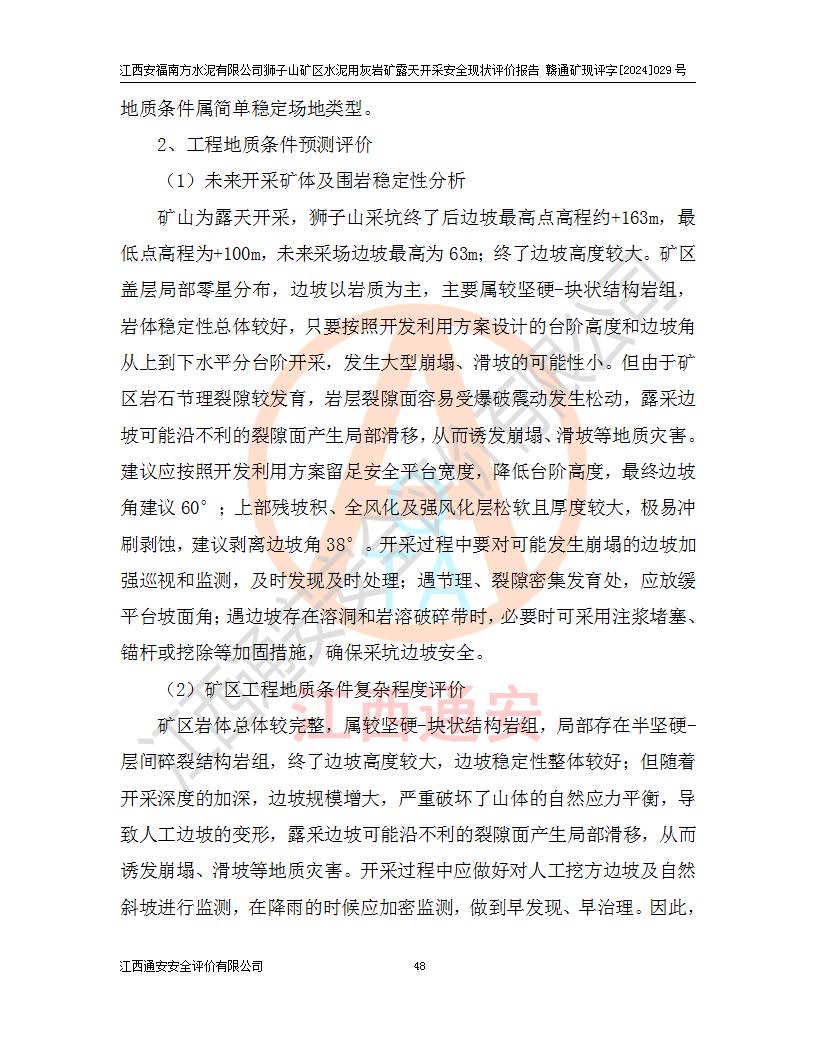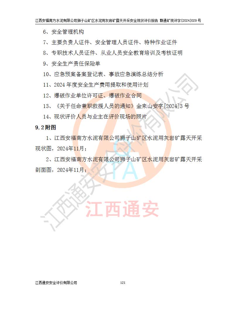 评价报告名称 | 江西安福南方水泥有限公司狮子山矿区水泥用灰岩矿露天开采安全现状评价报告 | |||