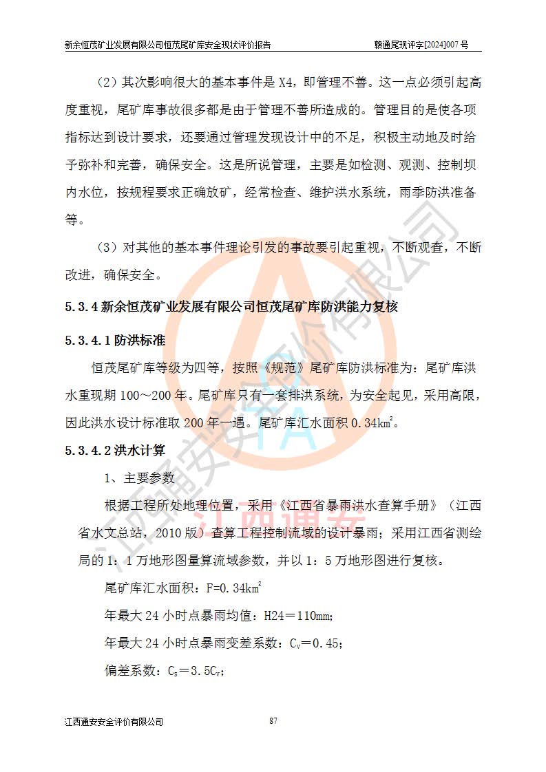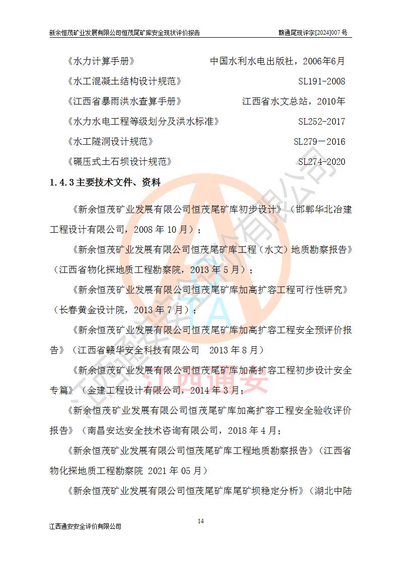 评价报告名称 | 新余恒茂矿业发展有限公司恒茂尾矿库安全现状评价报告 | |||