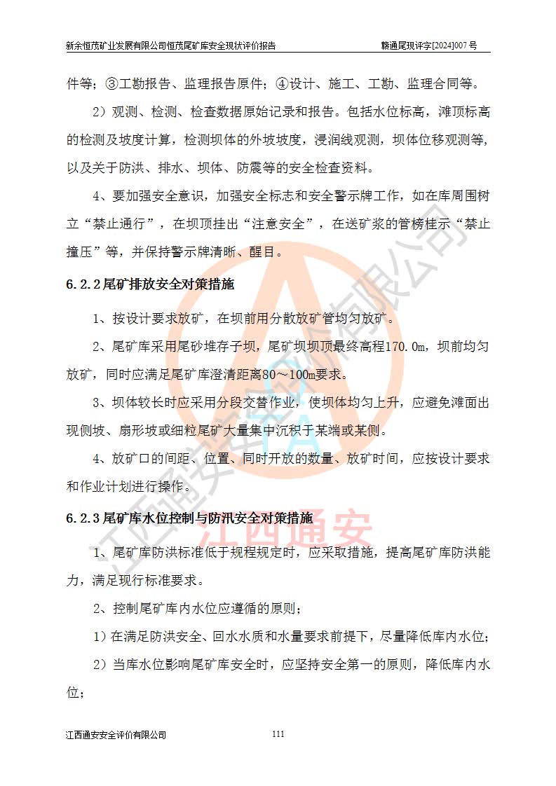 评价结论 | 新余恒茂矿业发展有限公司恒茂尾矿库为正常库,具备继续生产运行的安全生产条件。 | |||