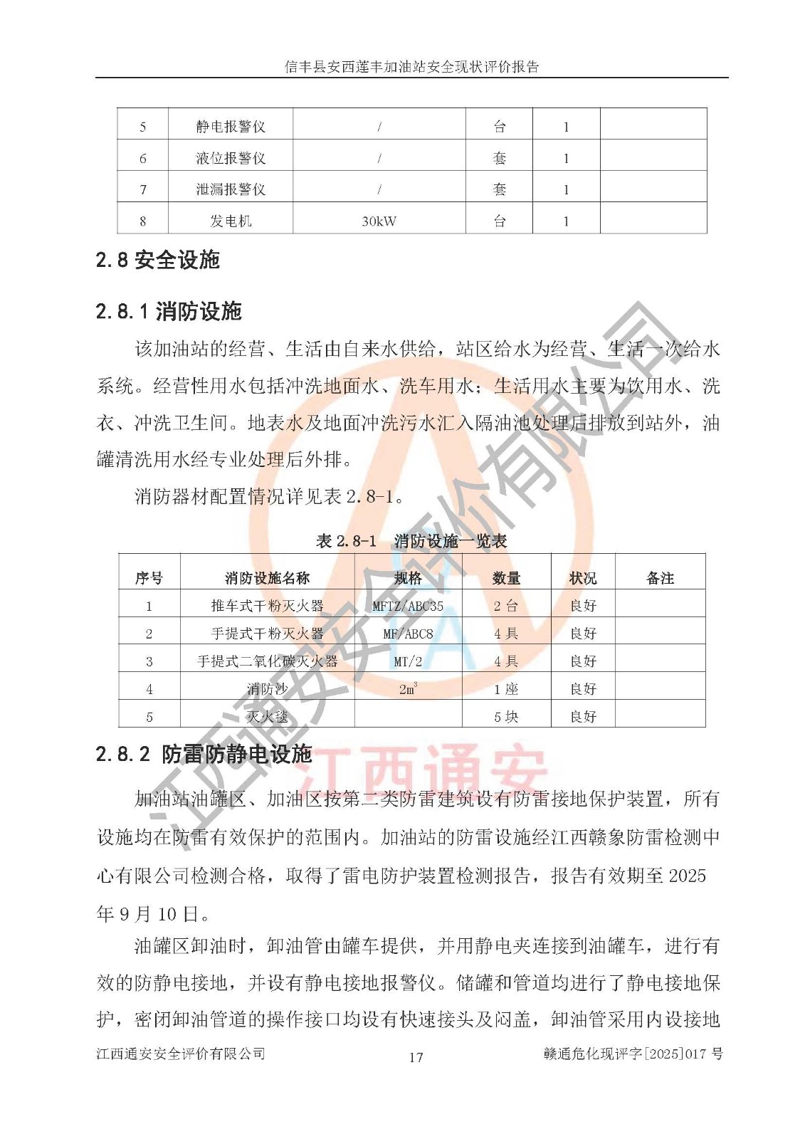 评价报告名称 | 信丰县安西莲丰加油站安全现状评价报告 | |||