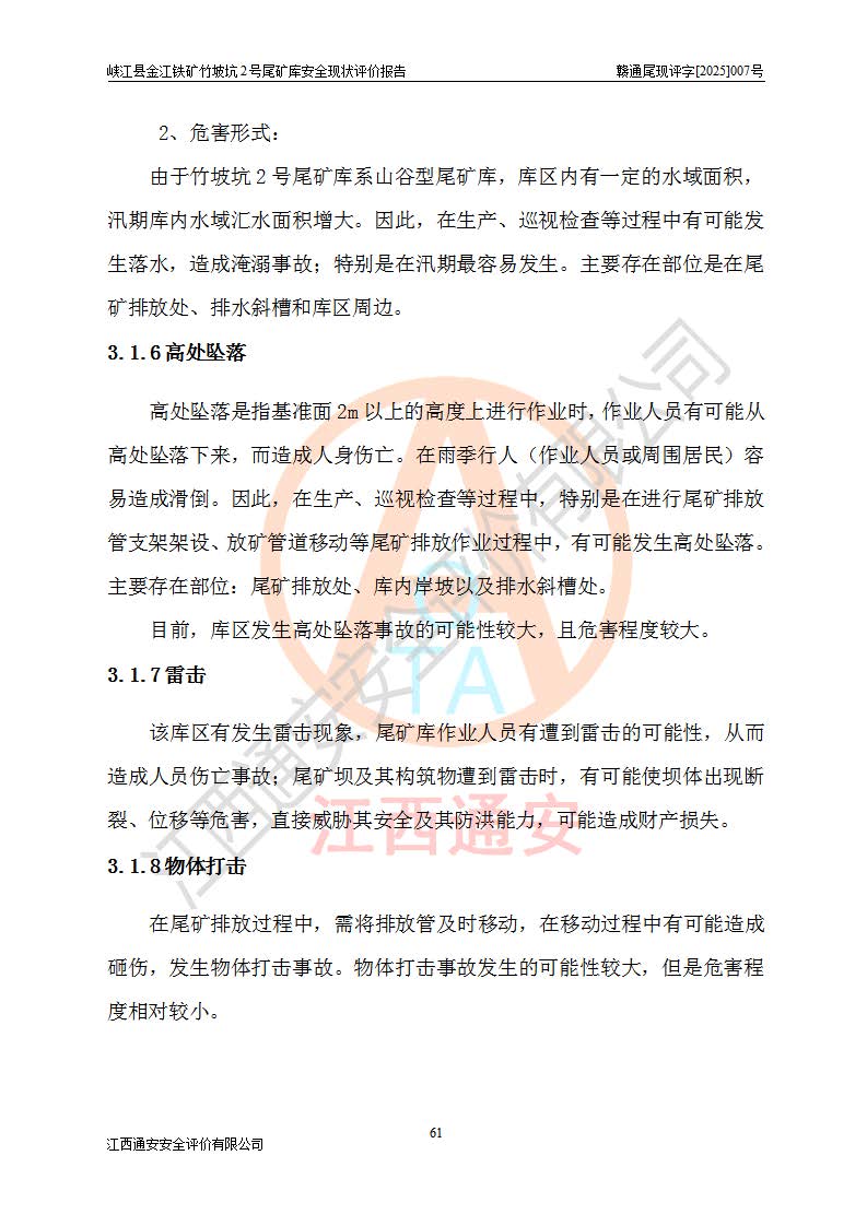 评价报告名称 | 峡江县金江铁矿竹坡坑2号尾矿库安全现状评价报告 | |||