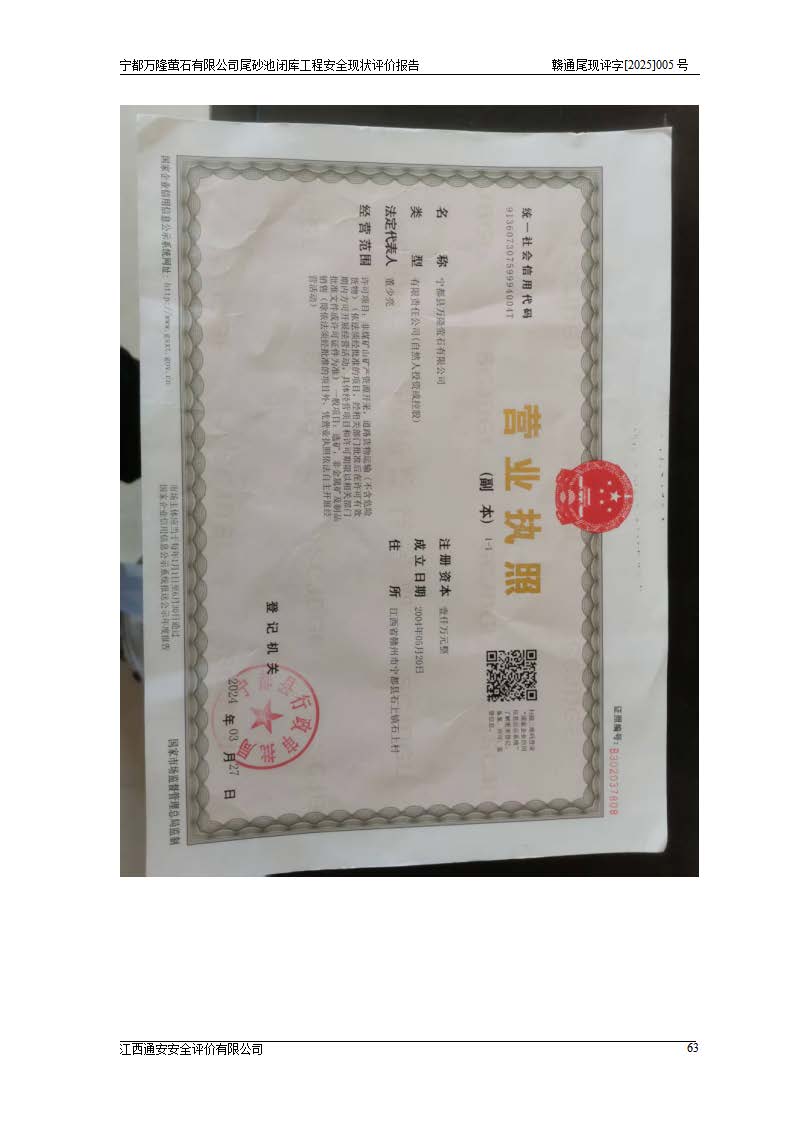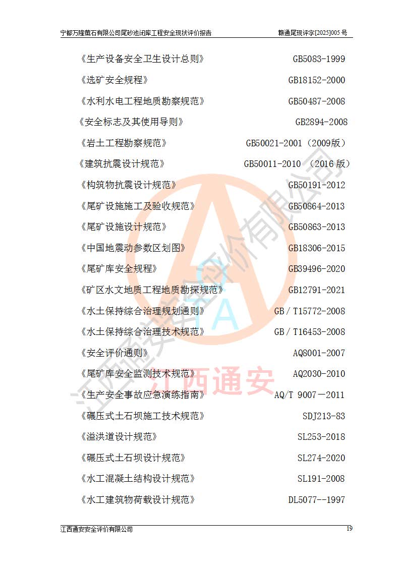 评价报告名称 | 宁都万隆萤石有限公司尾砂池闭库工程安全现状评价报告 | |||