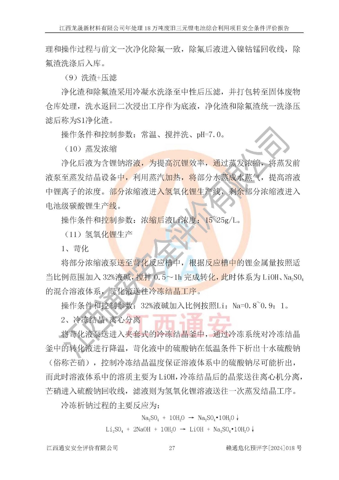评价报告名称 | 江西龙晟新材料有限公司年处理18万吨废旧三元锂电池综合利用项目安全条件评价报告 | |||