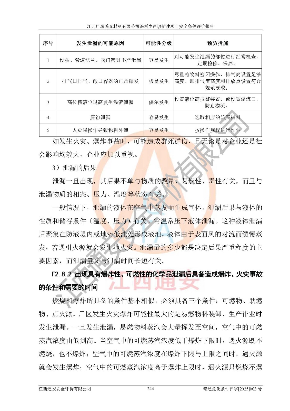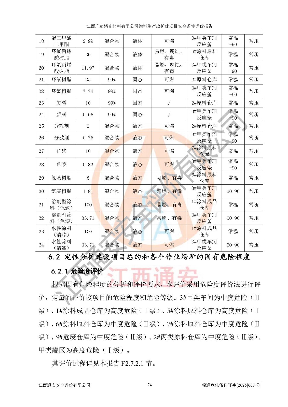 1)本项目取得了龙南市行政审批局下发的《江西省工业企业技术改造项目备案通知书》(项目统一代码为:2408-360727-07-02-3253323)、《建设用地规划许可证》、龙南市自然资源局出具对《关于为江西广臻年产2万吨涂料技改项目出具用地证明的函》的复函,符合地方产业发展规划的要求。 2)根据《危险化学品目录》(2015年版,十部委公告2022年第8号修订),本项目原辅料蜡浆、色浆、助剂、二甲苯、正丁醇、乙二醇丁醚、乙二醇乙醚醋酸酯、S100溶剂油、氮气[压缩的]及产品溶剂型涂料(色漆)属于危险化学品。本项目不涉及监控化学品、剧毒化学品、易制爆化学品、易制毒化学品、重点监管的危险化学品、特别管控危险化学品、高毒物品。本项目不涉及重点监管的危险化工工艺。 3)根据《危险化学品重大危险源辨识》(GB18218-2018),该项目未构成危险化学品重大危险源。 4)项目存在的主要危险因素有:火灾爆炸、容器爆炸、中毒窒息、灼烫、触电、**伤害、机械伤害、高处坠落、物体打击、淹溺等,存在的主要危害因素有:噪声与振动、高温、有害化学物质等;引起事故的原因有人的不安全行为、物的不安全状态、管理缺陷和环境不良。其中*主要的危险有害因素是火灾爆炸。 5)采用预先危险性分析法评价,结果为: (1)通过预先危险(PHA)分析可知,项目厂址及总体布局单元存在周边环境相互影响,发生异常情况,可对周边企业生产经营活动、人员活动产生影响;存在自然条件影响,可因雷击、暴雨等引起事故;存在**伤害、建筑物危害,其固有的危险性等级为Ⅱ级,属于“临界的”,应予以排除、采取控制措施因素。 (2)生产作业存在的危险因素包括火灾爆炸、触电、灼烫、中毒窒息固有的危险等级为Ⅲ级,属于“危险的”,可能导致人员伤亡和系统损坏的因素,需要采取防范和对策措施的因素;其它危险因素固有的危险等级为Ⅱ级,属于“临界的”,应予以排除、采取控制措施因素。 (3)生产作业存在的噪声、粉尘、高温、有害化学物质的危险有害因素等级为Ⅱ级,属于“临界的”,应予以排除、采取控制措施因素。 6)危险度评价分析,结果为: 生产装置危险度评价分析:3#甲类车间为中度危险(Ⅱ级)。 储存单元危险度评价分析:1#涂料成品仓库为**危险(Ⅰ级)、5#涂料原料仓库为**危险(Ⅰ级)、6#涂料原料仓库为中度危险(Ⅱ级)、7#涂料原料仓库为中度危险(Ⅱ级)、9#危废仓库为中度危险(Ⅱ级)、2#丙类原料仓库为中度危险(Ⅱ级)、甲类罐区为**危险(Ⅰ级)。 7)作业条件危险性评价结果:在选定的评价单元中,其危险分值均在70以下,危险程度基本属于“可能危险”、“稍有危险”范围,作业条件相对安全。企业经营过程中首先应重点加强对甲类生产车间、甲类仓库、储罐区的危险因素的严格控制,注重日常安全管理;其次要建立健全完善的安全生产责任制、安全管理制度、安全技术操作规程并**其贯彻落实;第三要认真抓好操作人员、管理人员的安全知识和操作技能的培训,**人员具有与工程技术水平相适应的技术素质和安全素质,**安全作业。 8)项目建设场地符合当地规划要求,建设场地通过合理规划,其选址、周边环境、总平面布置、交通运输等能符合《中华人民共和国安全生产法》《危险化学品安全管理条例》《建筑设计防火规范》《精细化工企业工程设计防火标准》等法规、标准、规范要求。 厂址地区地震活动相对较弱,灾害性天气出现频率稍高,自然灾害对项目建设具有**影响,通过采取相应的防护措施,自然条件适宜建设。 9)建设项目符合**产业政策的要求;选择工艺为现行成熟工艺,其安全可靠性可得到**。 10)本报告已根据有关安全生产法律、法规、规章和**标准、行业标准,并严格执行省委办公厅省**办公厅《关于全面加强危险化学品安全生产工作的实施意见》(赣办发[2020]32号)及鄱阳湖生态经济区、长江经济带、“五河一湖”相关政策规定,客观、公正、科学地进行安全评价,项目符合《江西省应急管理厅关于印发《江西省危险化学品建设项目安全监督管理实施细则》(试行)的通知》(赣应急字[2021]100号)的要求。 11)本报告结合工艺特征,提出应采取的对应的自动化控制系统及自动化实施方案,满足《江西省应急管理厅关于印发《江西省化工企业自动化提升实施方案》(试行)的通知》(赣应急字[2021]190号)的要求。 综上所述:江西广臻感光材料有限公司涂料生产改扩建项目的产业政策、安全条件、厂址、总体布局、主要技术和工艺、装置、设施、配套和辅助工程、安全管理等均满足安全生产相关法律法规、标准规范的要求,该建设项目的危险、有害因素可得到**控制,风险在可接受范围内,具有**的本质安全水平。企业应认真落实本报告提出的安全对策与建议,在下一步设计、建设施工过程中严把质量关、严格施工安全管理和检查,使各项安全措施落实到实处,且严格执行建设项目安全设施“三同时”的规定,建立**的事故应急体系和措施。 |