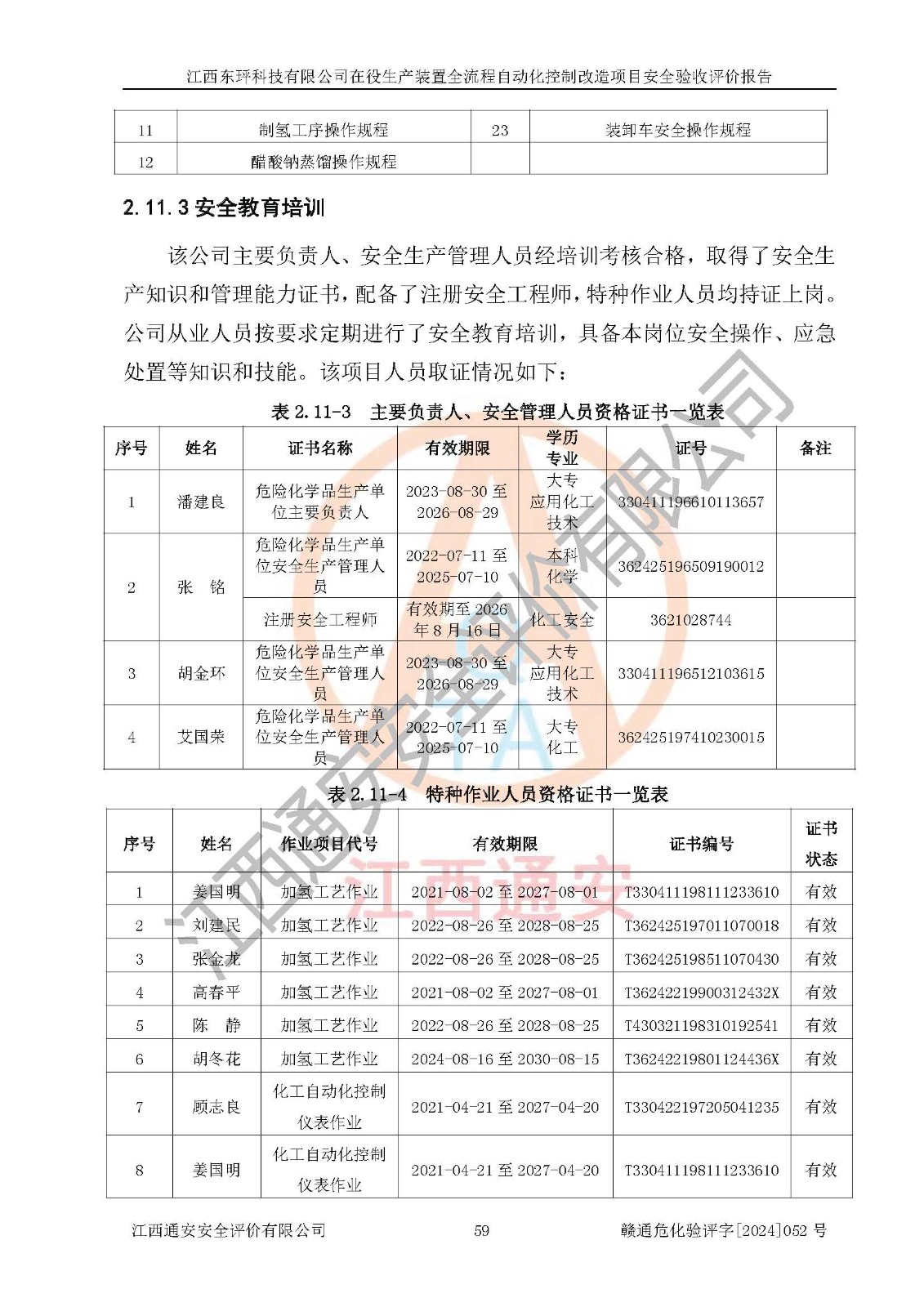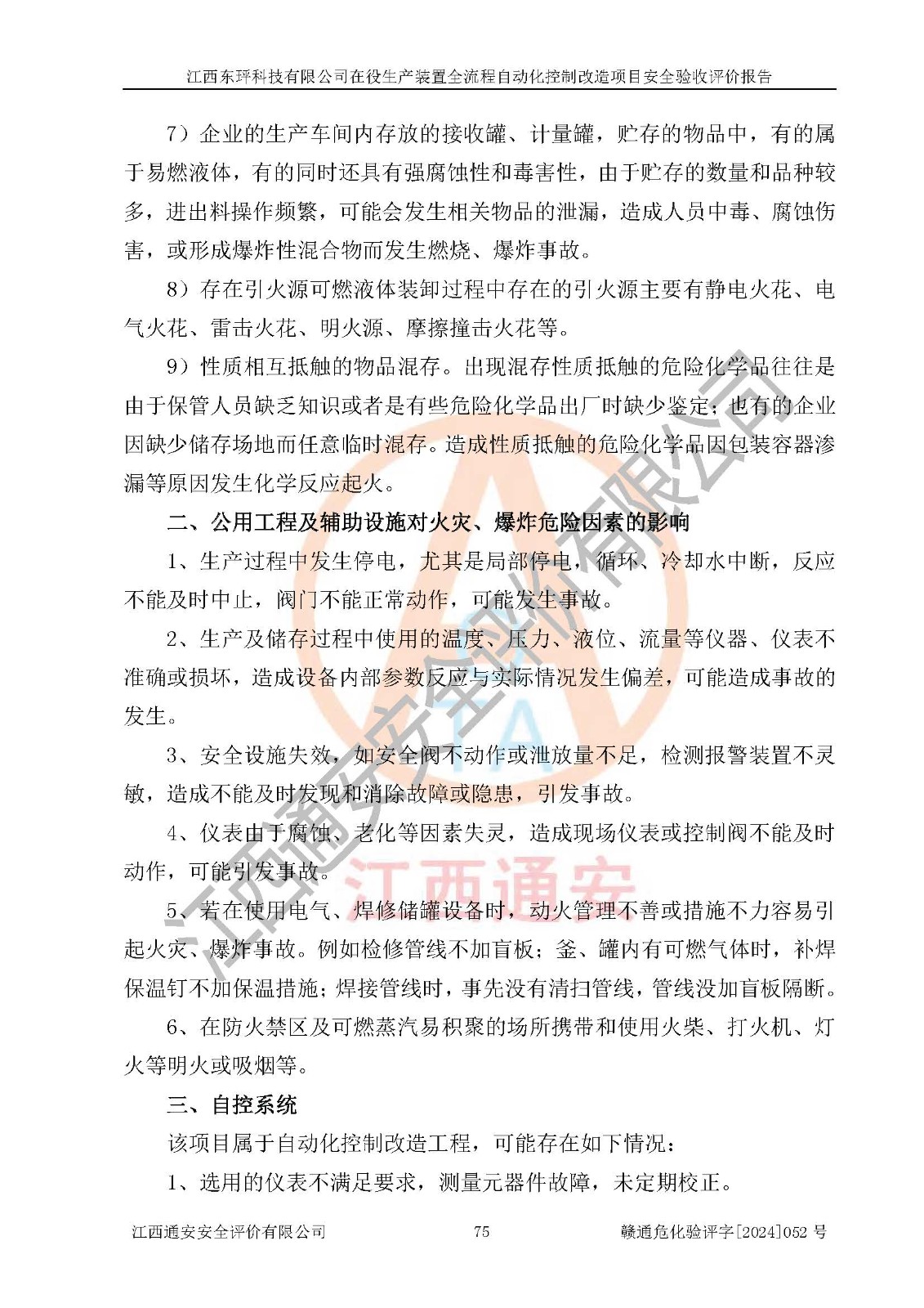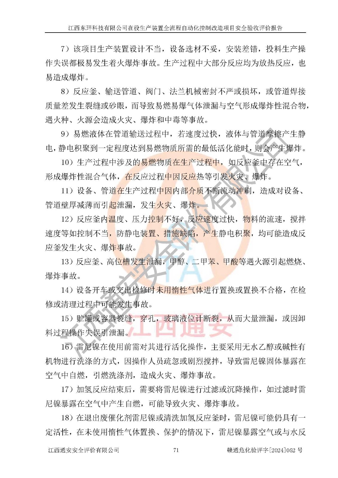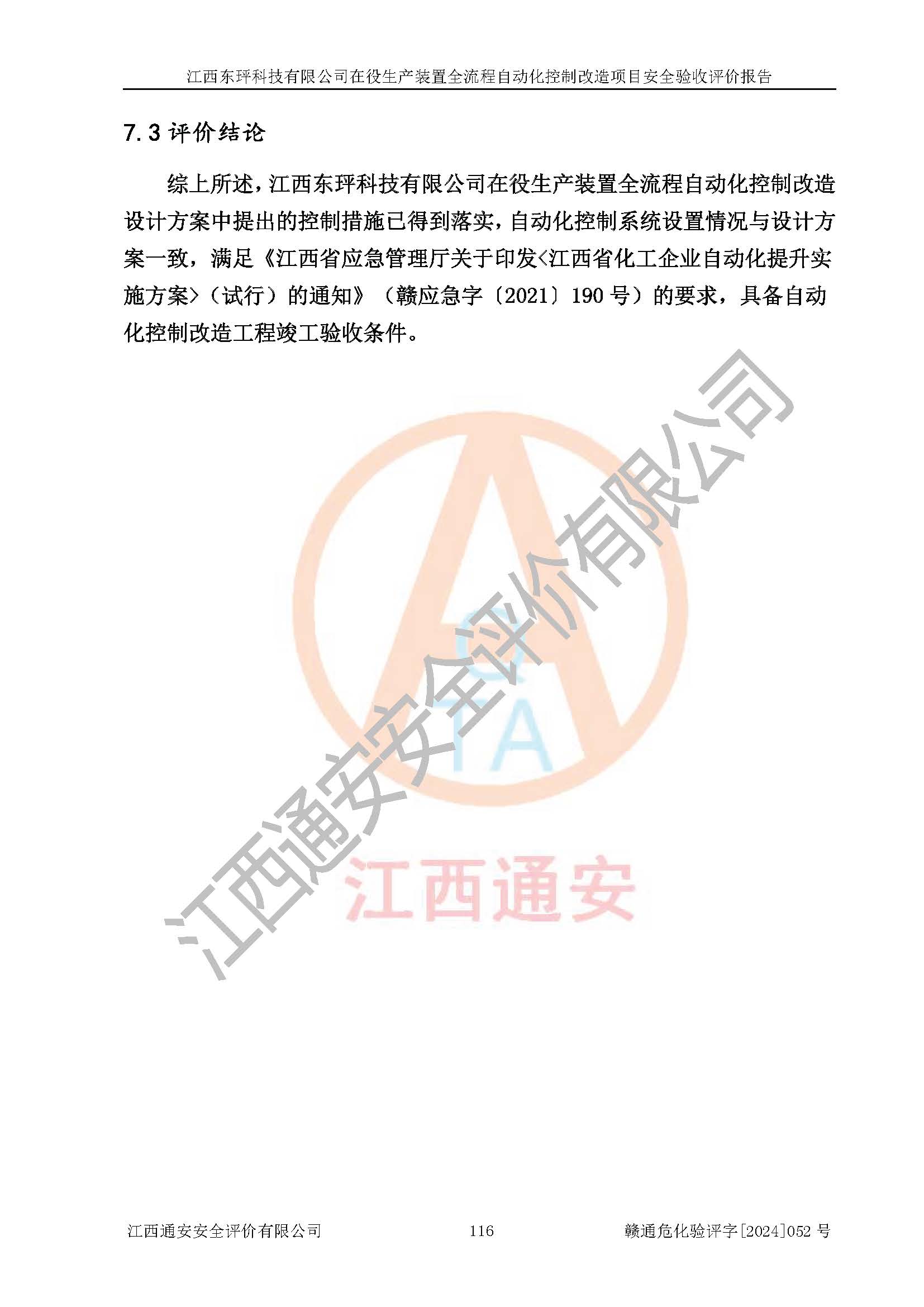 评价报告名称 | 江西东玶科技有限公司在役生产装置全流程自动化控制改造项目安全验收评价报告 | ||||||
