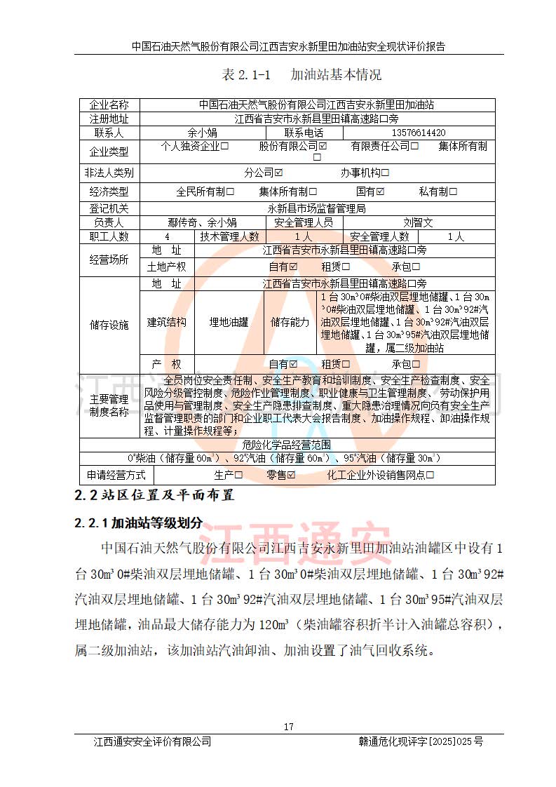 项目名称 | 中国石油天然气股份有限公司江西吉安永新里田加油站 | ||||