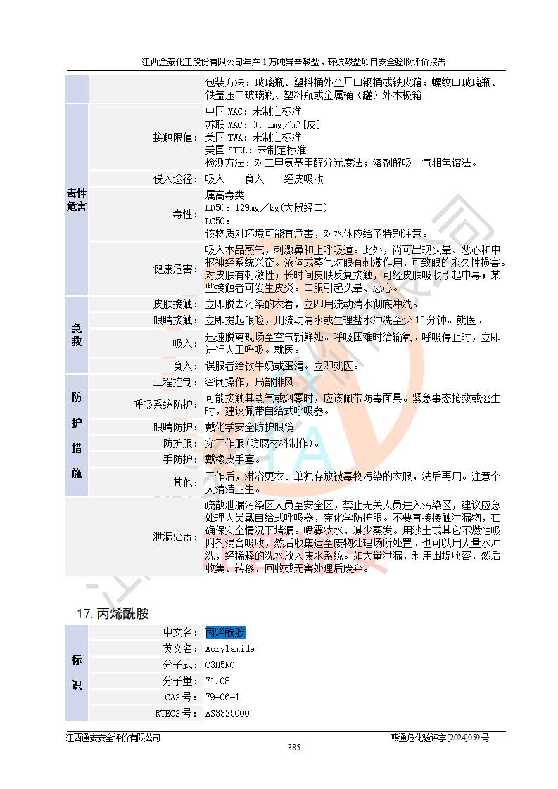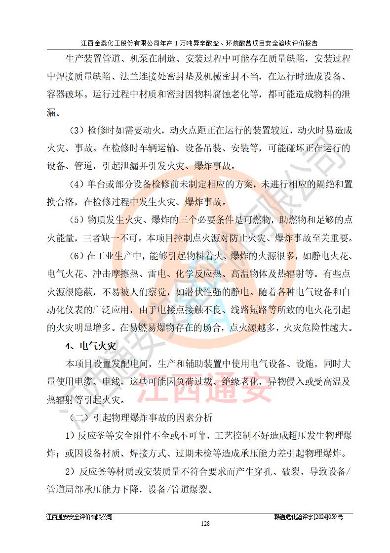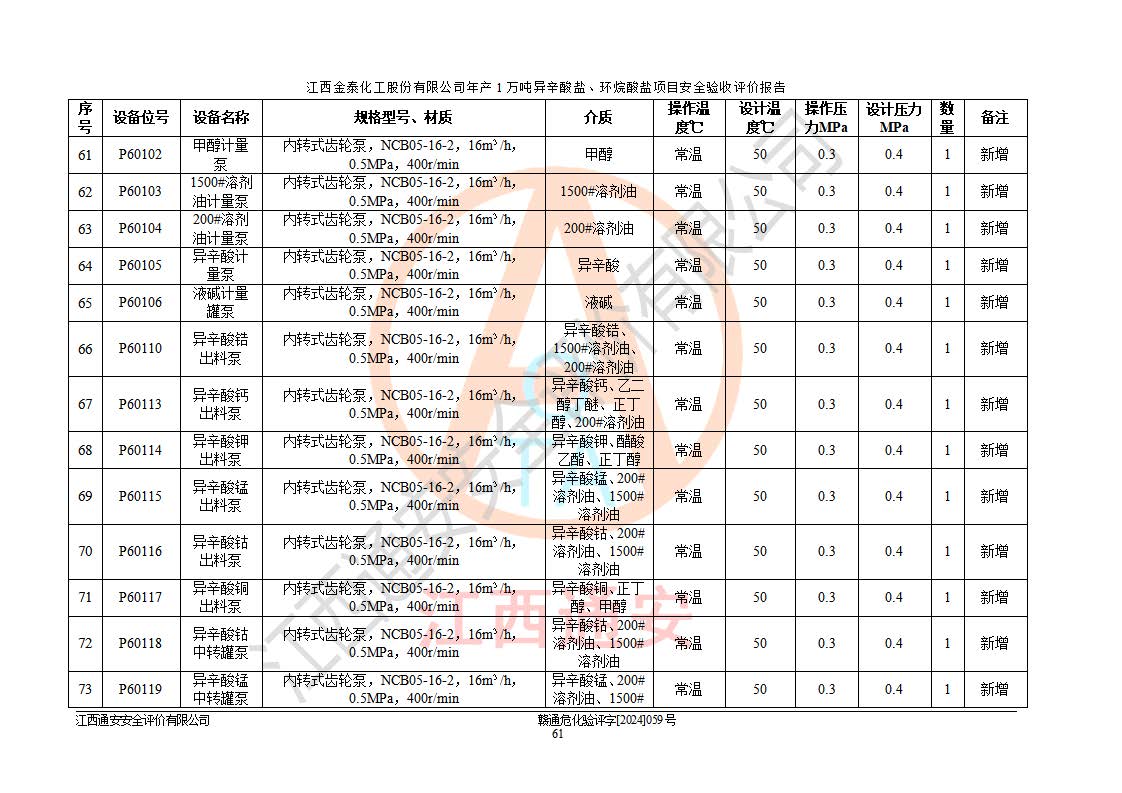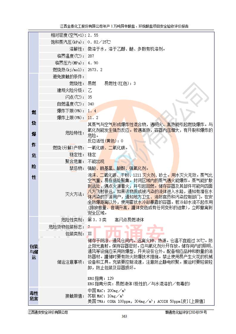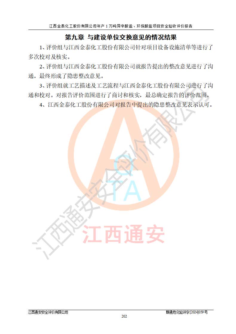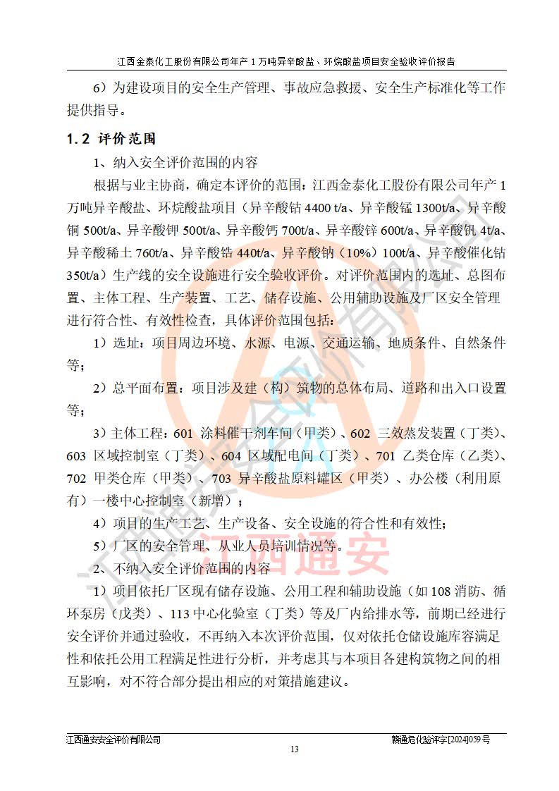 评价报告名称 | 江西金泰化工股份有限公司年产1万吨异辛酸盐、环烷酸盐项目安全验收评价报告 | |||