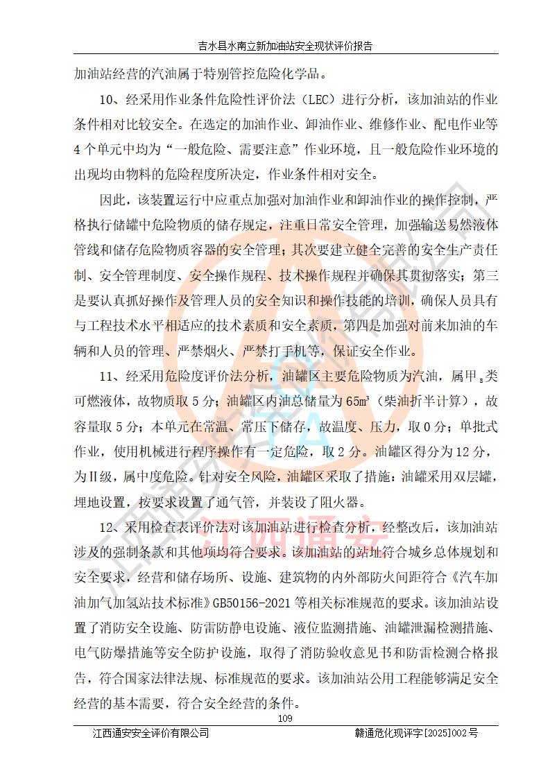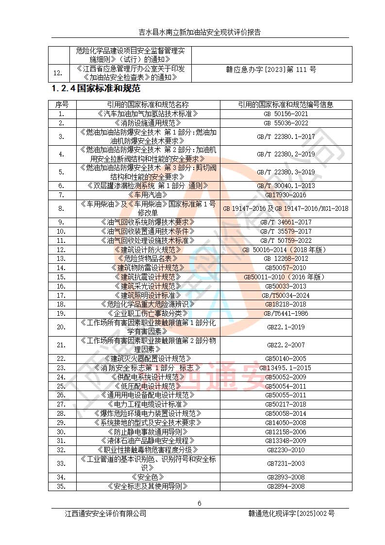 评价报告名称 | 吉水县水南立新加油站安全现状评价报告 | |||